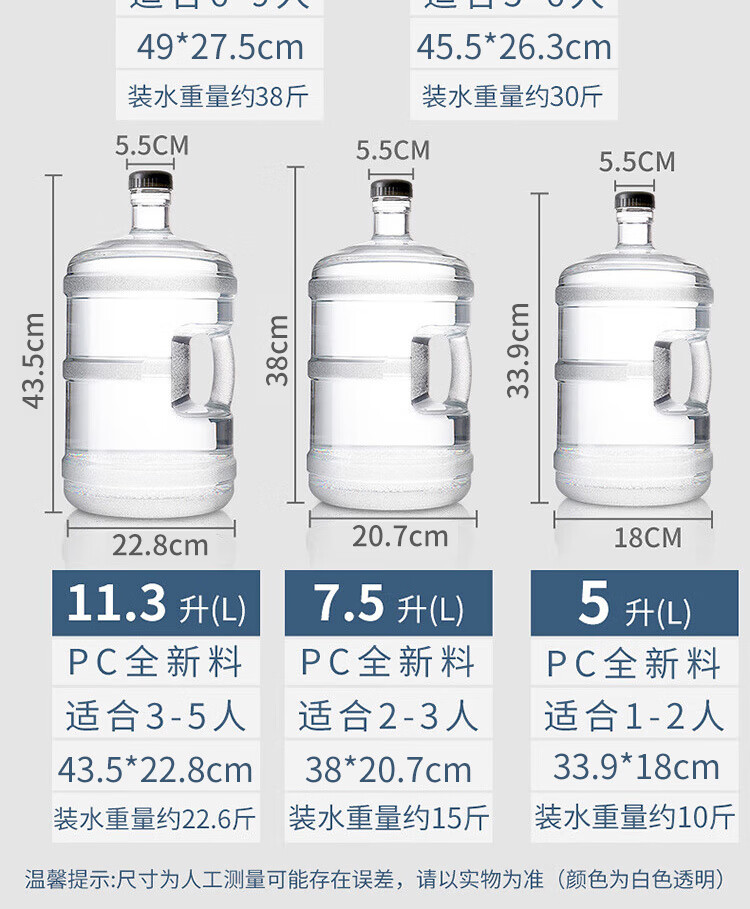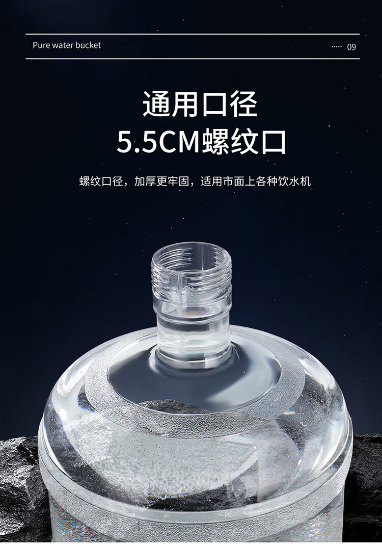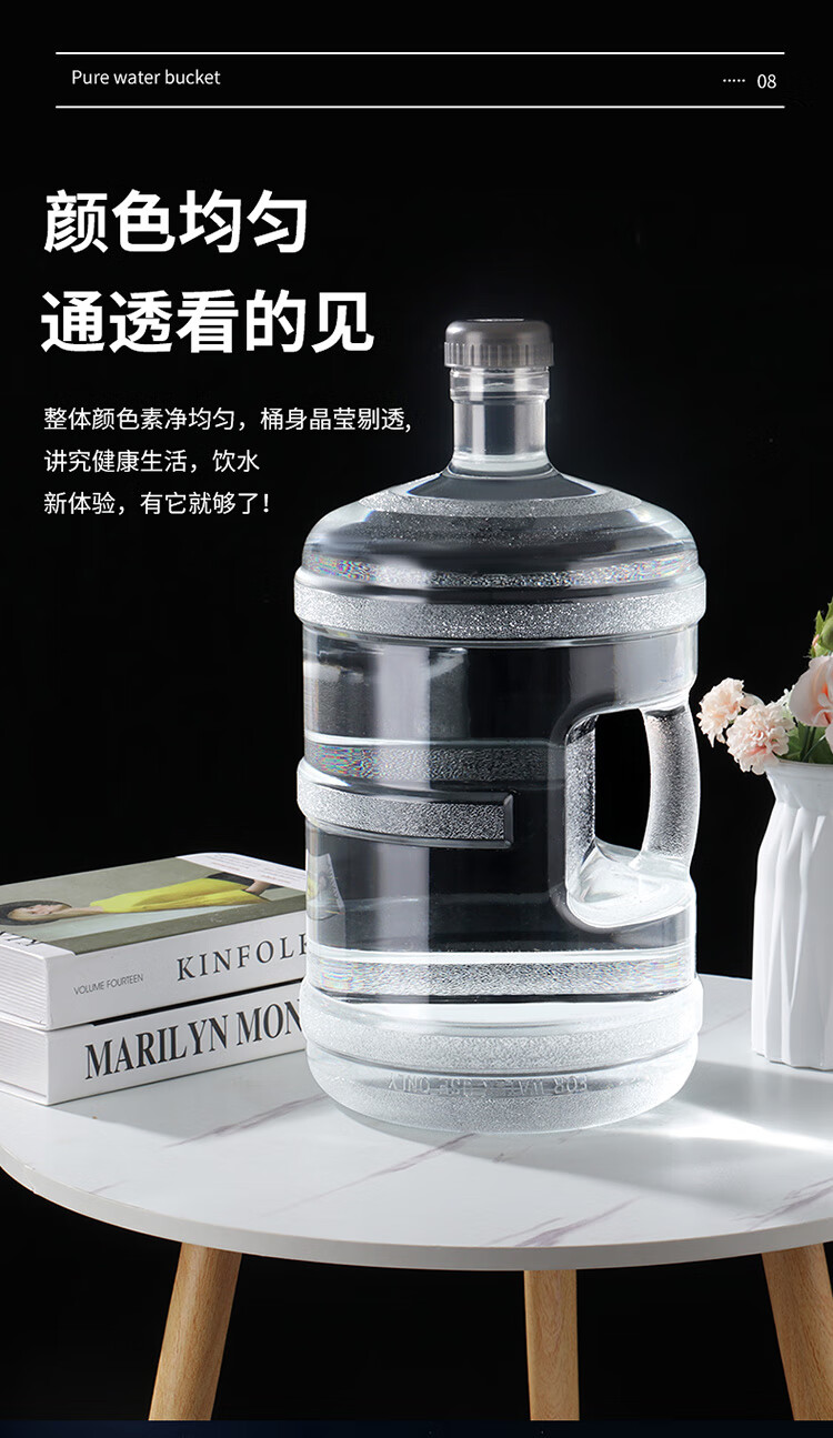 拜杰纯净水桶 透明食品级PC水桶 桶装水水桶矿泉水大桶饮水桶净水桶 黑盖5L