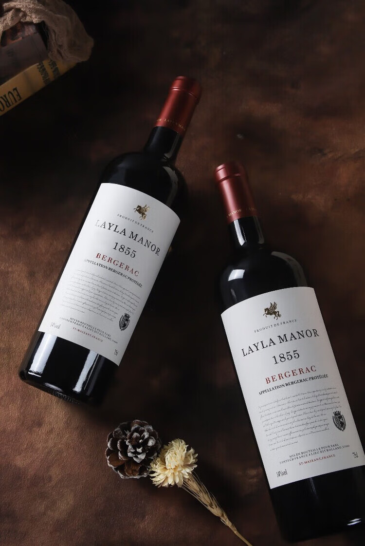LAYLA法国进口AOP级14度干红葡萄酒皮质礼盒装送礼750mlX两支