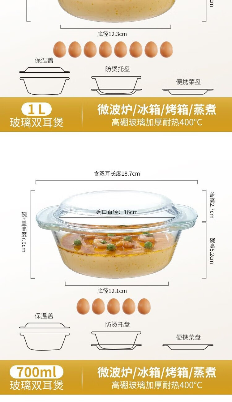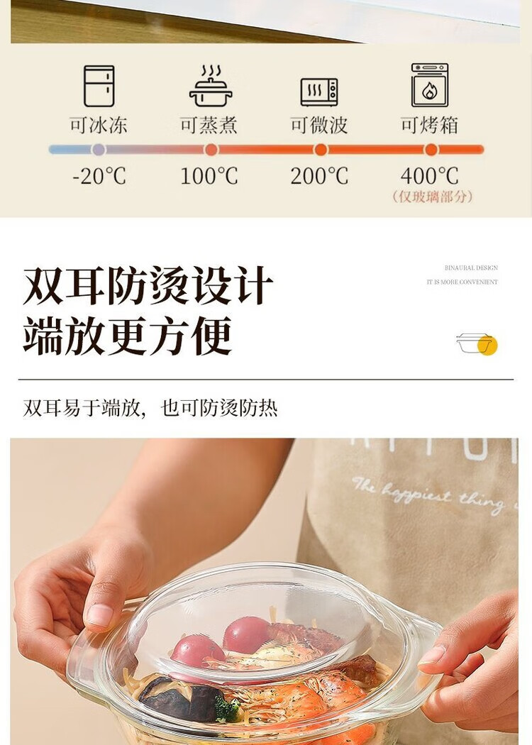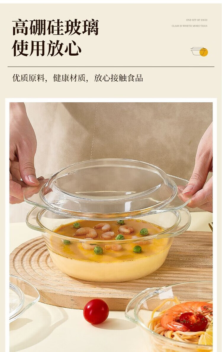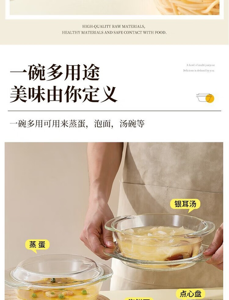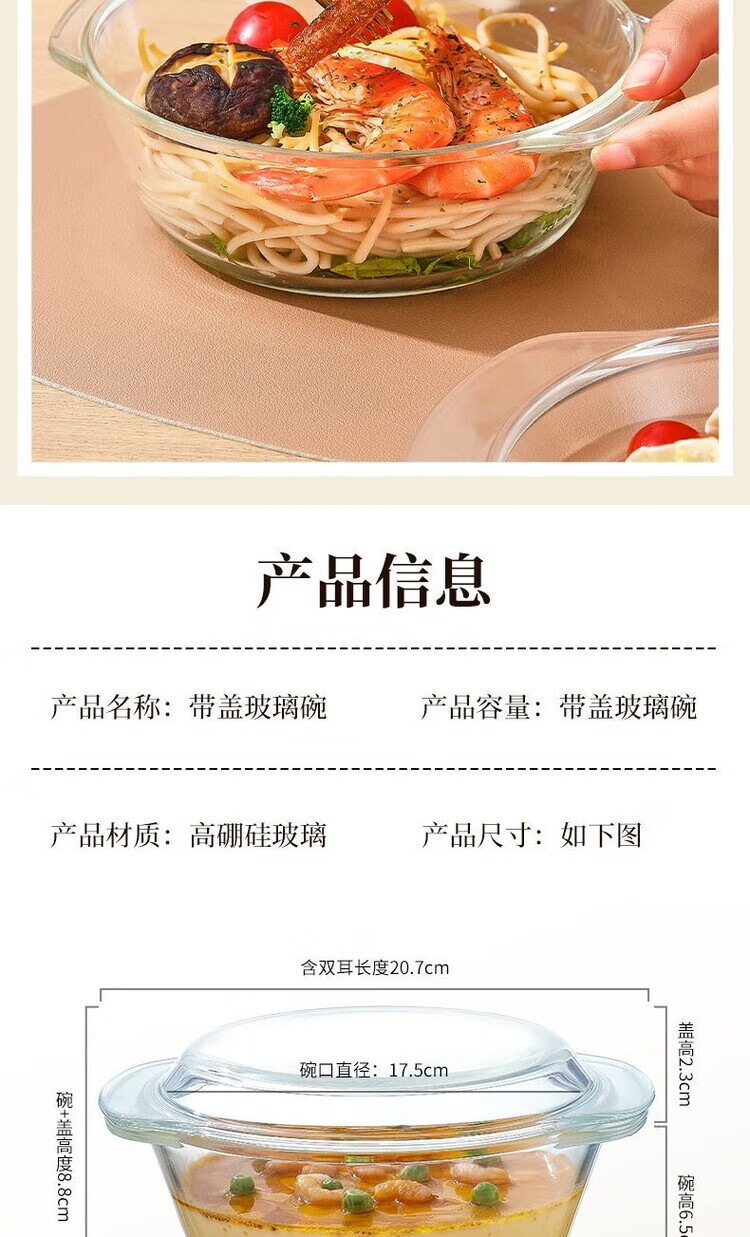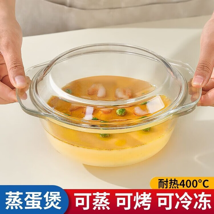 LZJV沙拉碗带盖水晶煲玻璃碗微波炉烤箱专用耐热高温汤碗泡面碗蒸蛋碗 1000ML-带盖水晶煲