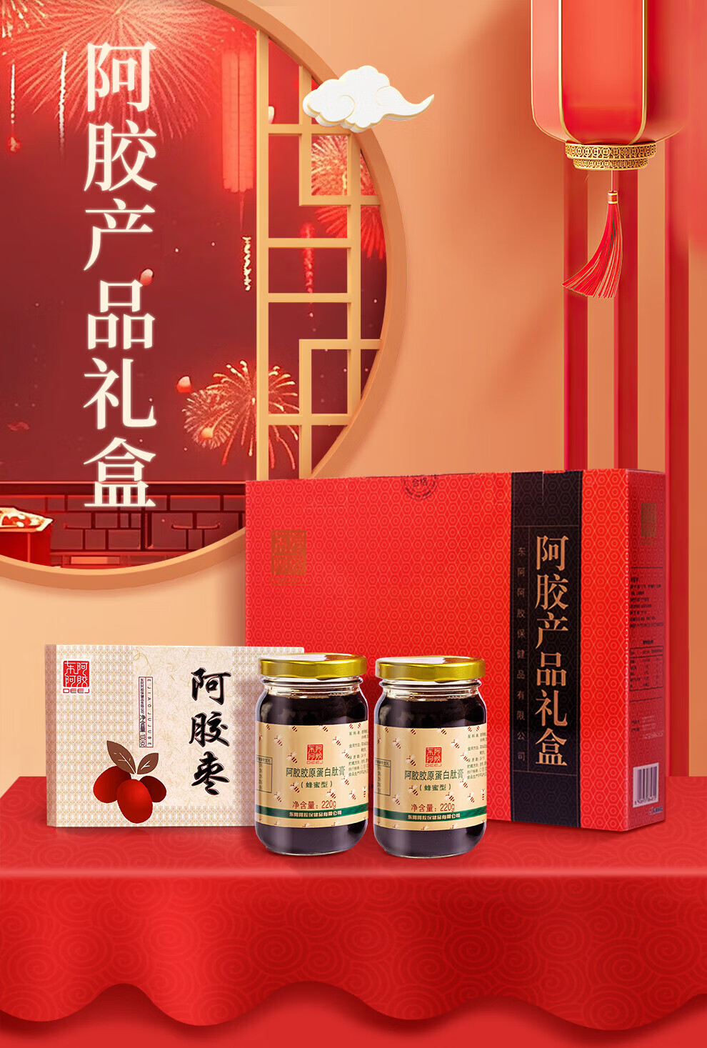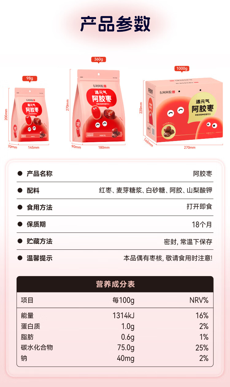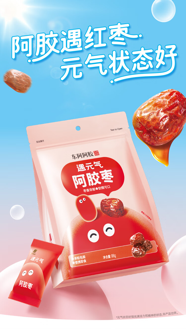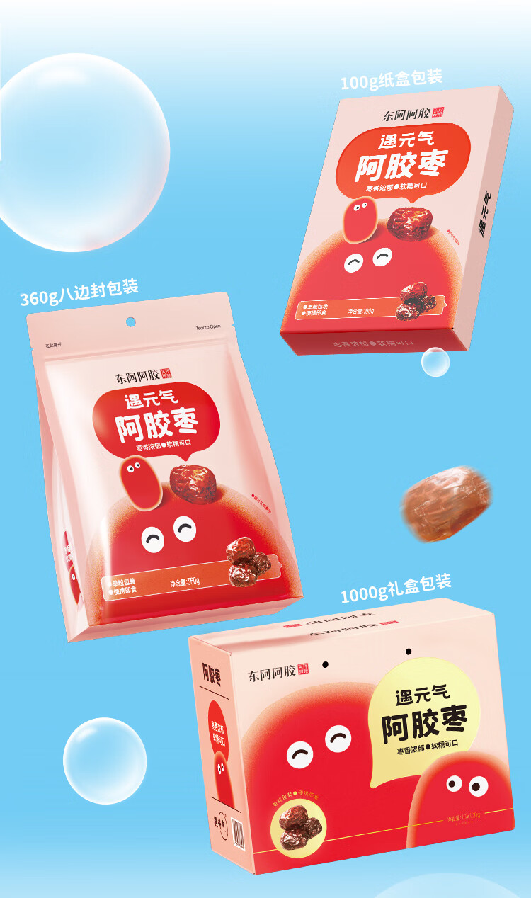 东阿阿胶官方授权遇元气阿胶枣即食无核水晶金丝红枣休闲办公室零食礼物 阿胶膏 220ml*4瓶 +阿胶枣100g*2