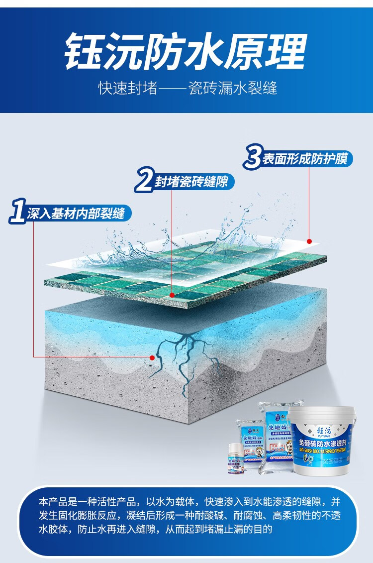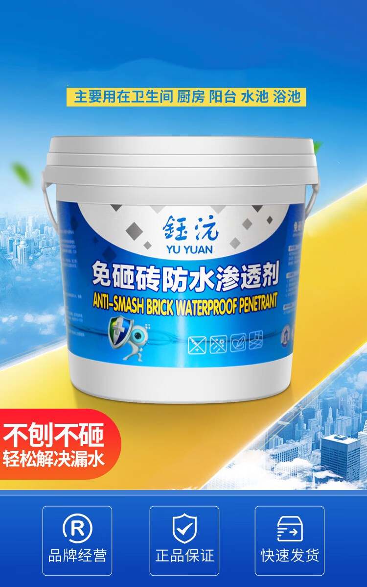 钰沅免砸砖防水渗透剂专用胶卫生间漏水透明防水胶厕所补漏胶浴室涂料 3kg免砸砖(7-9)平方【送工具】