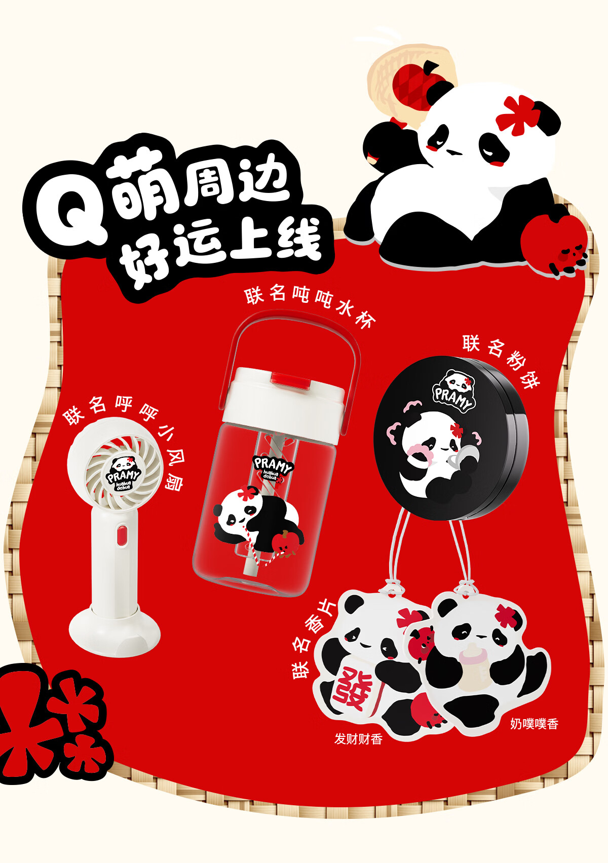 柏瑞美(PRAMY)huahua熊猫联名款后台保湿定妆喷雾快速成膜控油不易脱妆 T 柔焦雾面(100ml)-發财定妆款