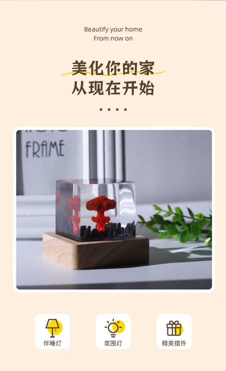 RSRDDY广岛之恋摆件工艺品原爆炸纪念蘑菇云小夜灯摆件情人节礼物装饰品 富士山下