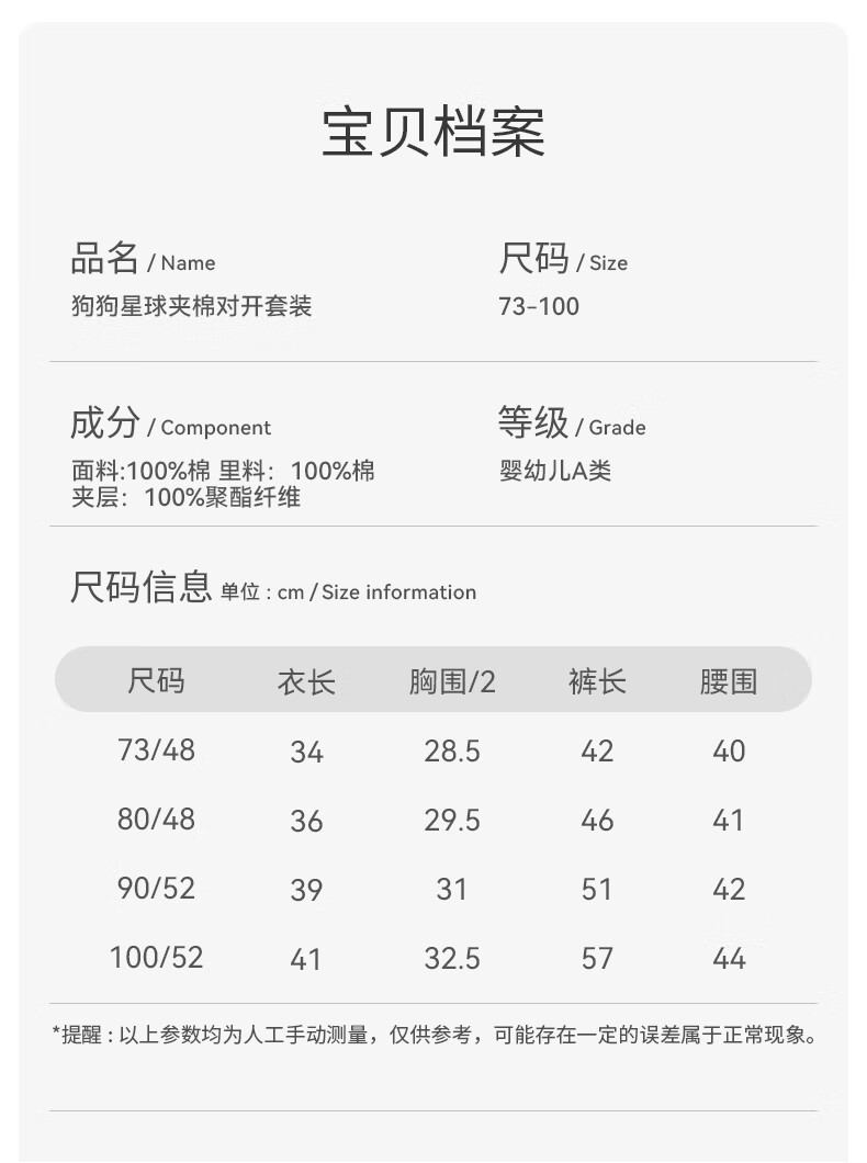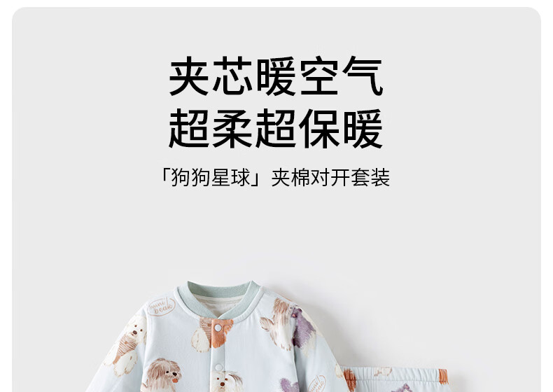 欢喜小熊 婴幼儿家居服套装抗菌防螨宝宝冬季睡衣两件装婴儿保暖冬装衣服 狗狗星球 90