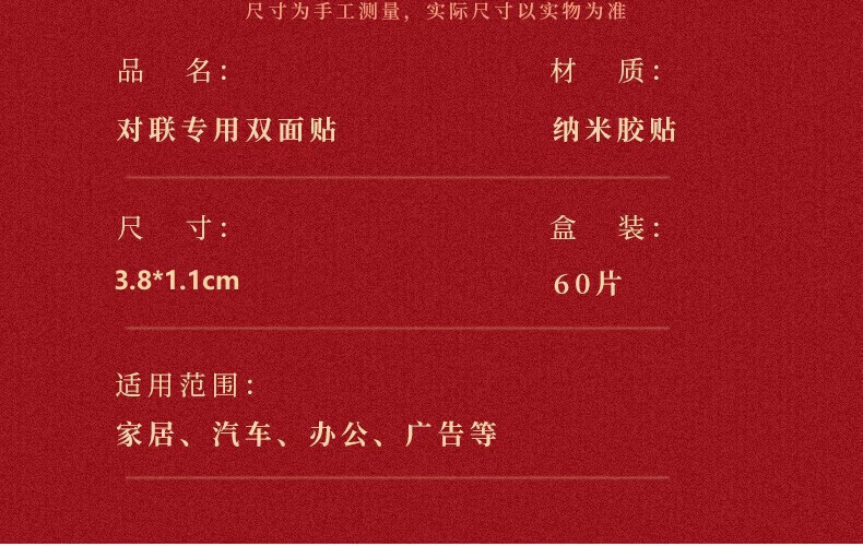 Jidaocook贴对联专用双面胶透明无痕易撕春节年画装饰双面贴粘春联神器胶带 对联双面贴-60片【1盒装】