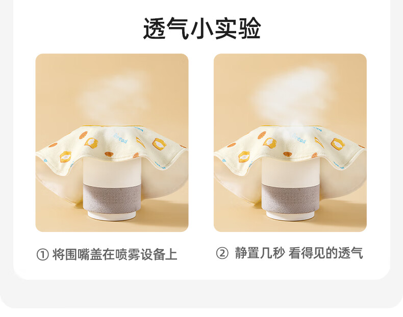 贝肽斯婴儿口水巾四季宝宝围嘴导湿速干纯棉防水围兜 奶芙3条装 28*26cm