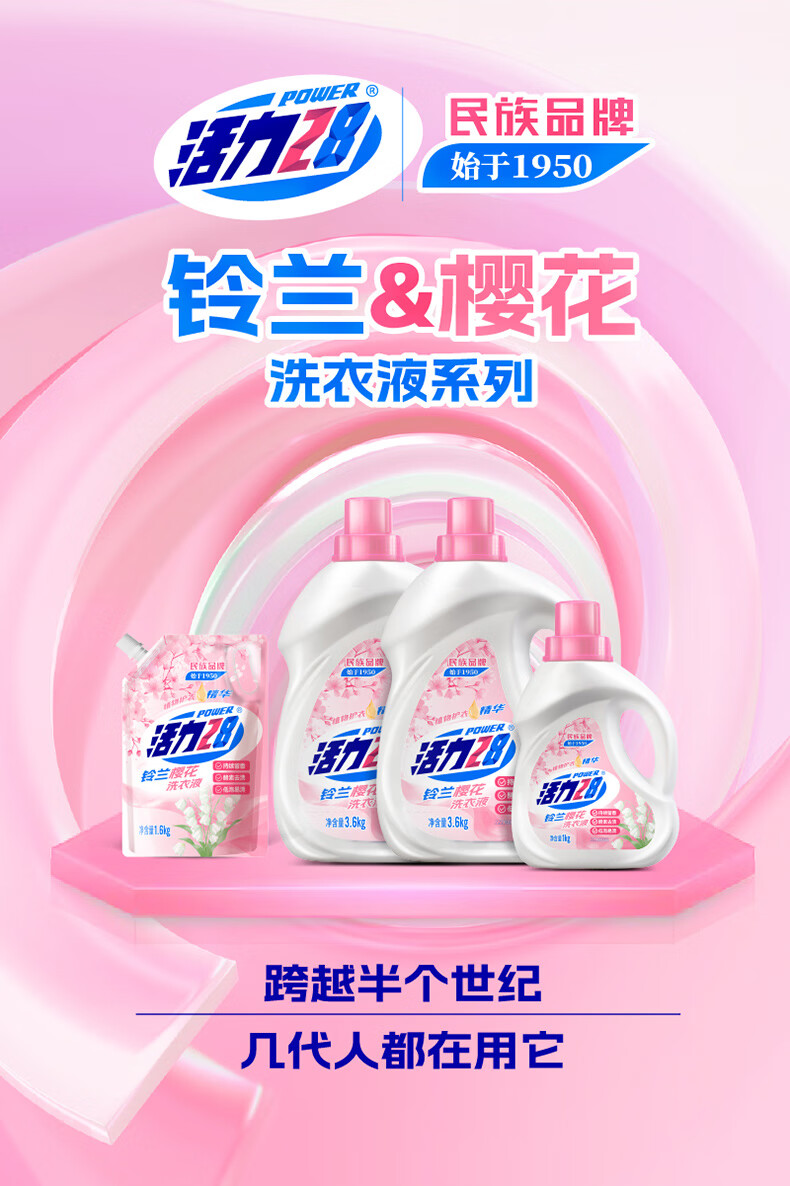 活力28铃兰樱花洗衣液5.2斤单瓶装 2.6kg酵素去污香氛持久留香 新品上市