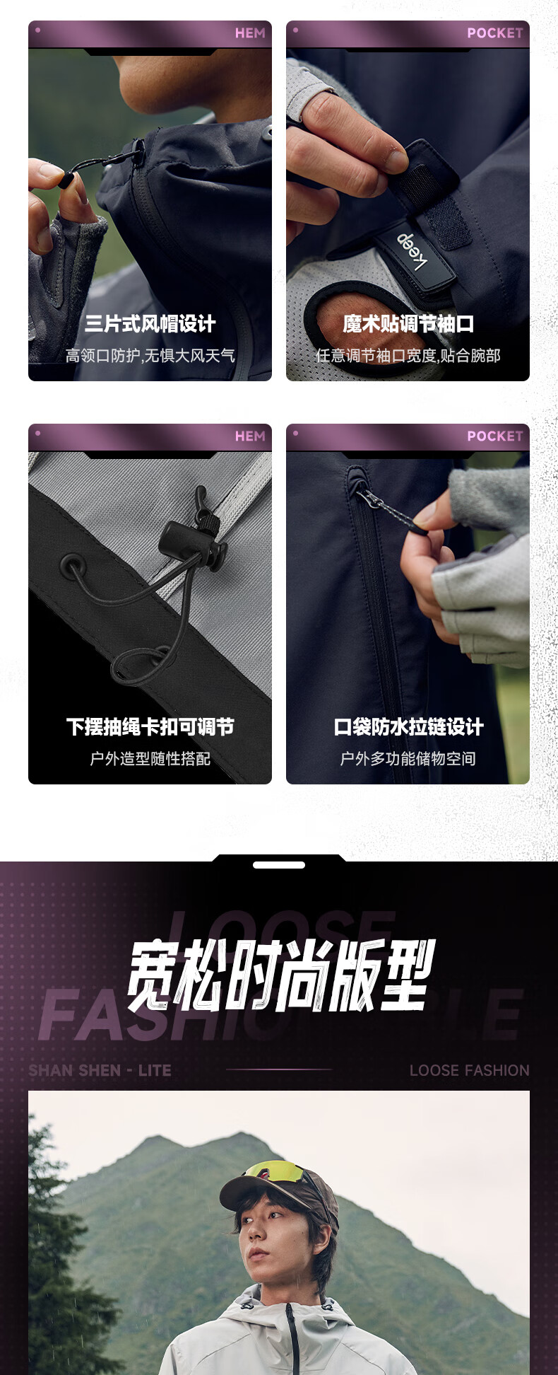乔丹山神Lite运动外套男Oversize宽松连帽风衣男夹克户外冲锋运动服男