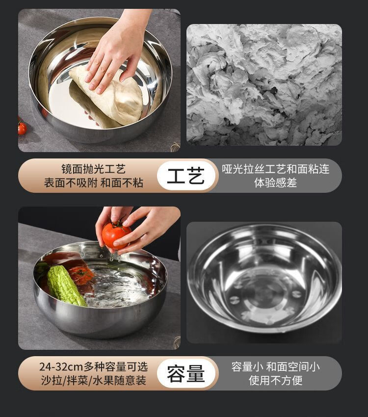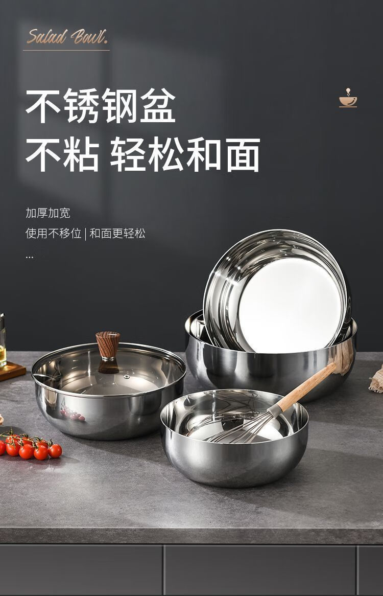 简漾加厚和面板家用电磁炉燃气通用火锅盆揉面打蛋煮面洗菜盆不粘 31cm【洗菜和面多功能】