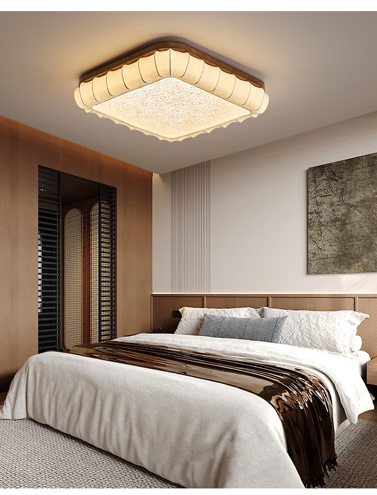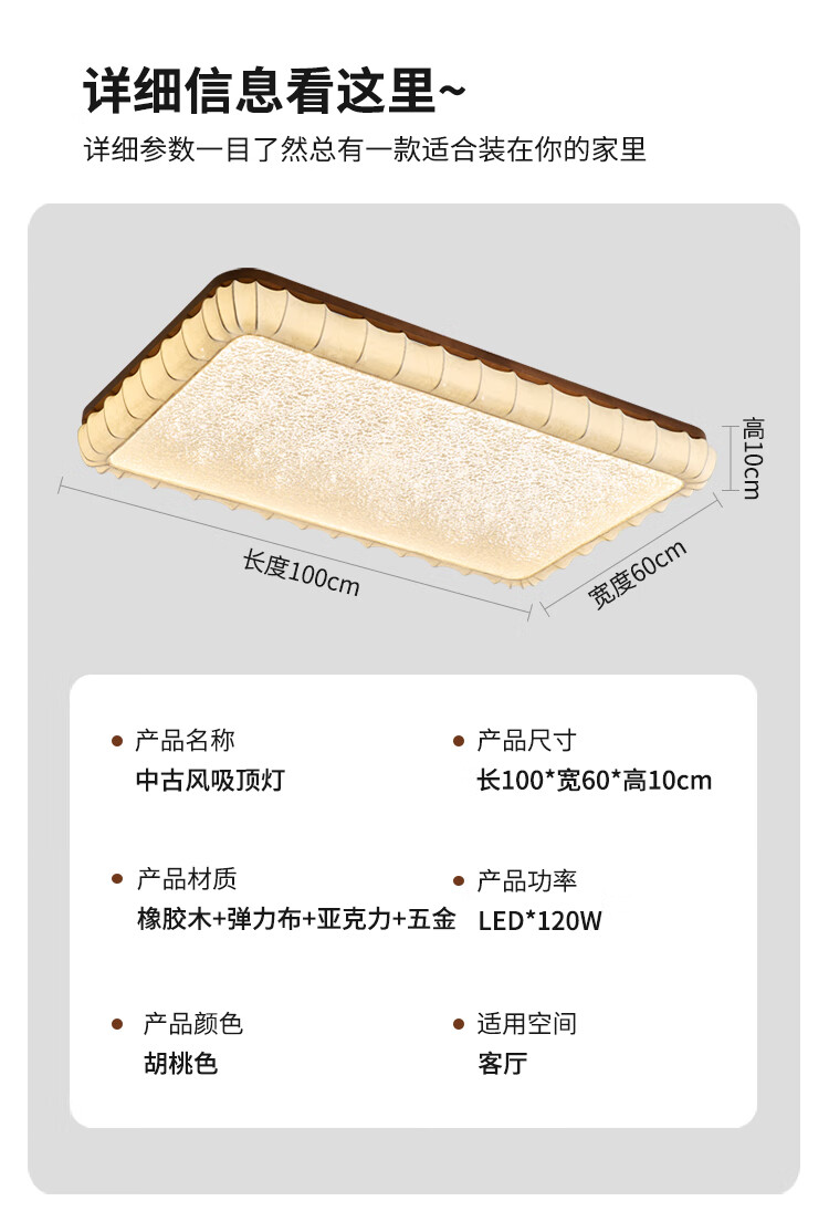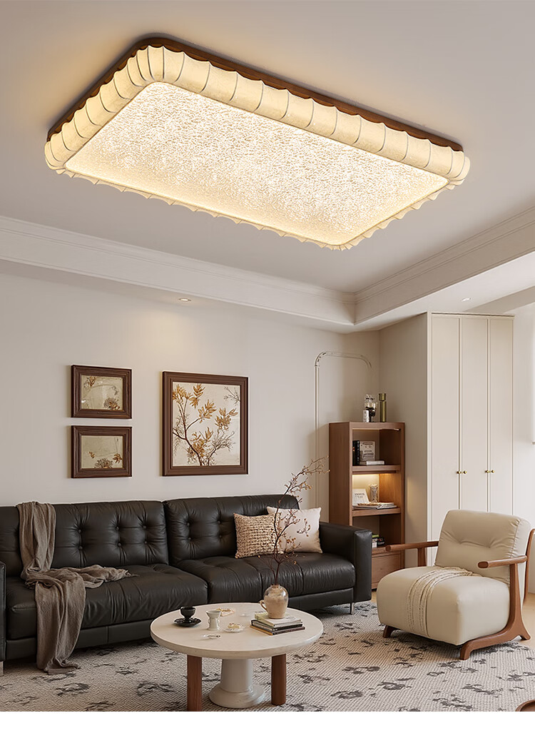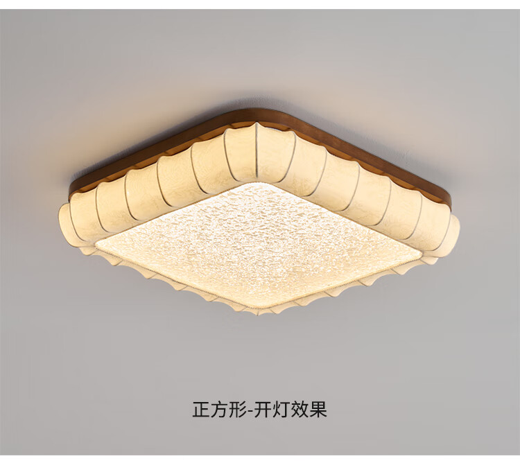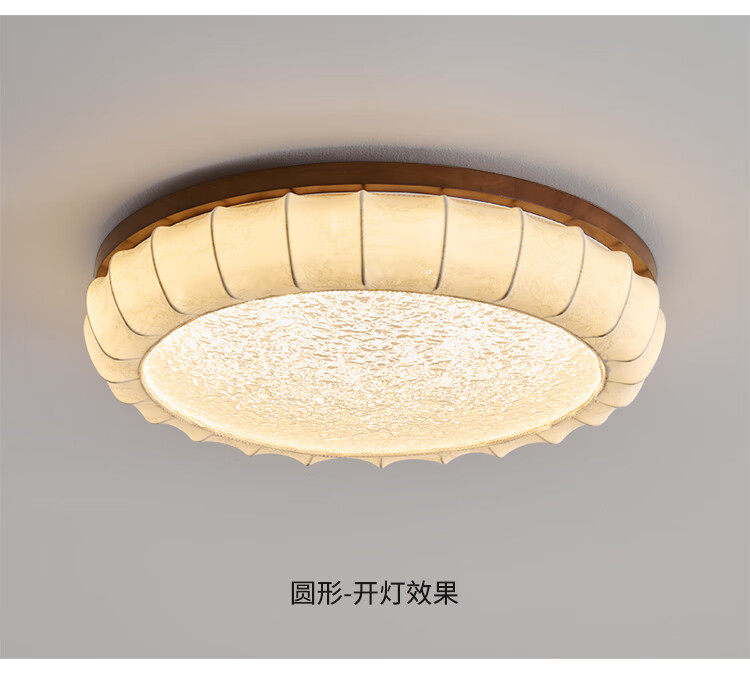 春在观木中古风卧室吸顶灯法式复古高级感胡桃木色客厅主灯宋代美学灯具 全光谱/圆50CM胡桃色+米黄-三色光
