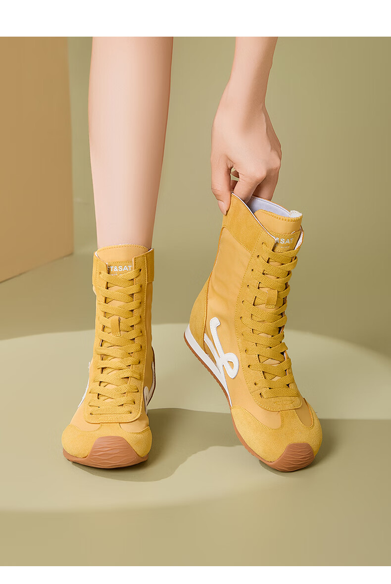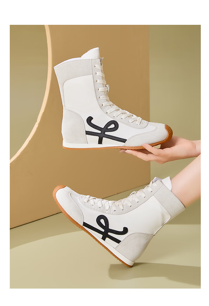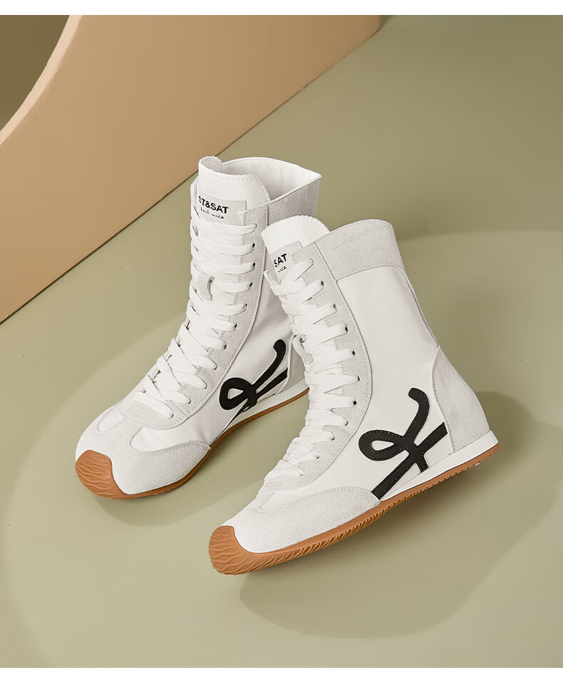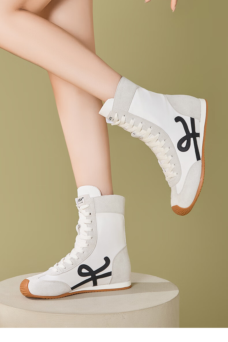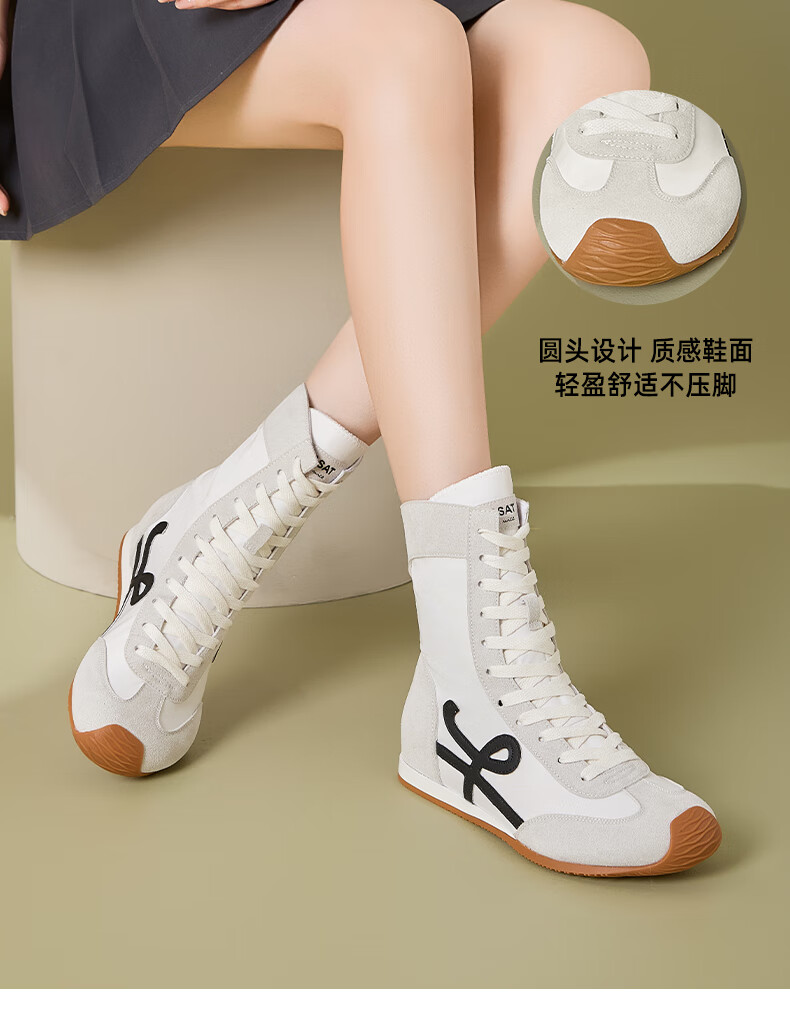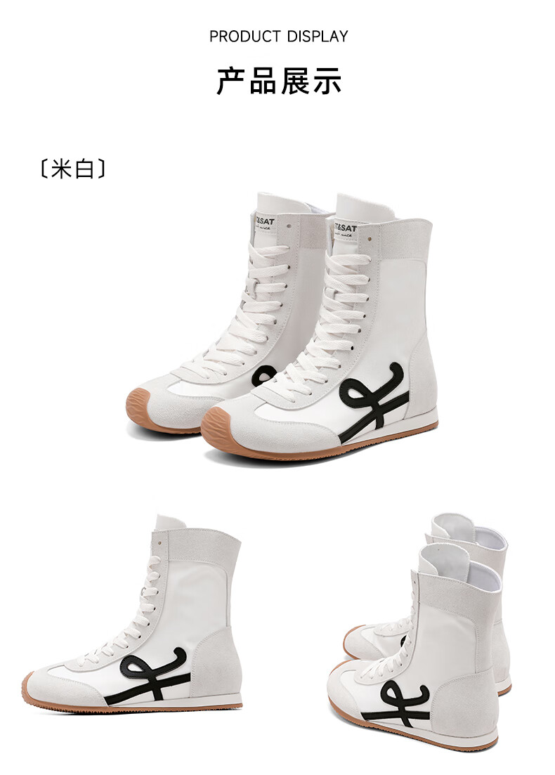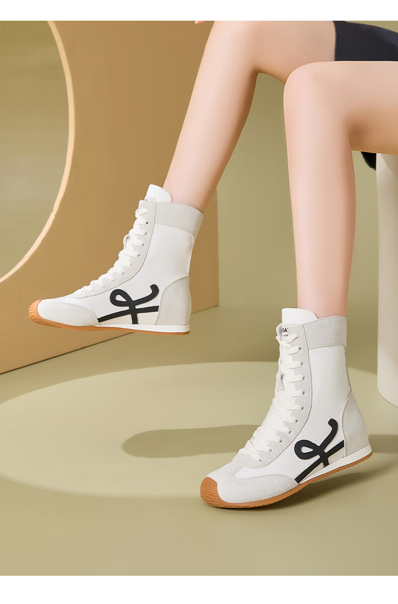 星期六厚底高帮拳击靴女款2025新款秋季复古内增高德训鞋子女百搭短靴 米白 35 225