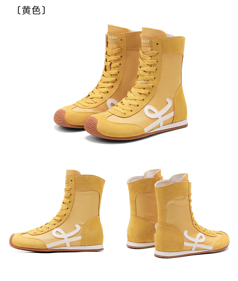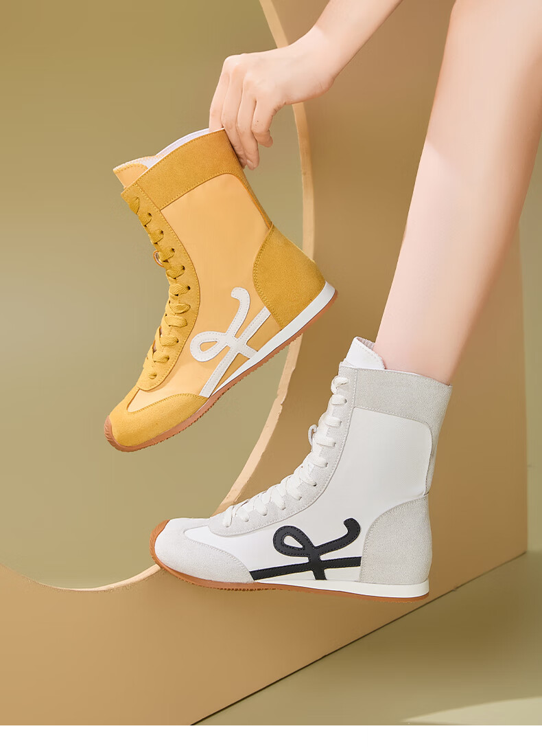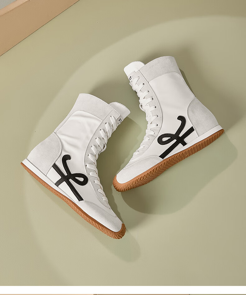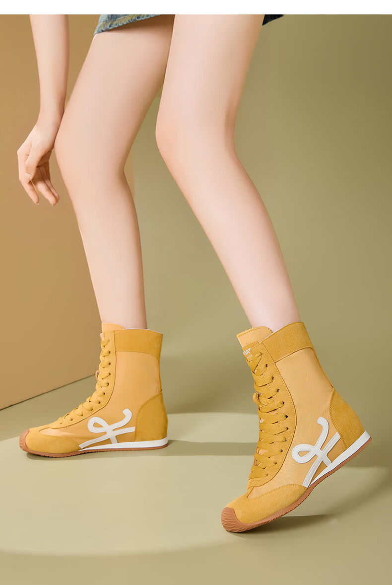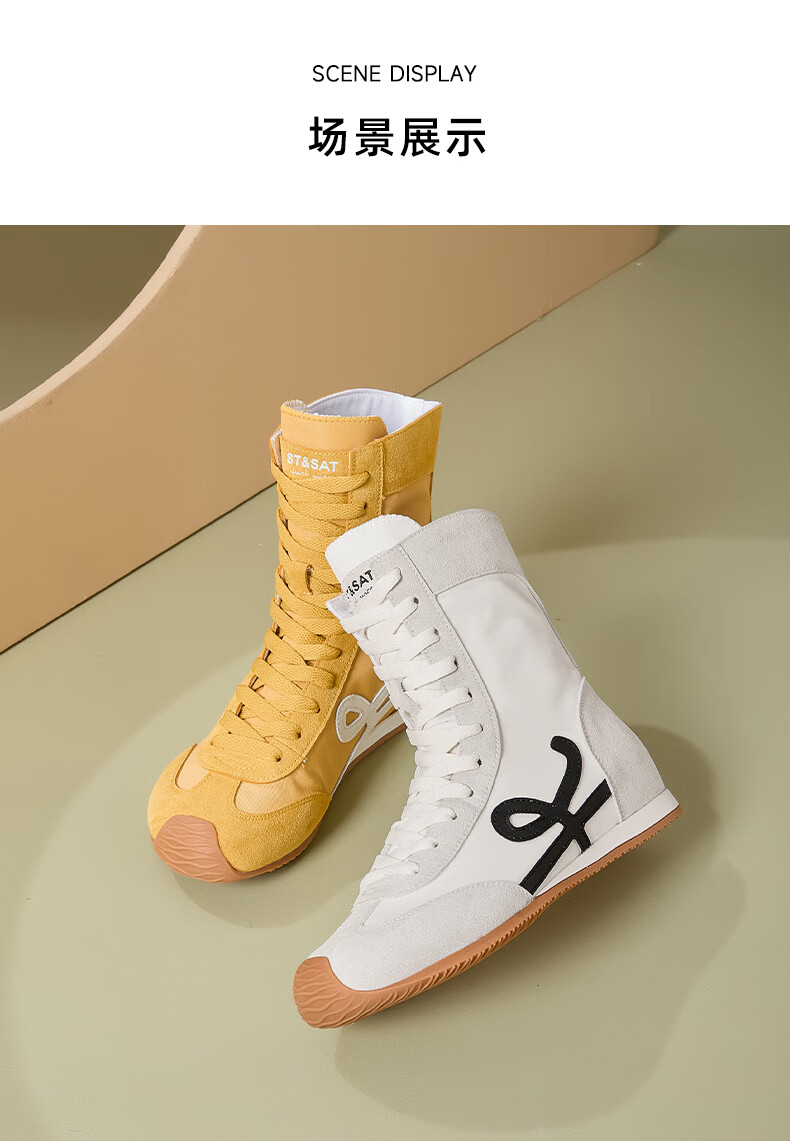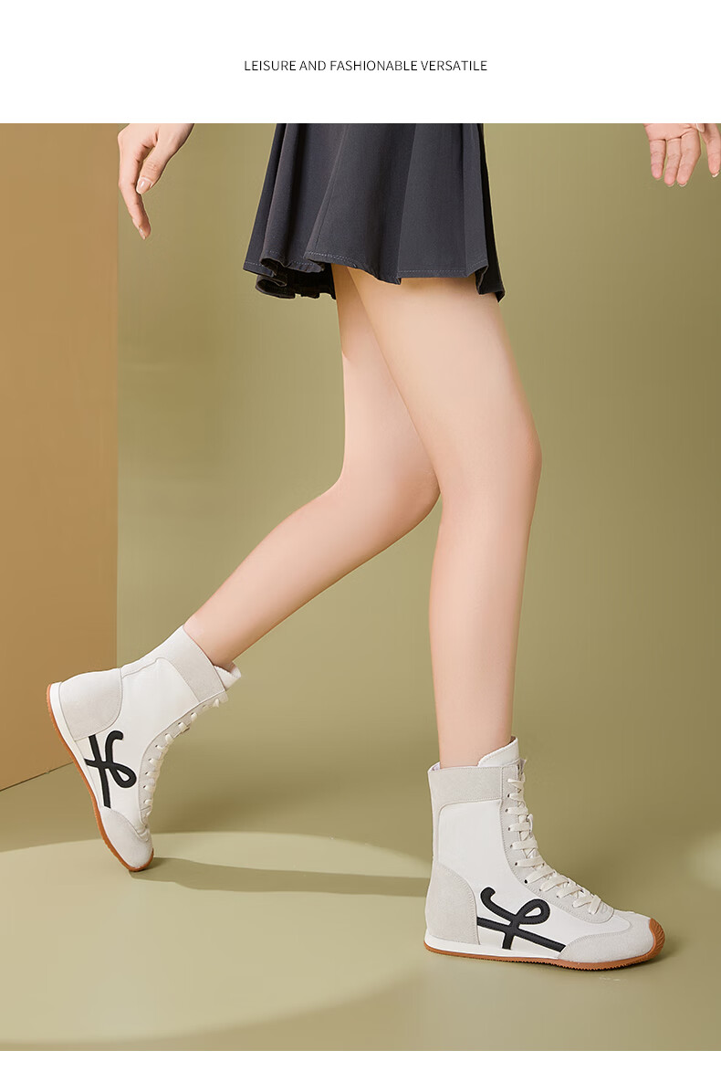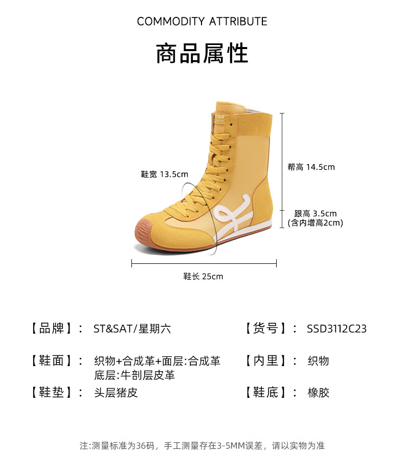 星期六厚底高帮拳击靴女款2025新款秋季复古内增高德训鞋子女百搭短靴 米白 35 225