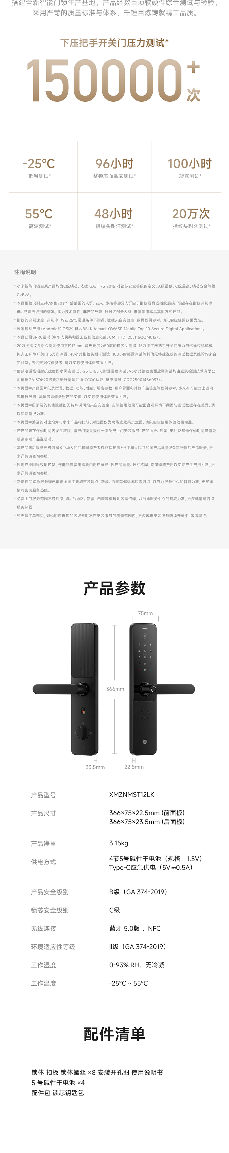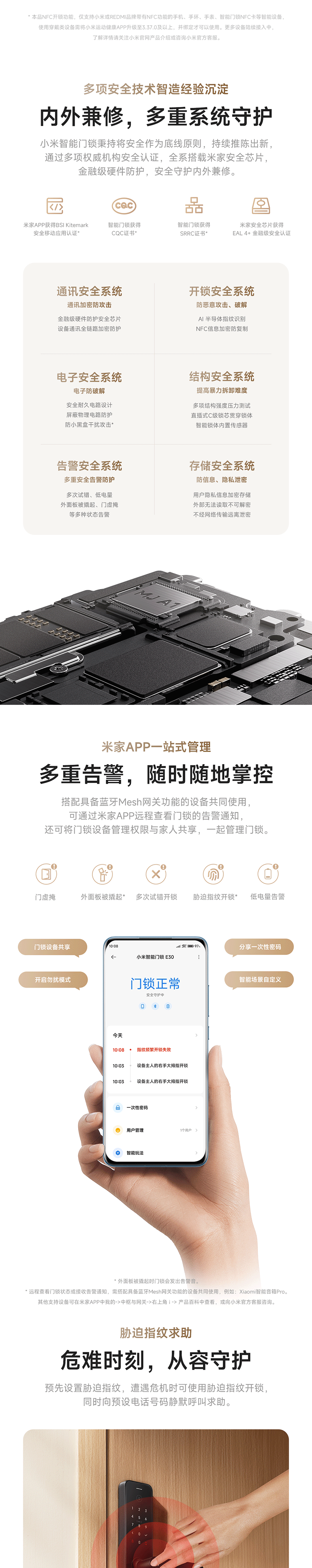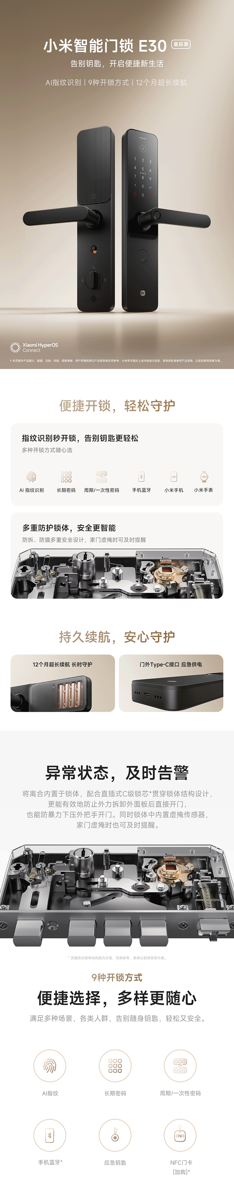 小米智能门锁 E30星辰黑C级锁芯指纹锁电子锁家用门锁 防盗门锁密码锁