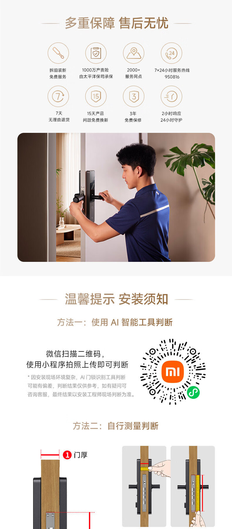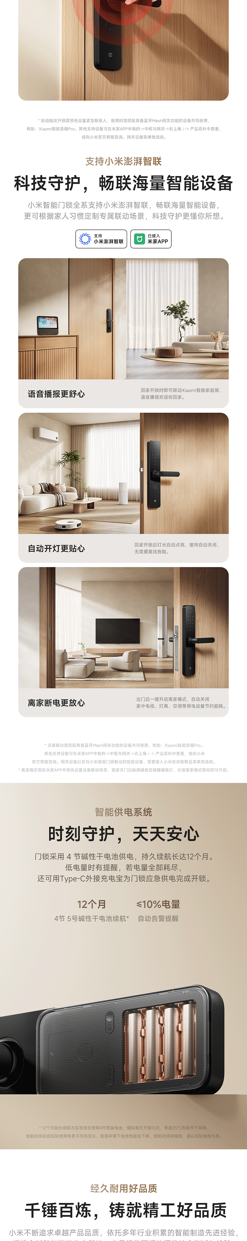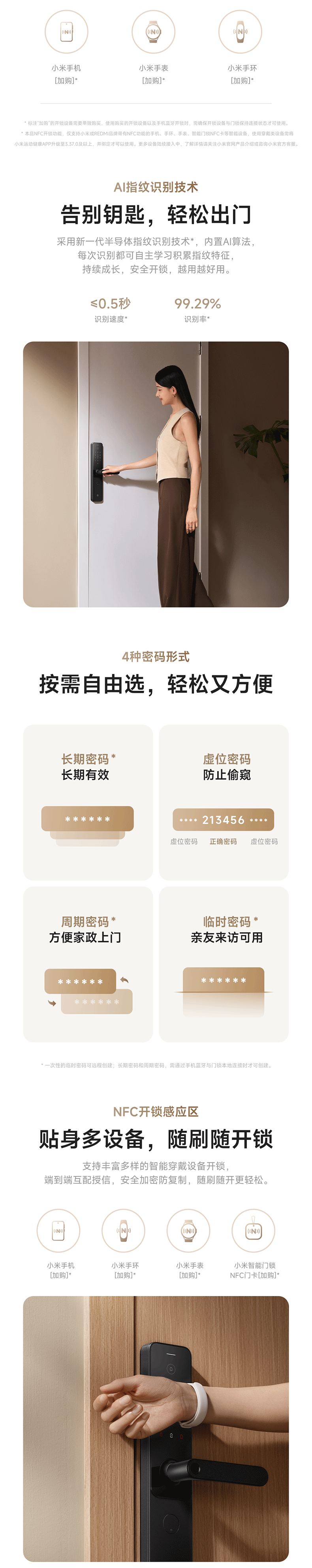 小米智能门锁 E30星辰黑C级锁芯指纹锁电子锁家用门锁 防盗门锁密码锁