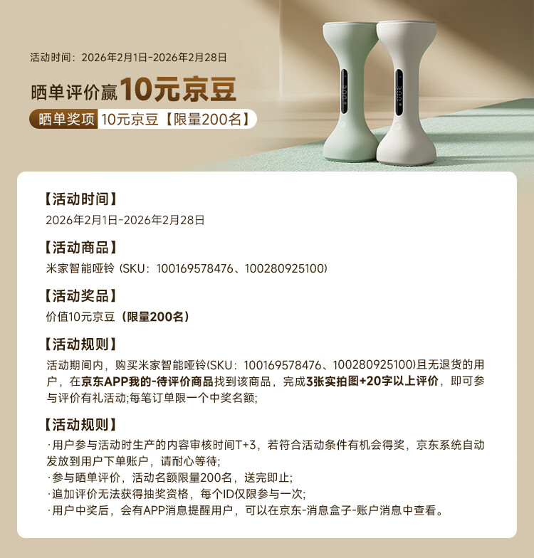 米家智能哑铃 男女家用家庭健身肌肉塑形手臂轻重量浅沙色 1kg*2