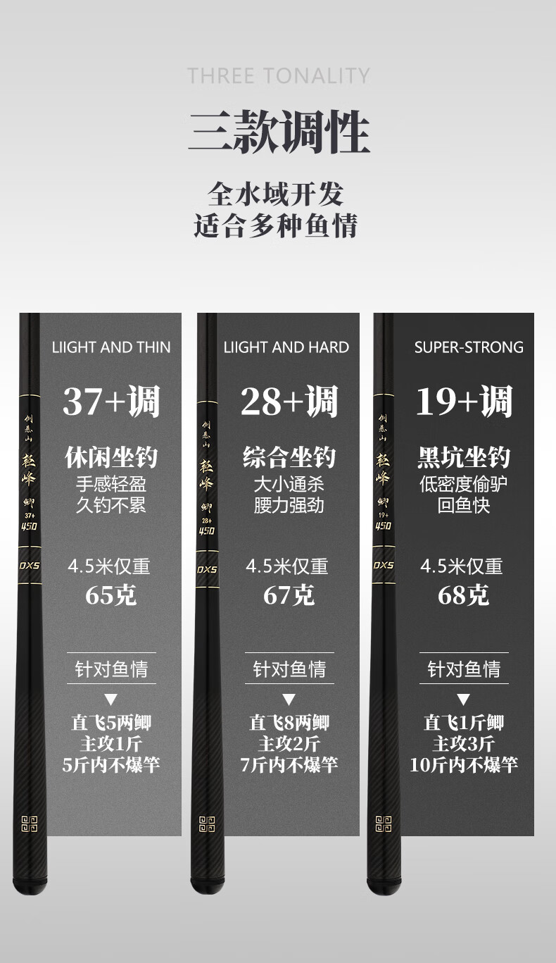 倒悬山威海鱼竿鲫鱼竿超轻超细鱼竿19调休闲野钓28调5.4台钓手竿钓鱼竿 5.4m 超硬19调性双竿稍+礼包