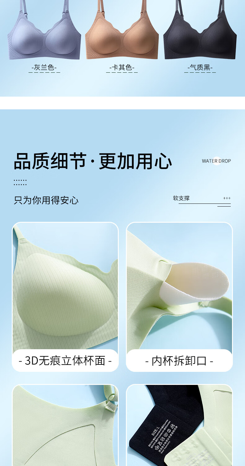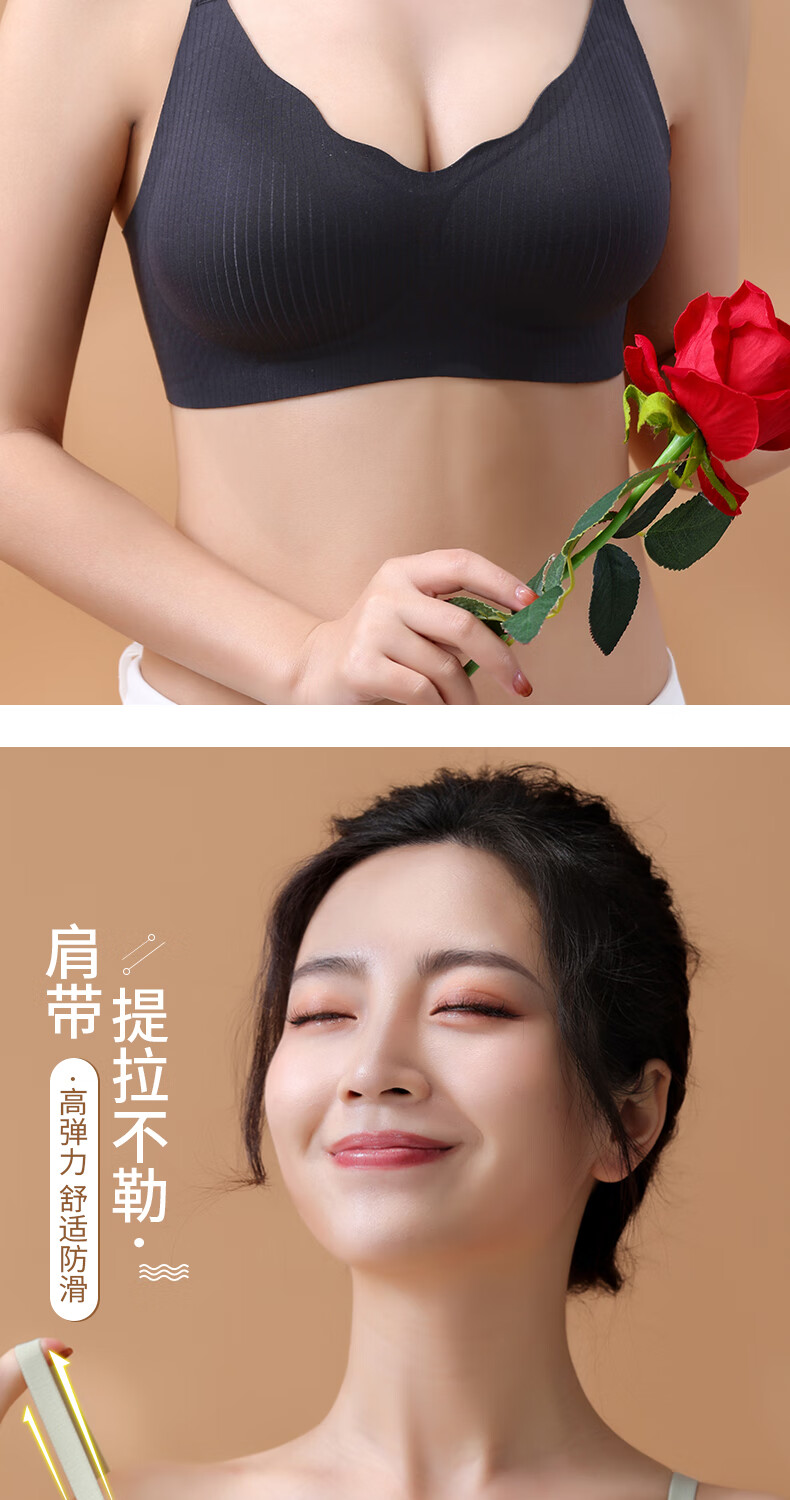 靓芯依【粉底液内衣】美背25新款网红爆款隐形无痕小大胸聚拢型文胸 【一件】神秘黑 2XL 码:38BC-40A /140-160斤
