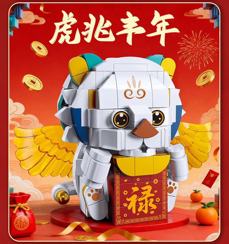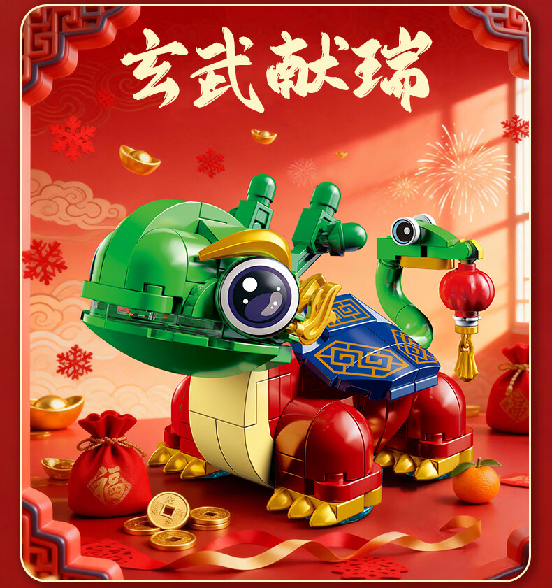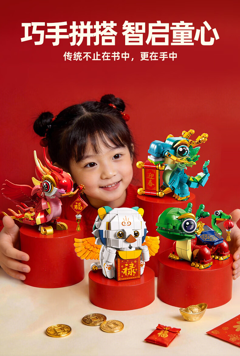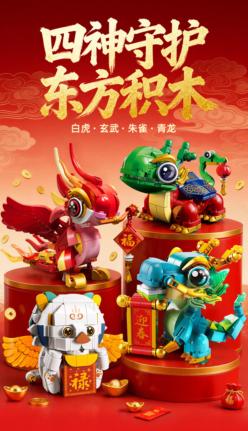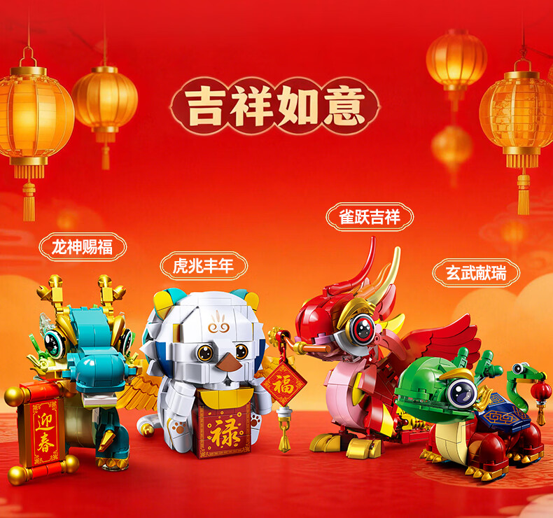 乐凑(L)中国四大神兽积木拼装模型儿童玩具摆件男孩6-12岁过年礼物礼盒 醒狮招财猫800+Pcs