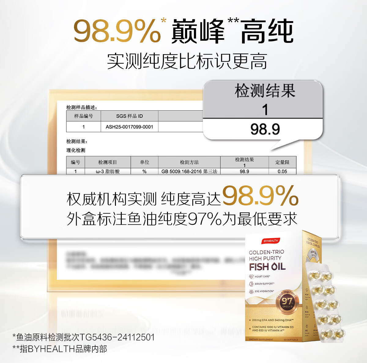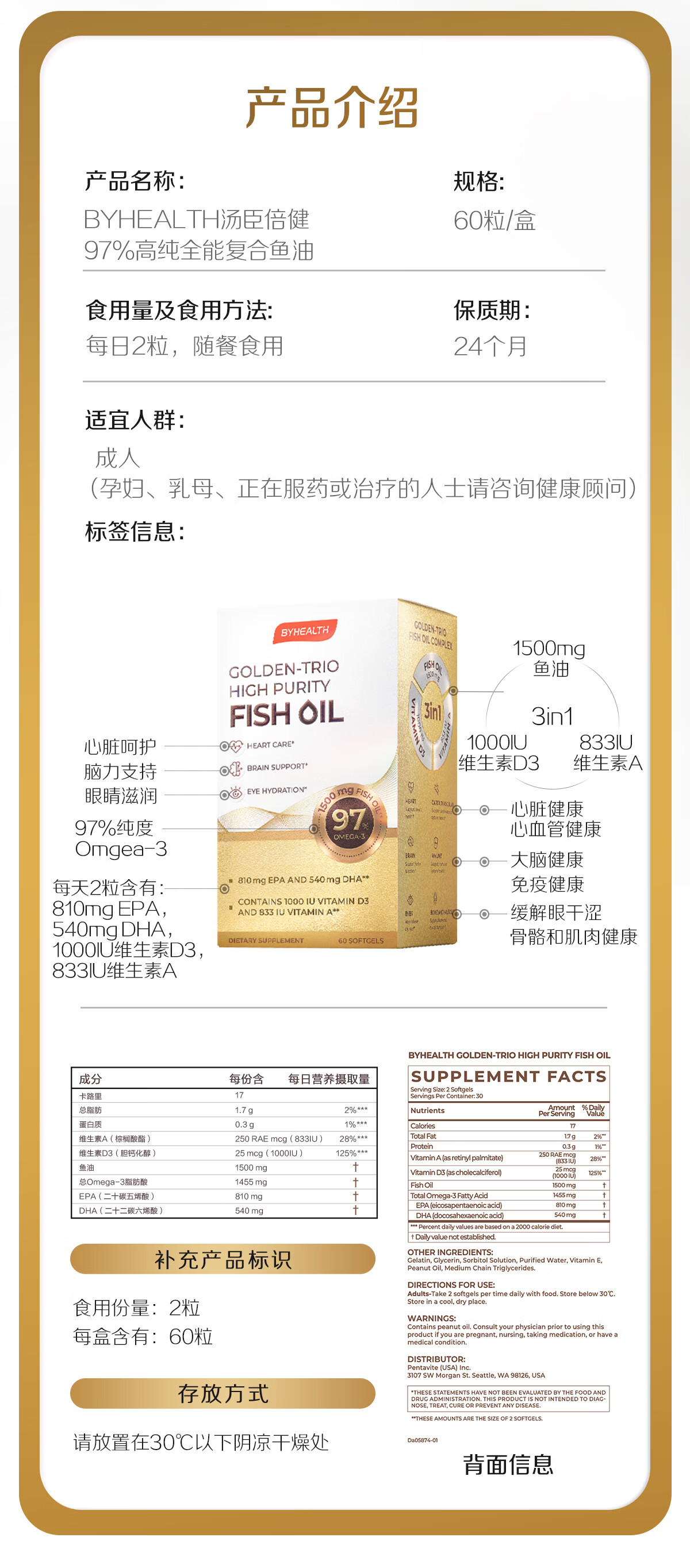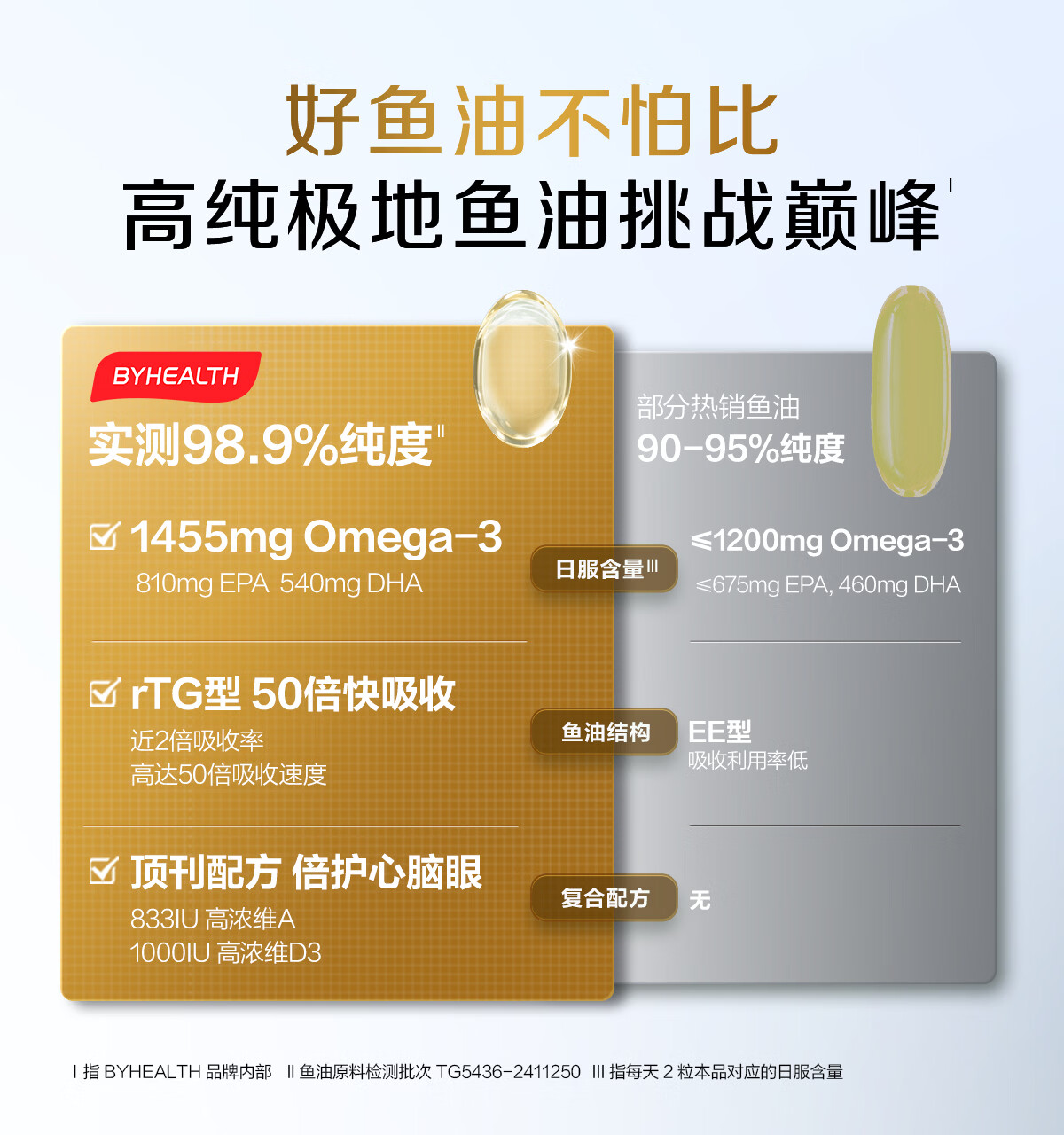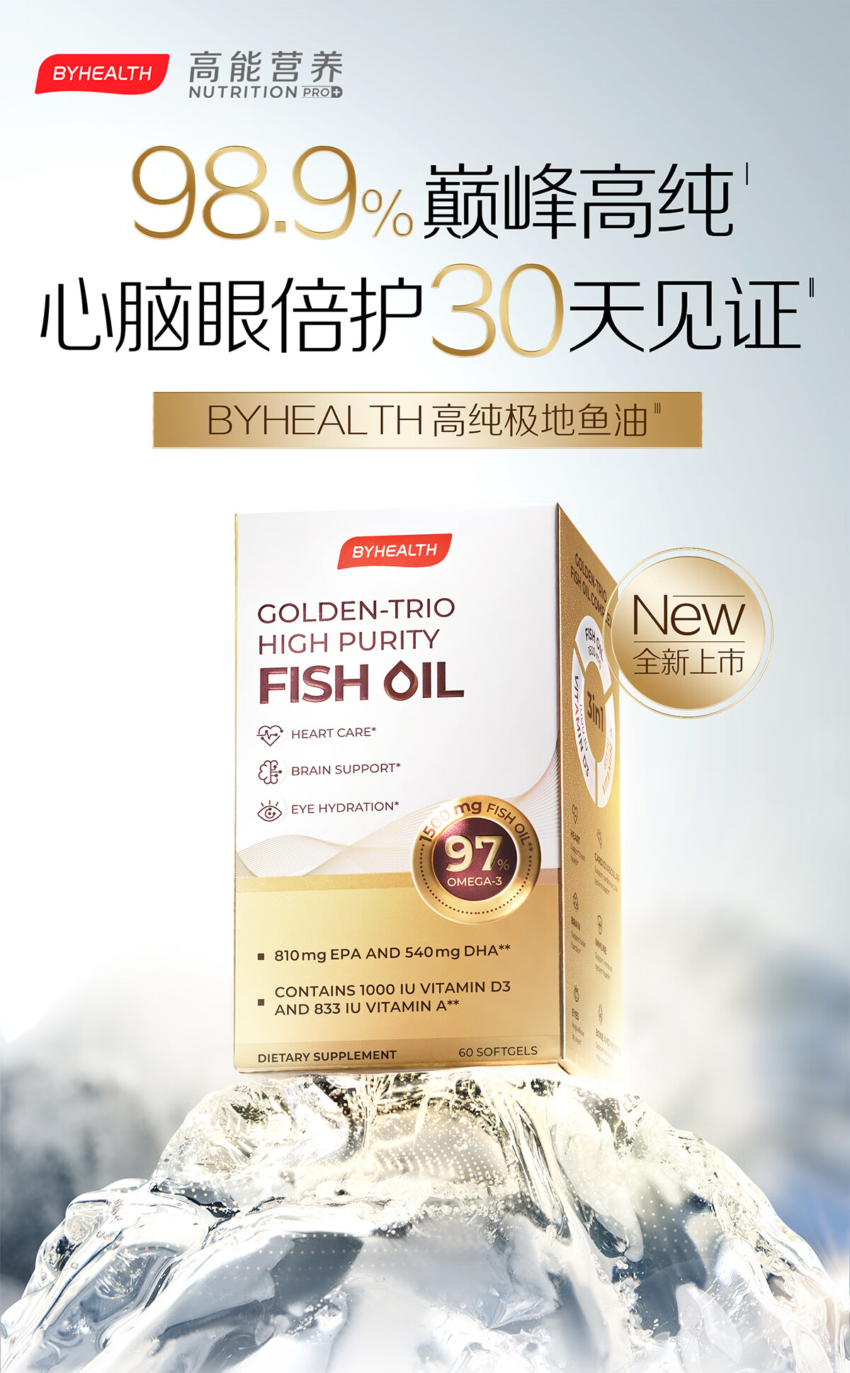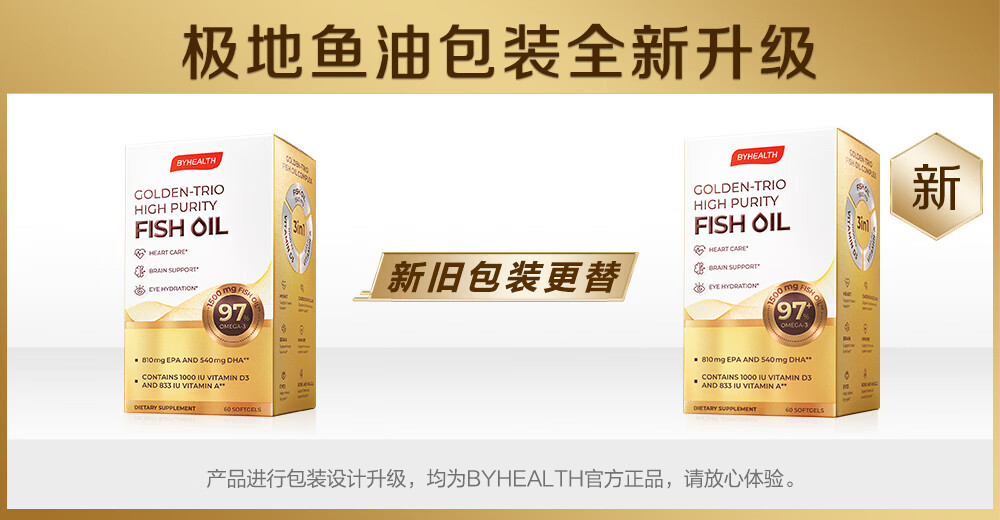 BYHEALTH鱼油高纯度95%以上进口成人护心补脑润眼ERP降血脂通血管 高纯度鱼油 60粒*2盒 【疏通血管】