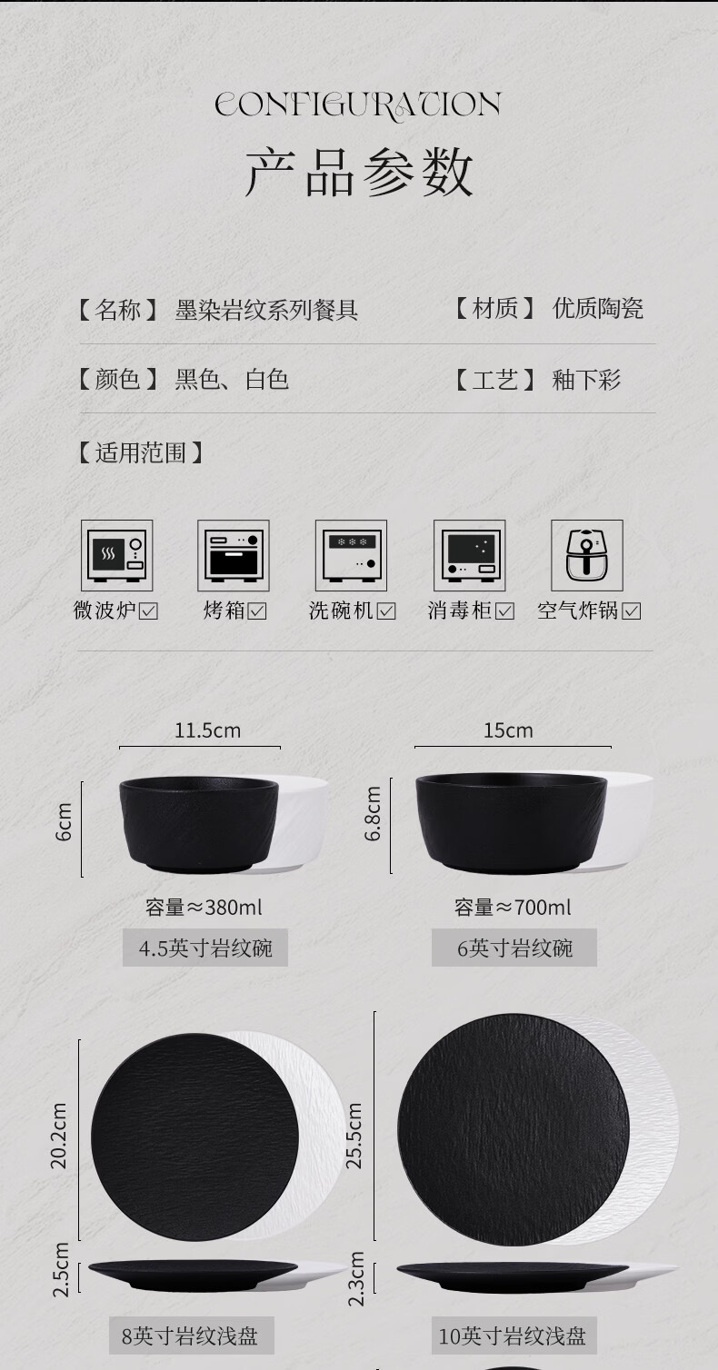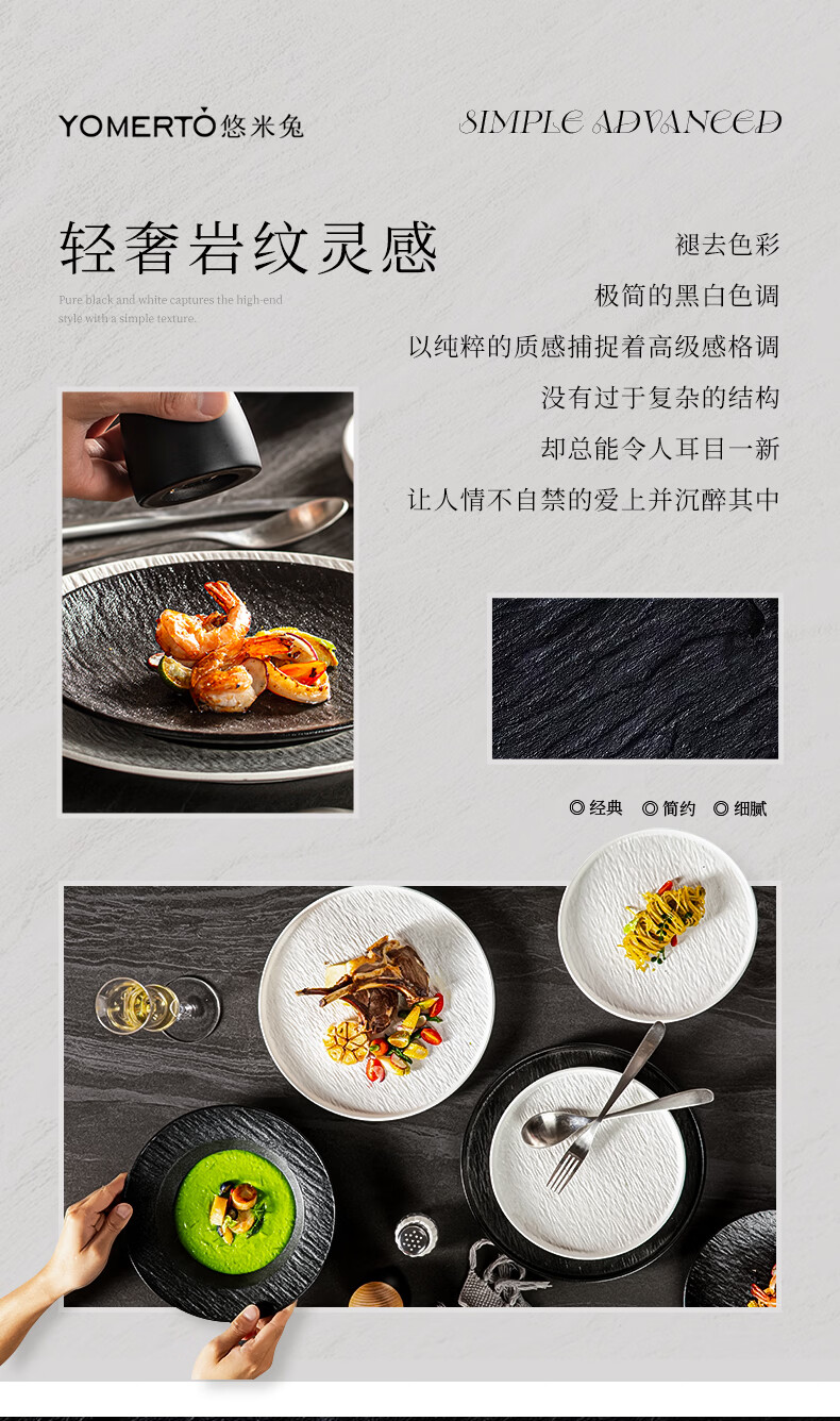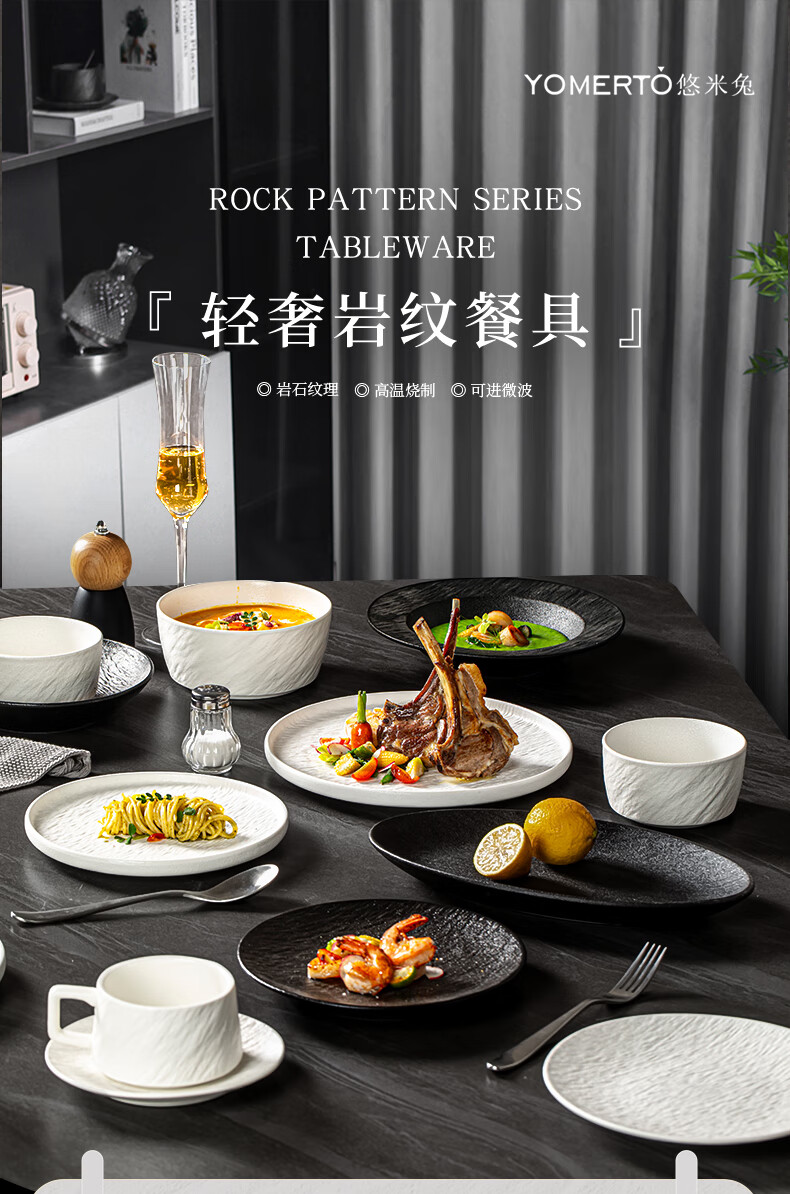 yomerto陶瓷饭碗家用2025新款特别好看的碗高级感餐具盘子碗套装汤碗面碗 12寸石纹鱼盘黑SP5954