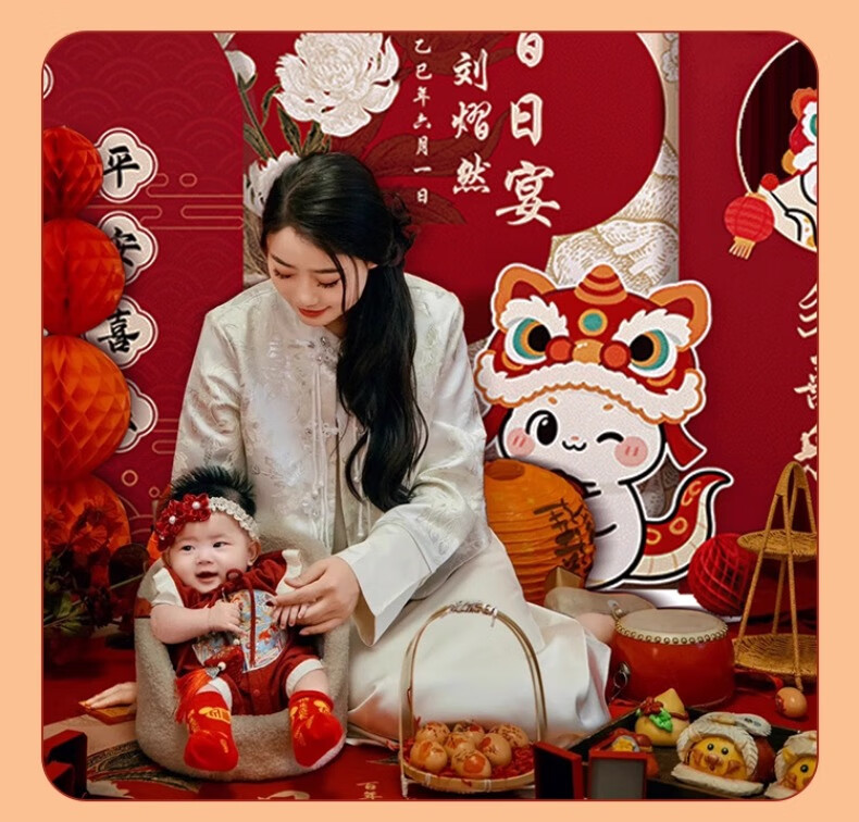 抓周蛇宝宝满月百日宴布置装饰百天氛围感场景仪式用品全套kt板背景墙 (1.8m)蛇宝百日顺遂无忧单板B+蜂窝球+手足印+迎宾牌