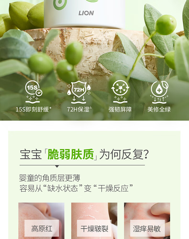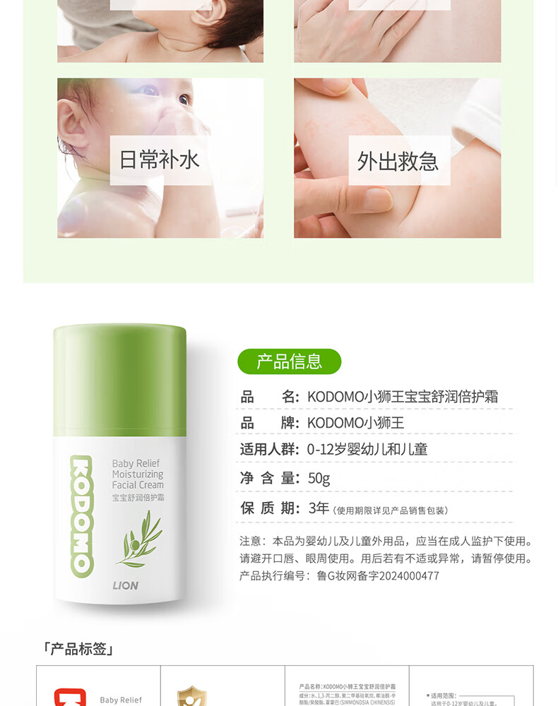 狮王(Lion)小狮王宝宝舒润倍护霜10g护肤