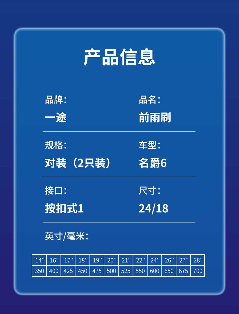 一途无骨雨刮对装名爵6【17款-至今】雨刮器原厂原装原车mg6雨刷胶条