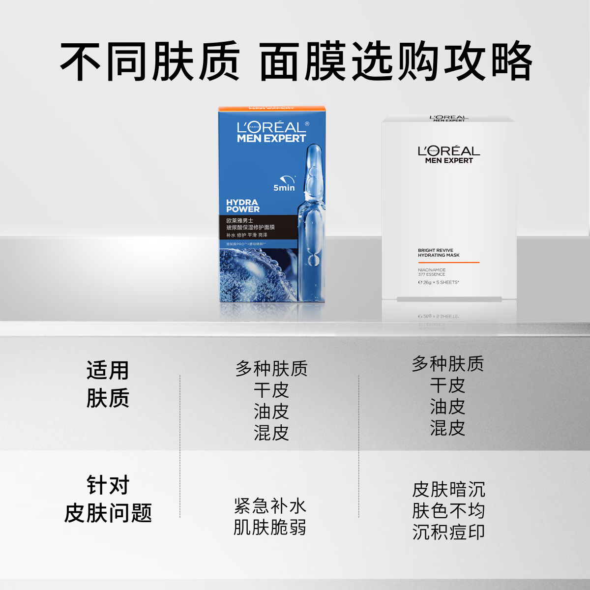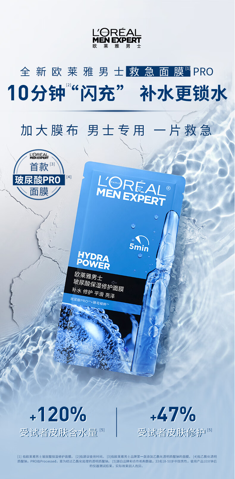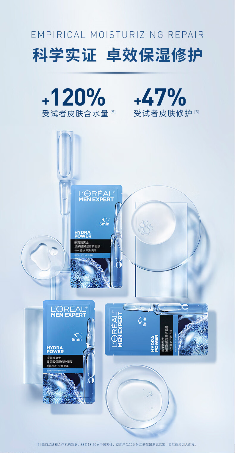 欧莱雅男士玻尿酸保湿修护面膜5片补水锁水强韧屏障抗皱男士护肤品新年