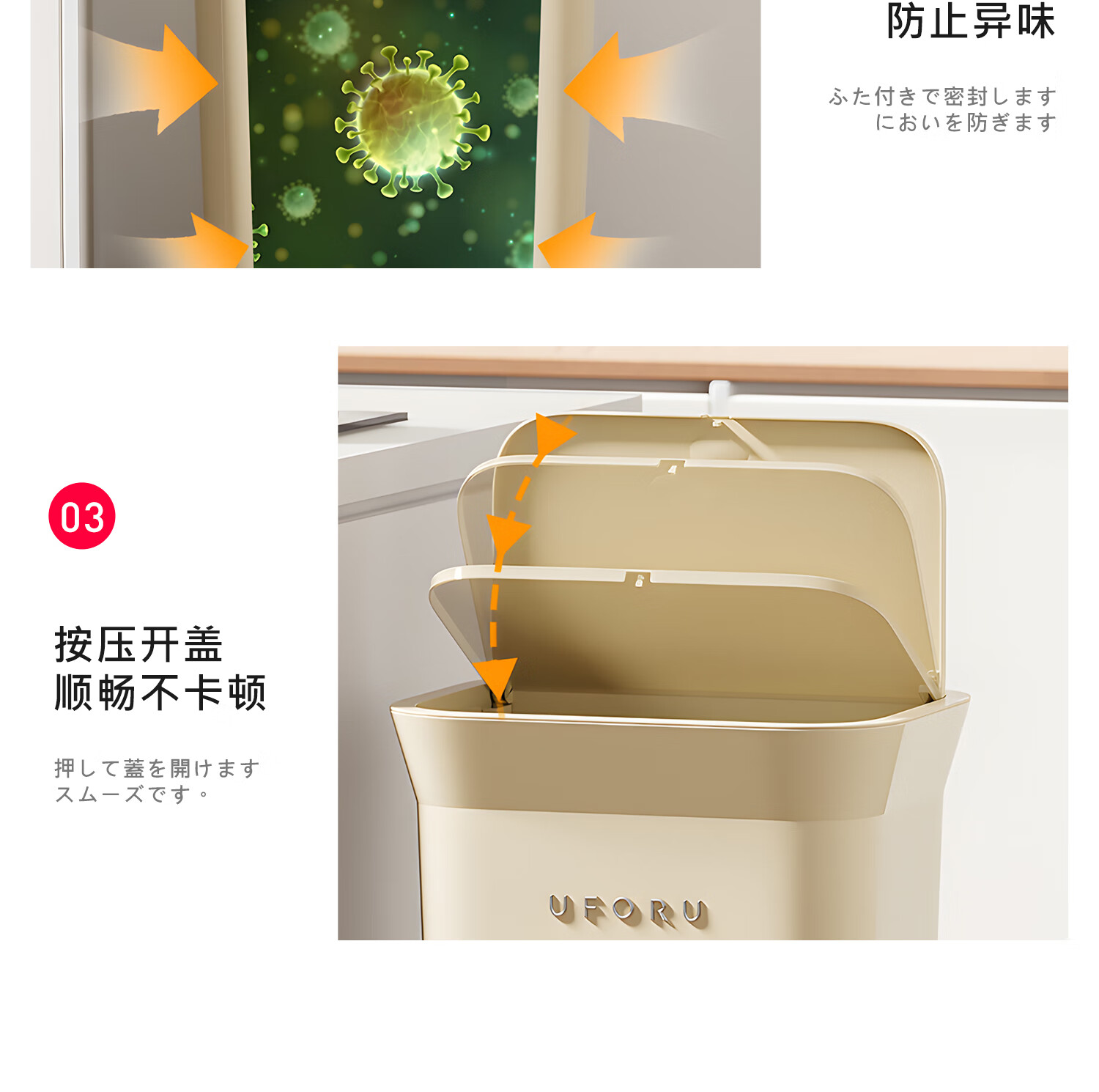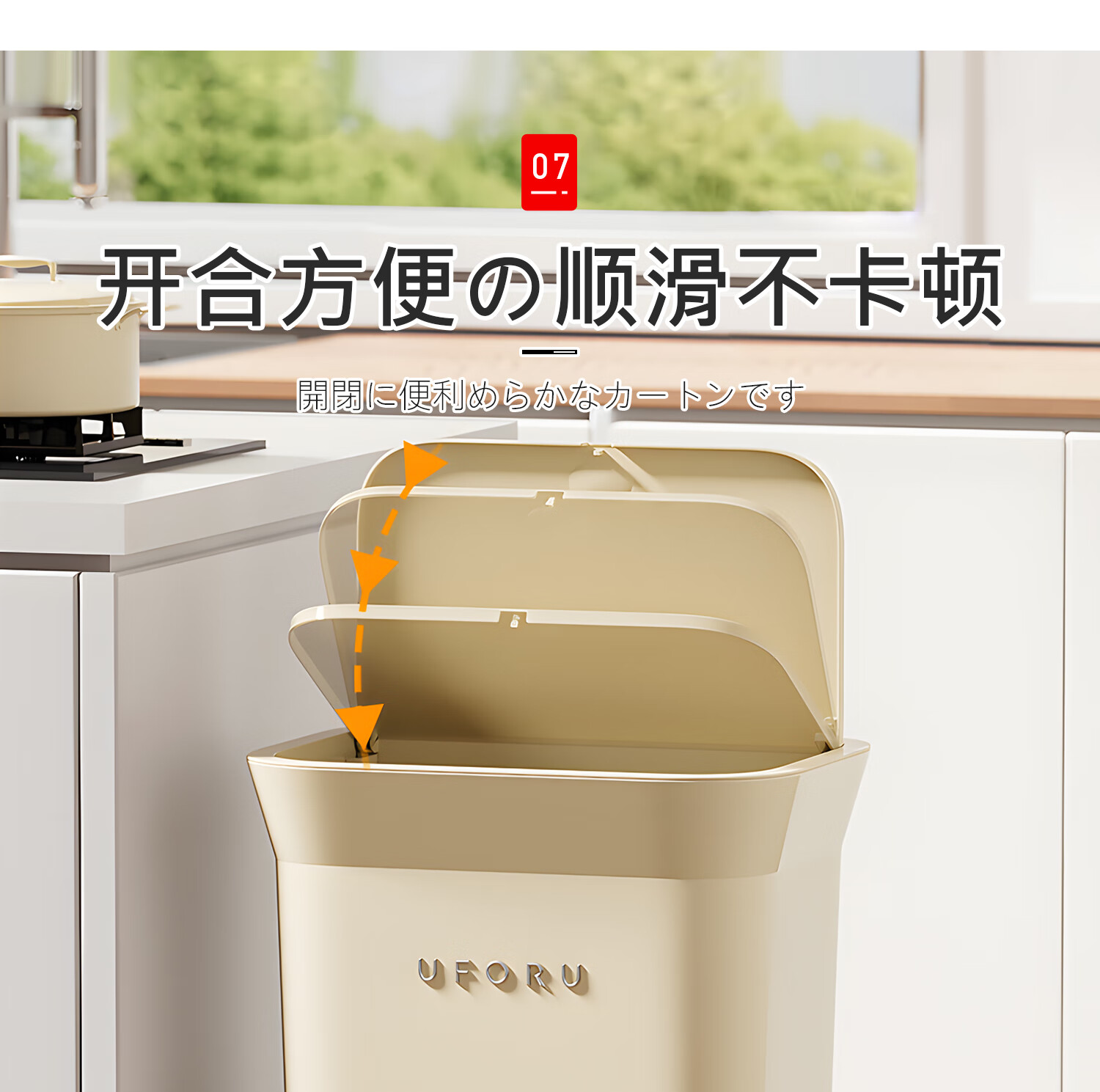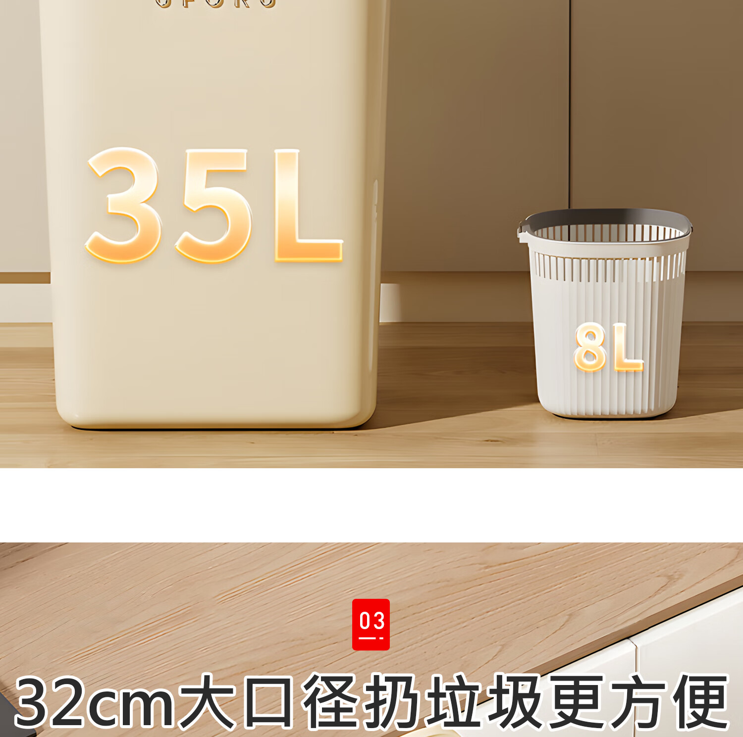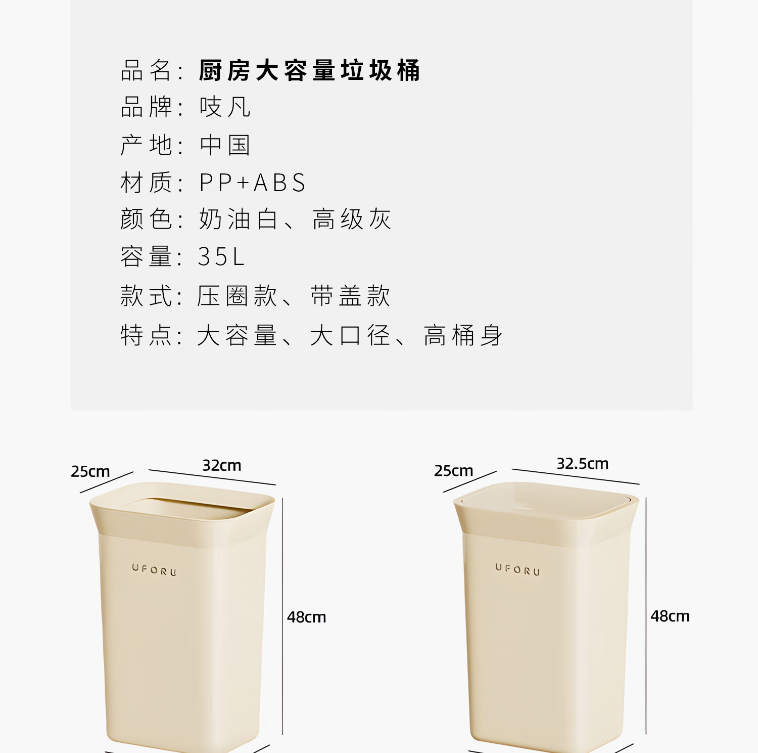 吱凡日本厨房垃圾桶大号大容量收纳2025新款专用客厅厨余储物家用高款 【奶油白无盖-35L】+垃圾袋60只