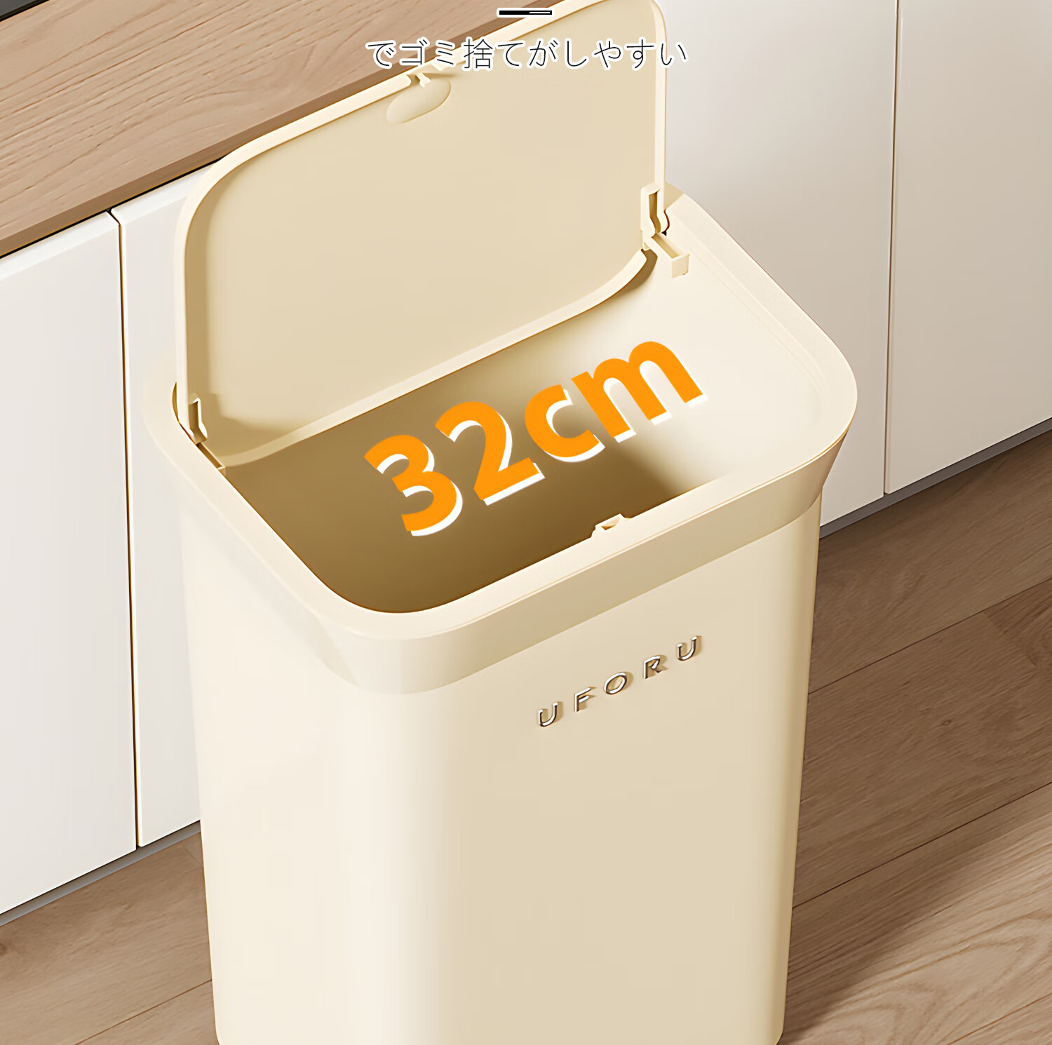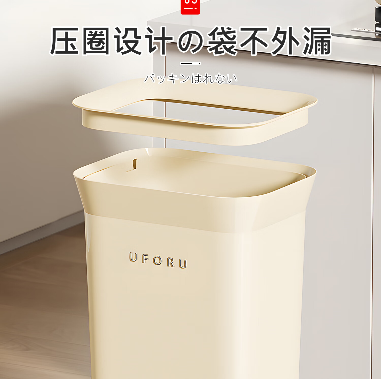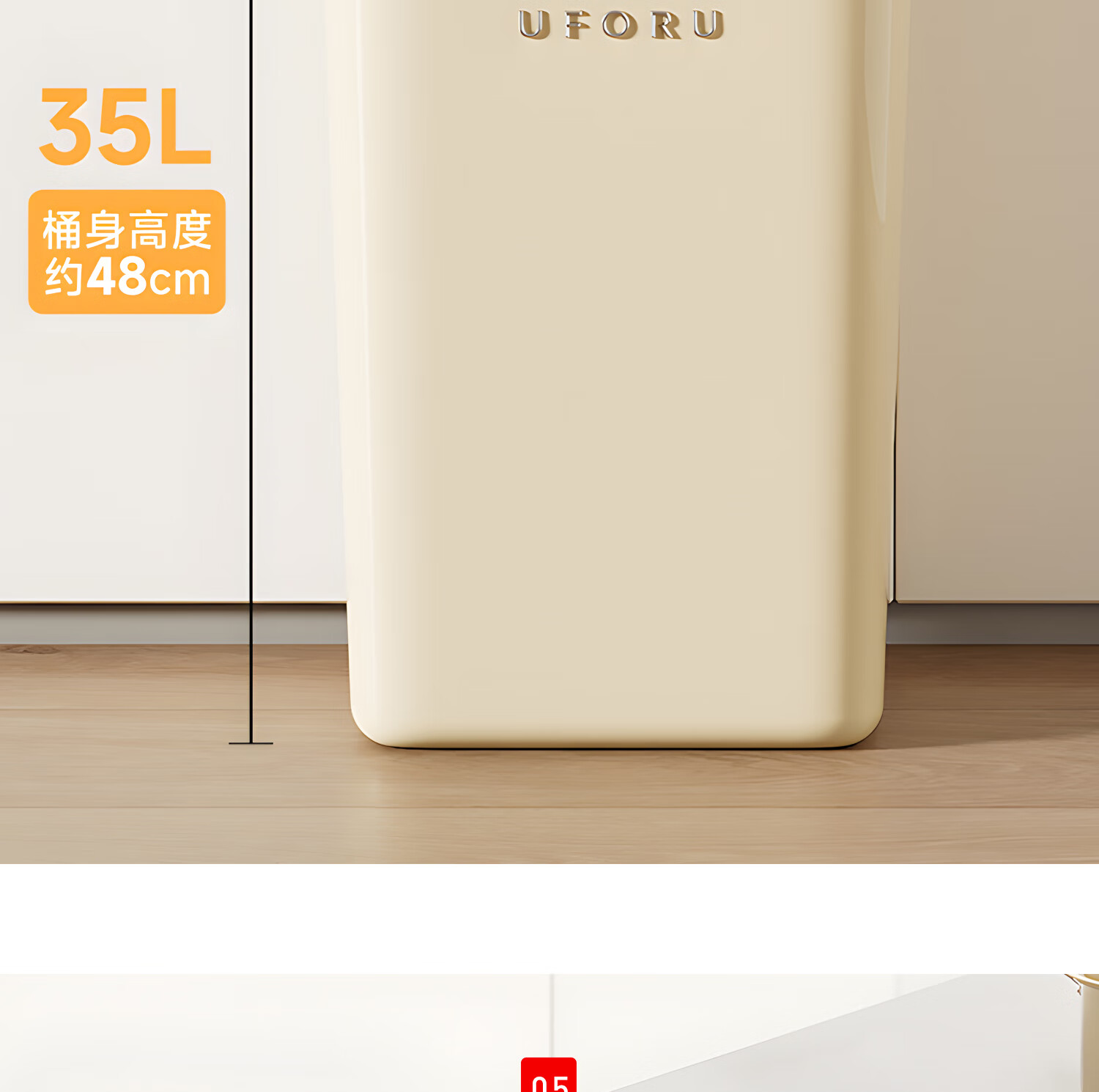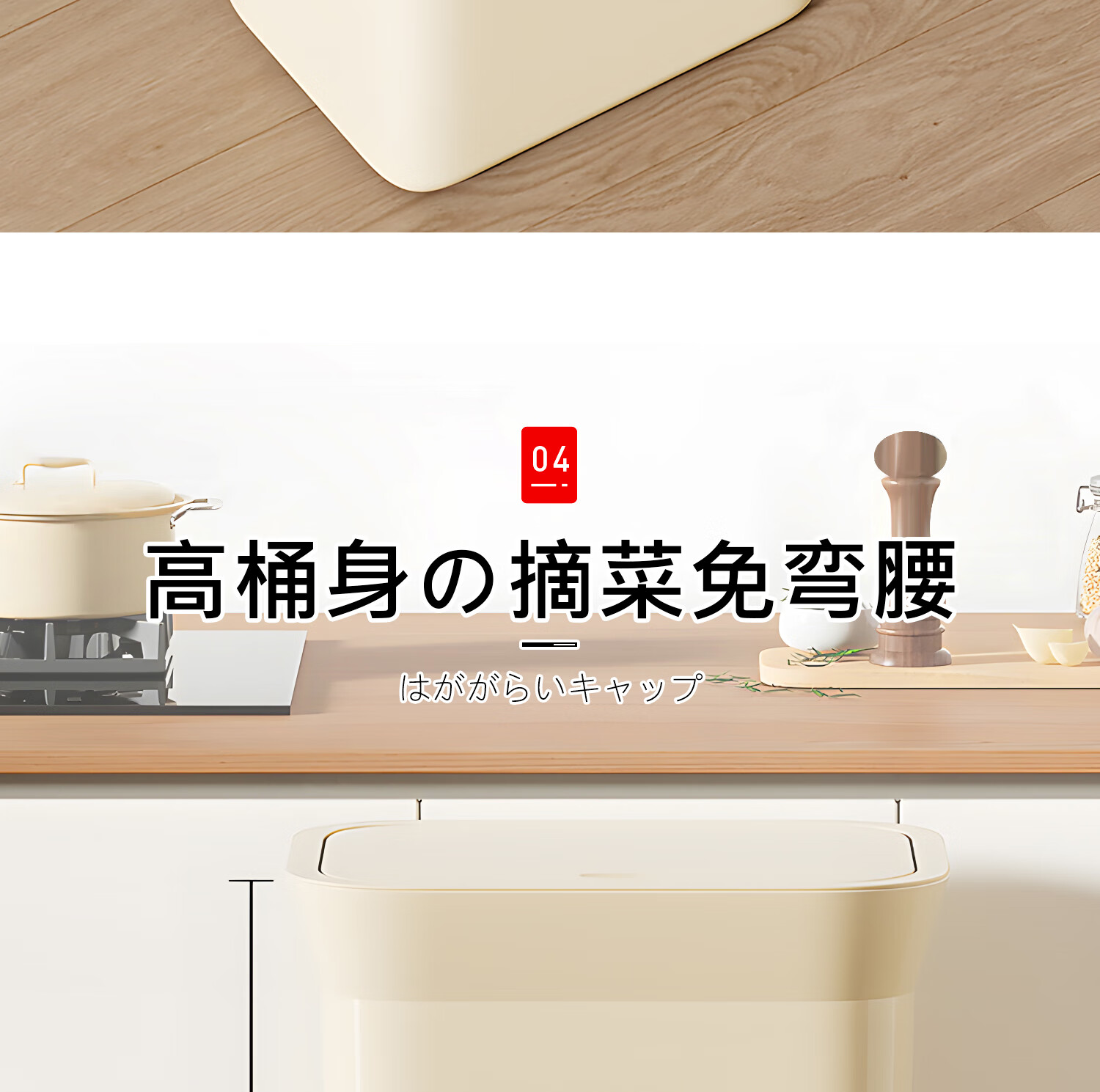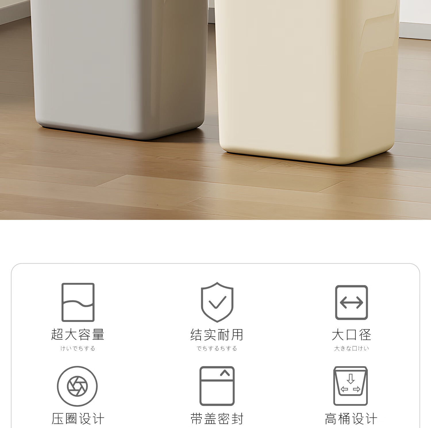 吱凡日本厨房垃圾桶大号大容量收纳2025新款专用客厅厨余储物家用高款 【奶油白无盖-35L】+垃圾袋60只