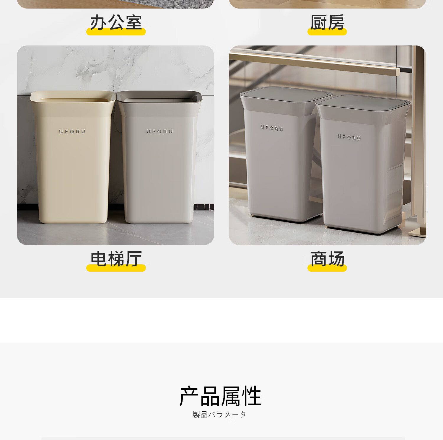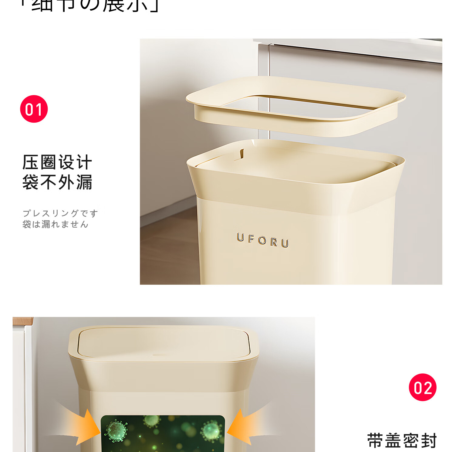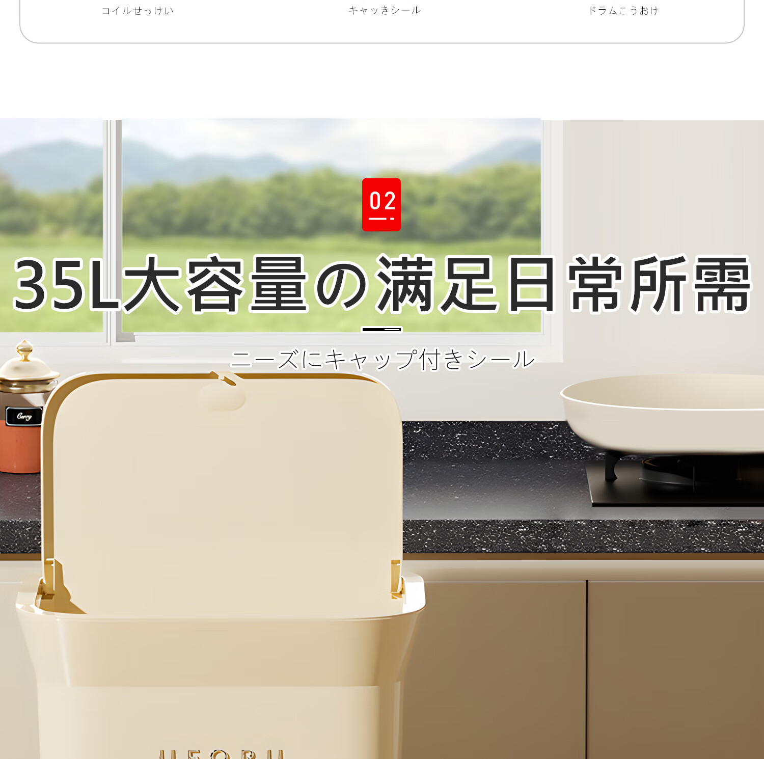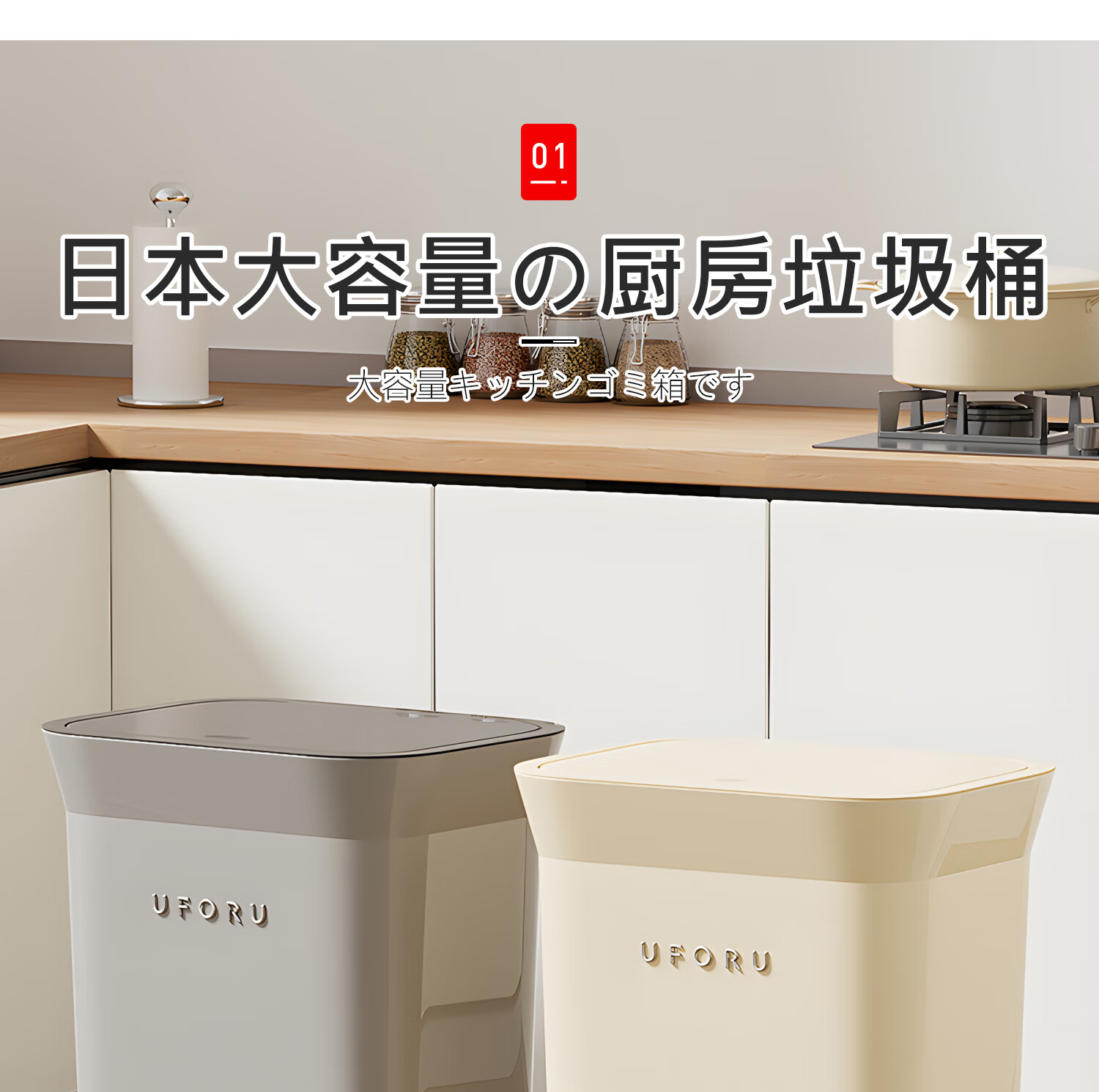吱凡日本厨房垃圾桶大号大容量收纳2025新款专用客厅厨余储物家用高款 【奶油白无盖-35L】+垃圾袋60只