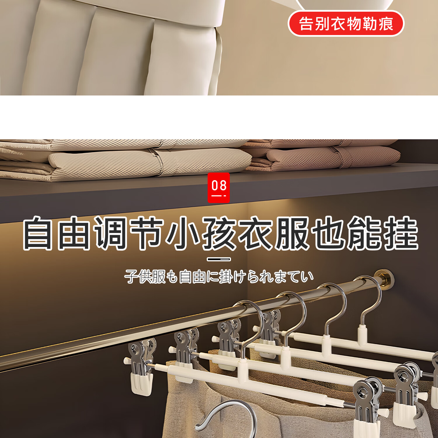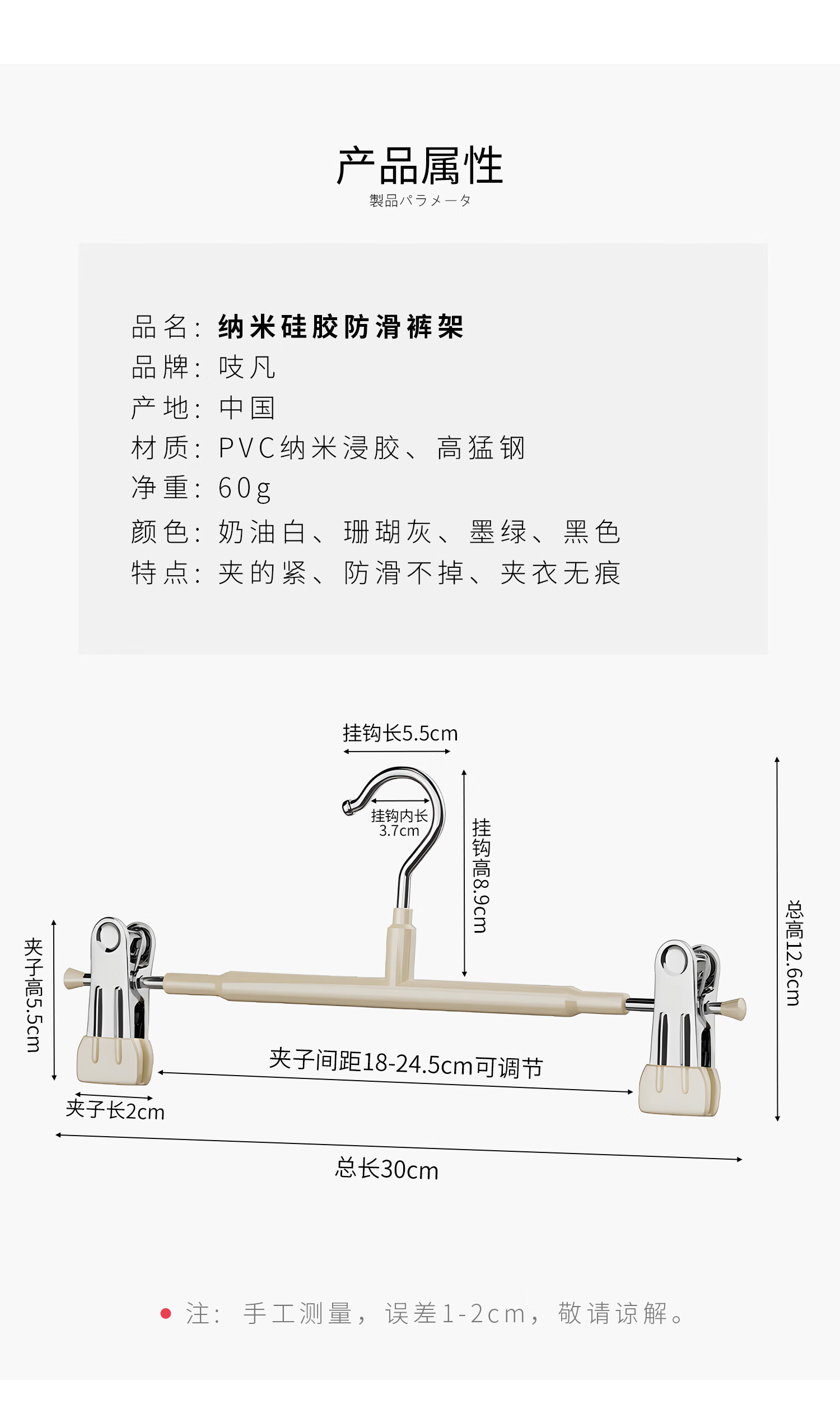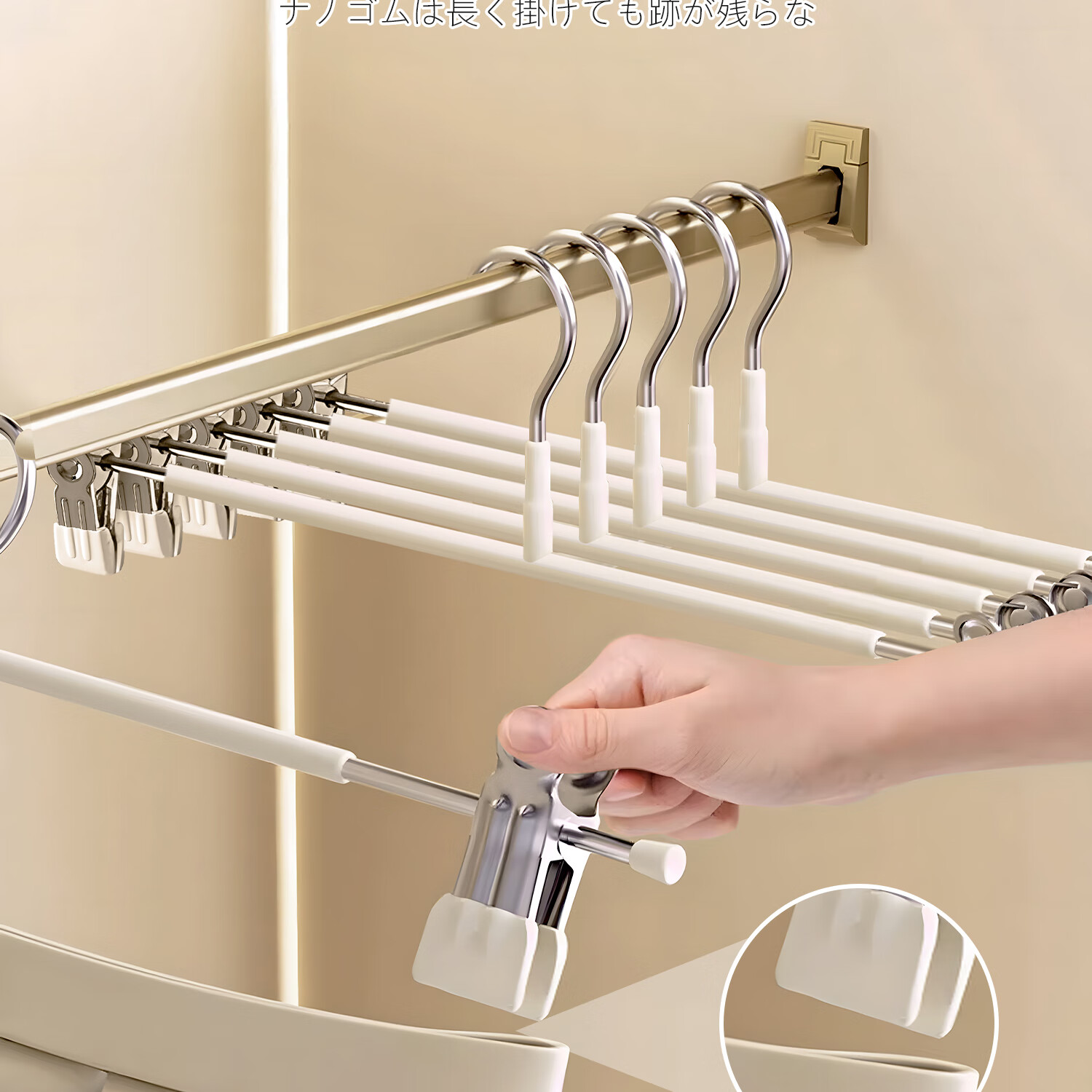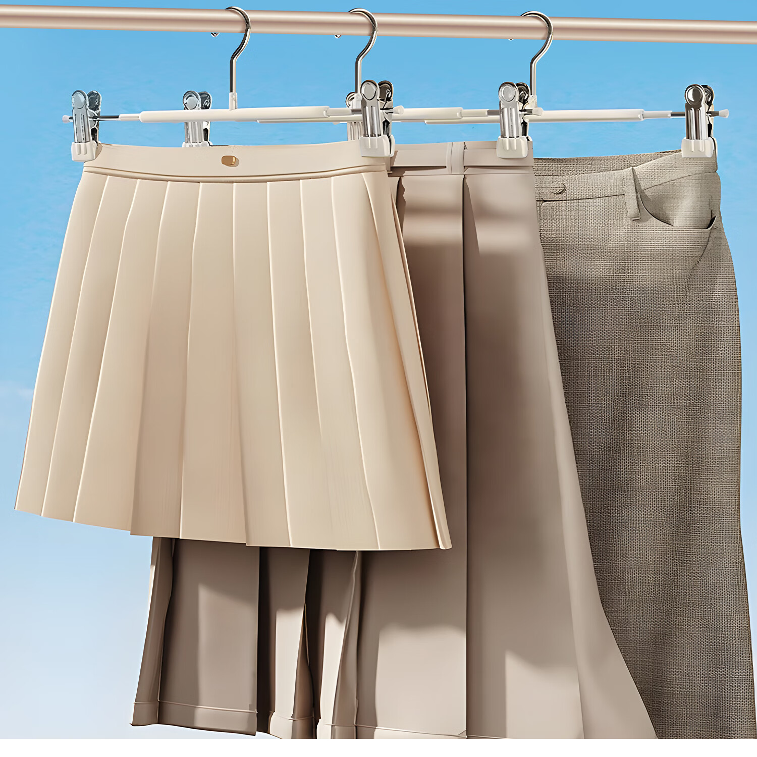 吱凡日本裤架家用无痕裤夹挂衣衣架裤子专用强力夹子防滑带裙子不锈钢 加粗锰钢-奶油白【强劲夹力/宽距可调】 【强劲夹力】10个