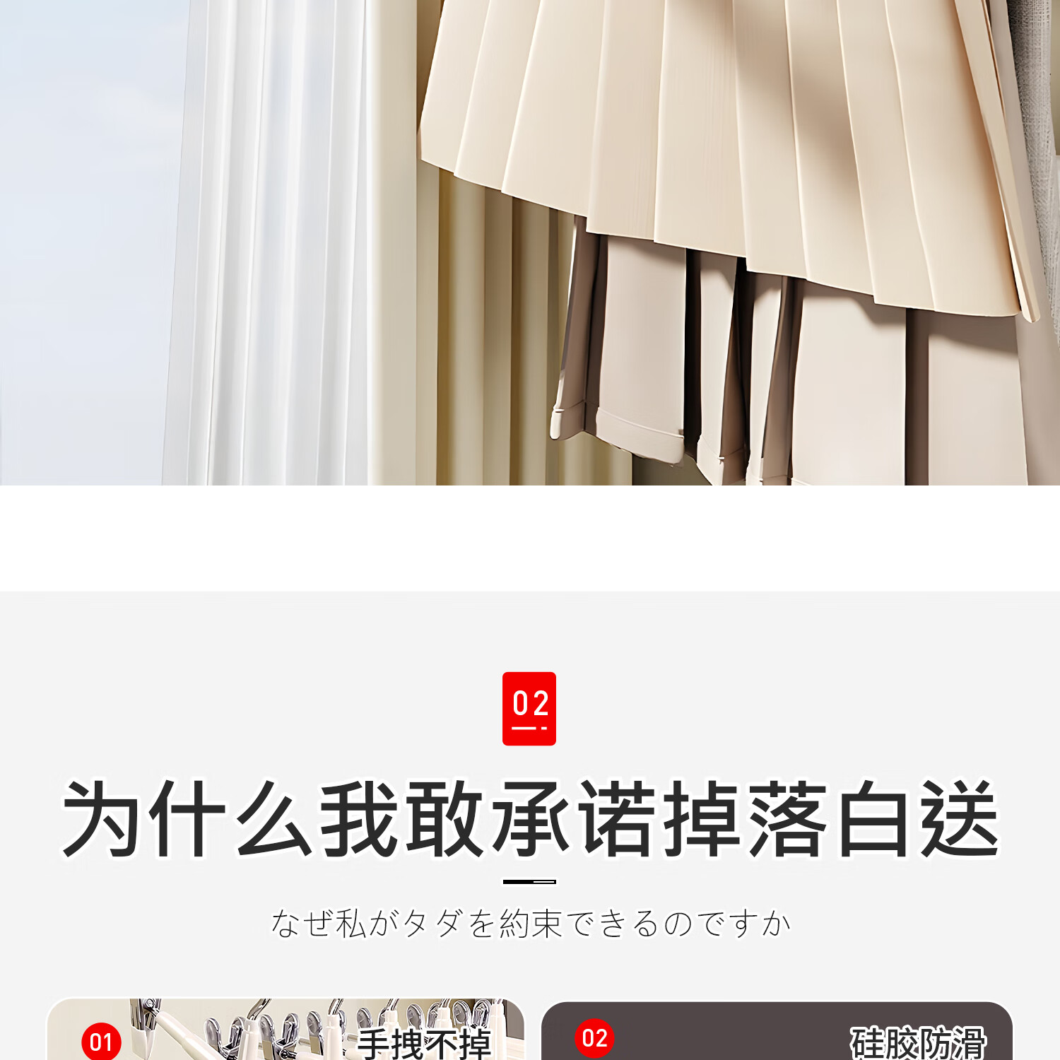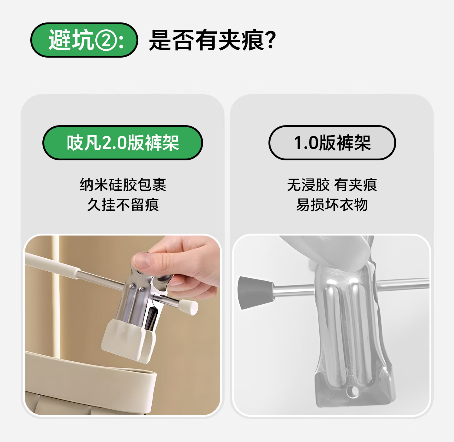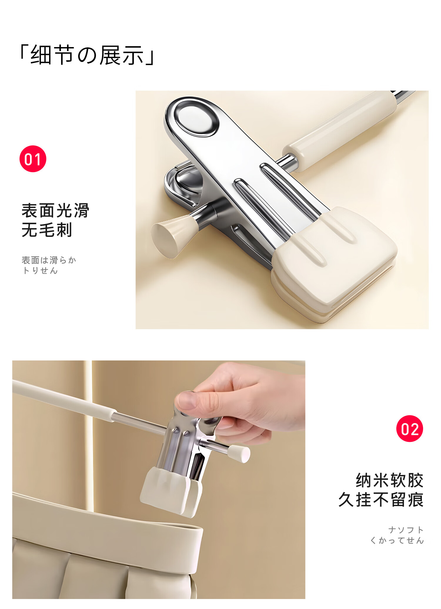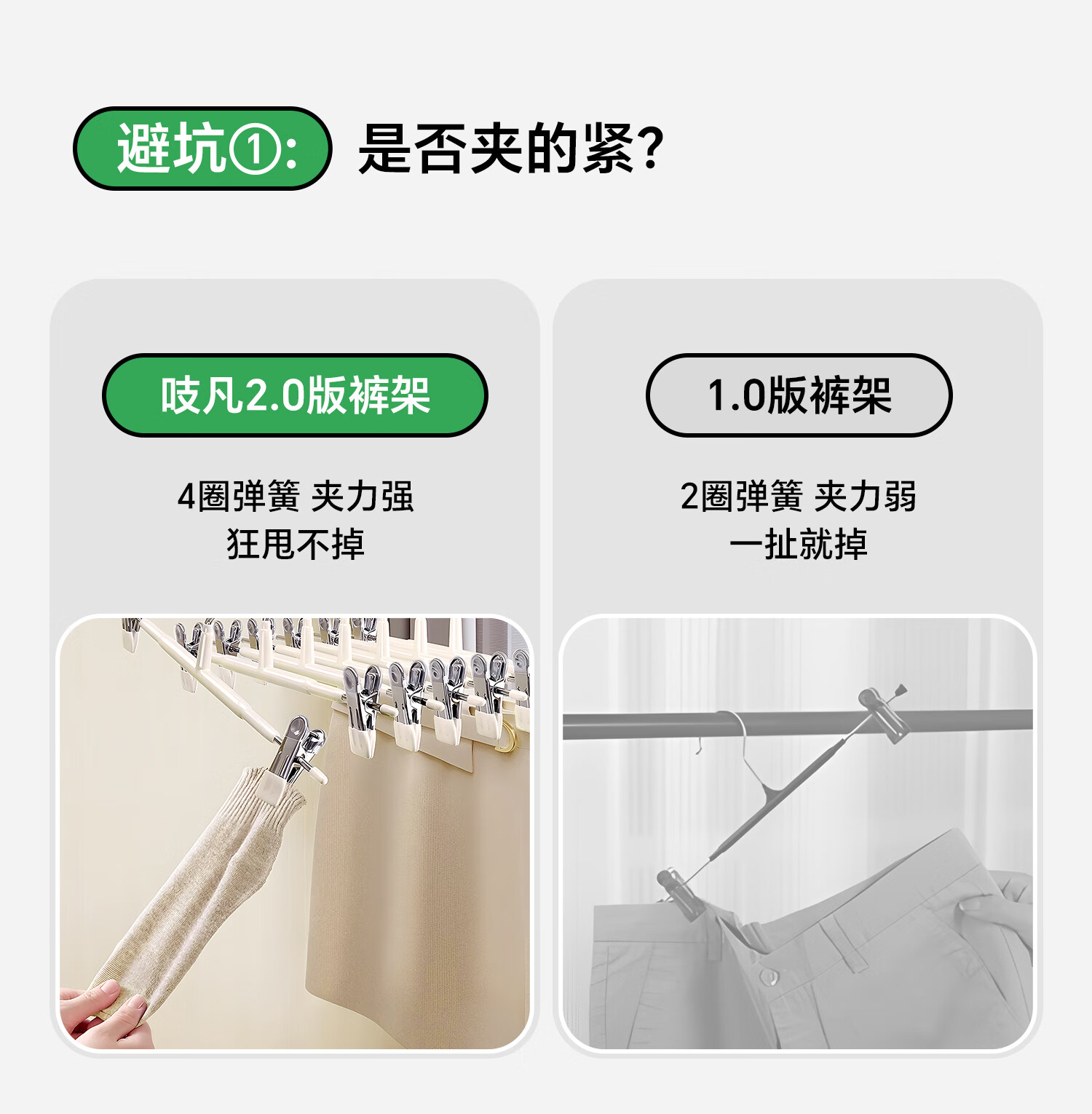 吱凡日本裤架家用无痕裤夹挂衣衣架裤子专用强力夹子防滑带裙子不锈钢 加粗锰钢-奶油白【强劲夹力/宽距可调】 【强劲夹力】10个