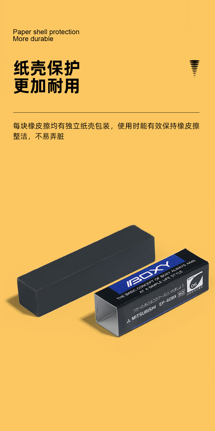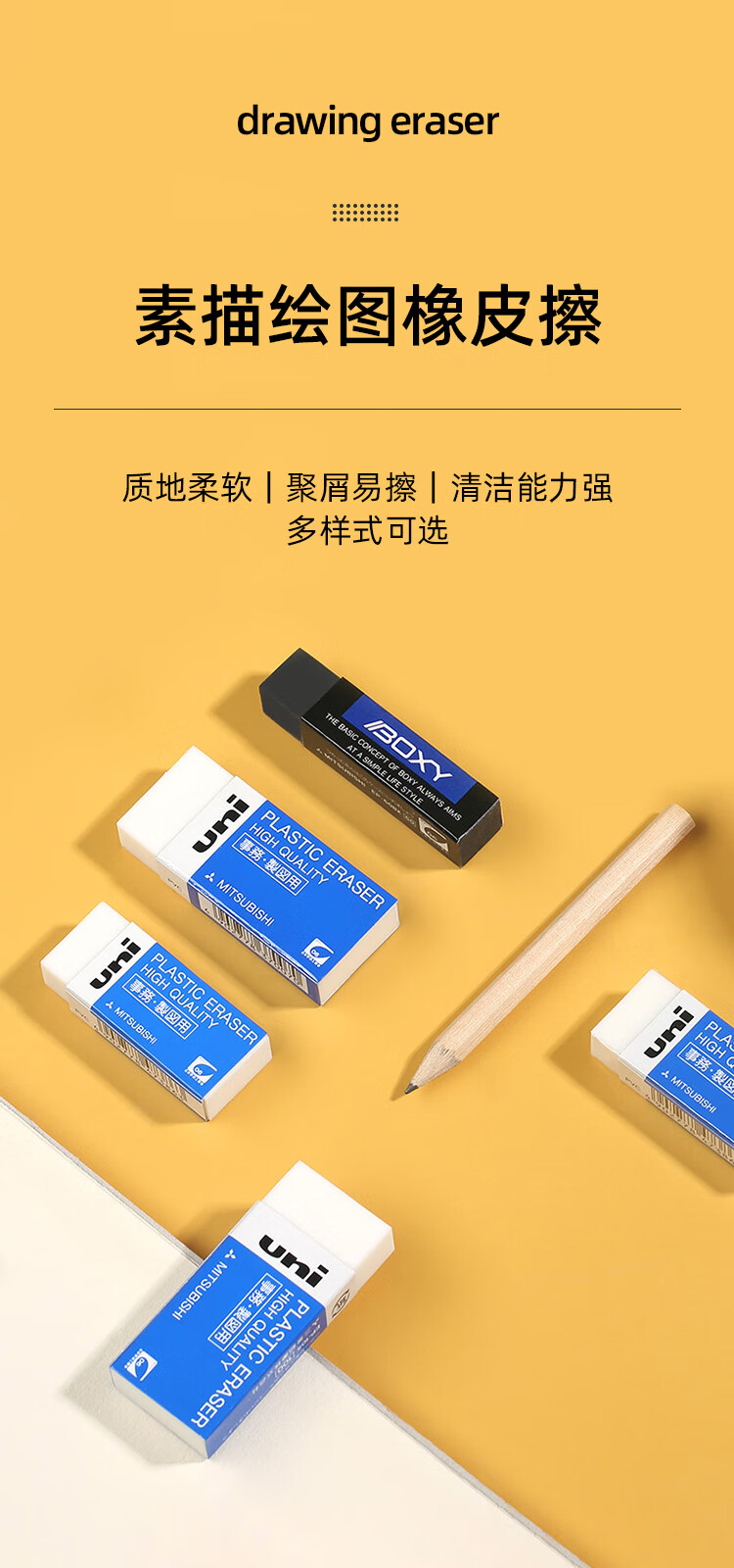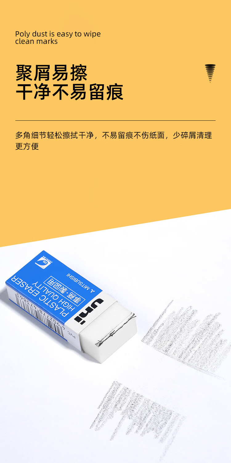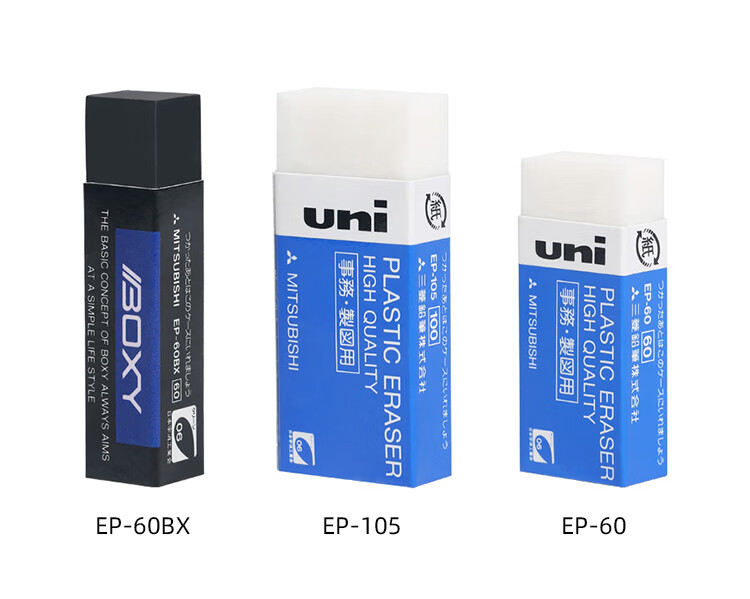 uni三菱【热门商品】 素描绘图橡皮擦 学生铅笔擦 聚屑易擦 EP-60 小号白色 3块/袋