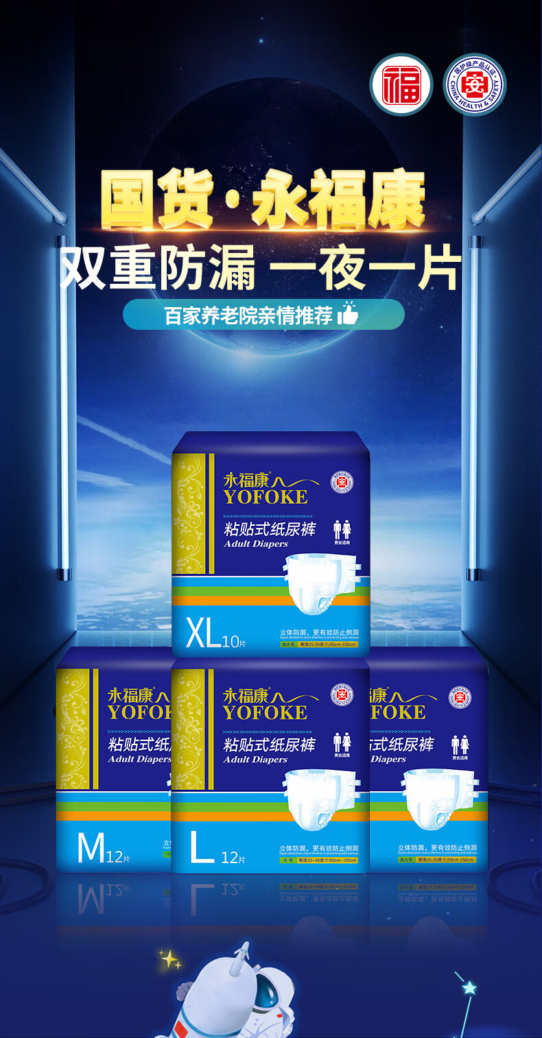 永福康成人纸尿裤L12片 臀围95-120cm 老人尿不湿 孕产妇粘贴式纸尿裤
