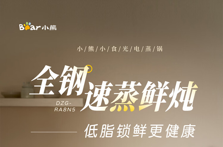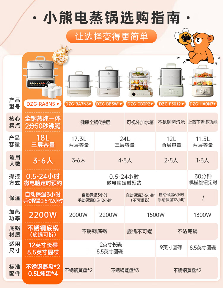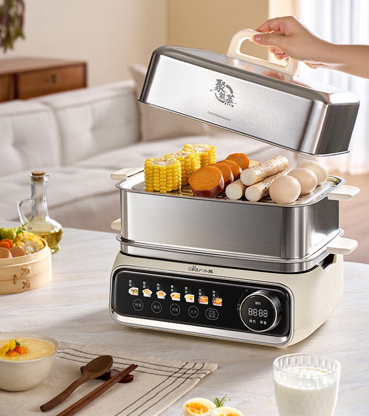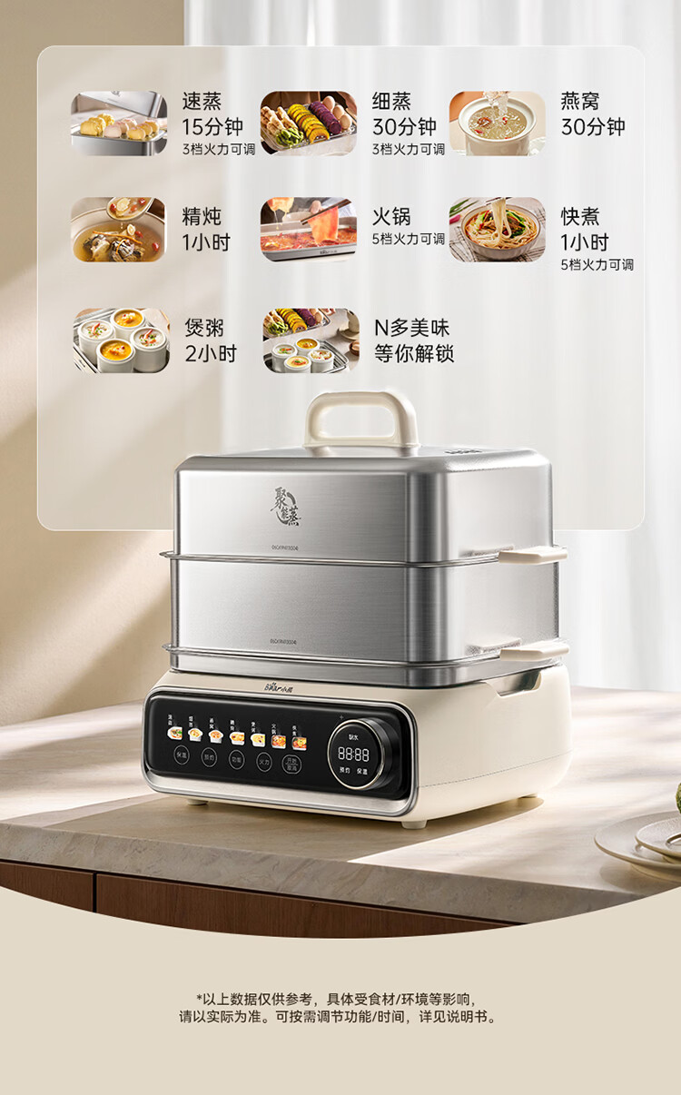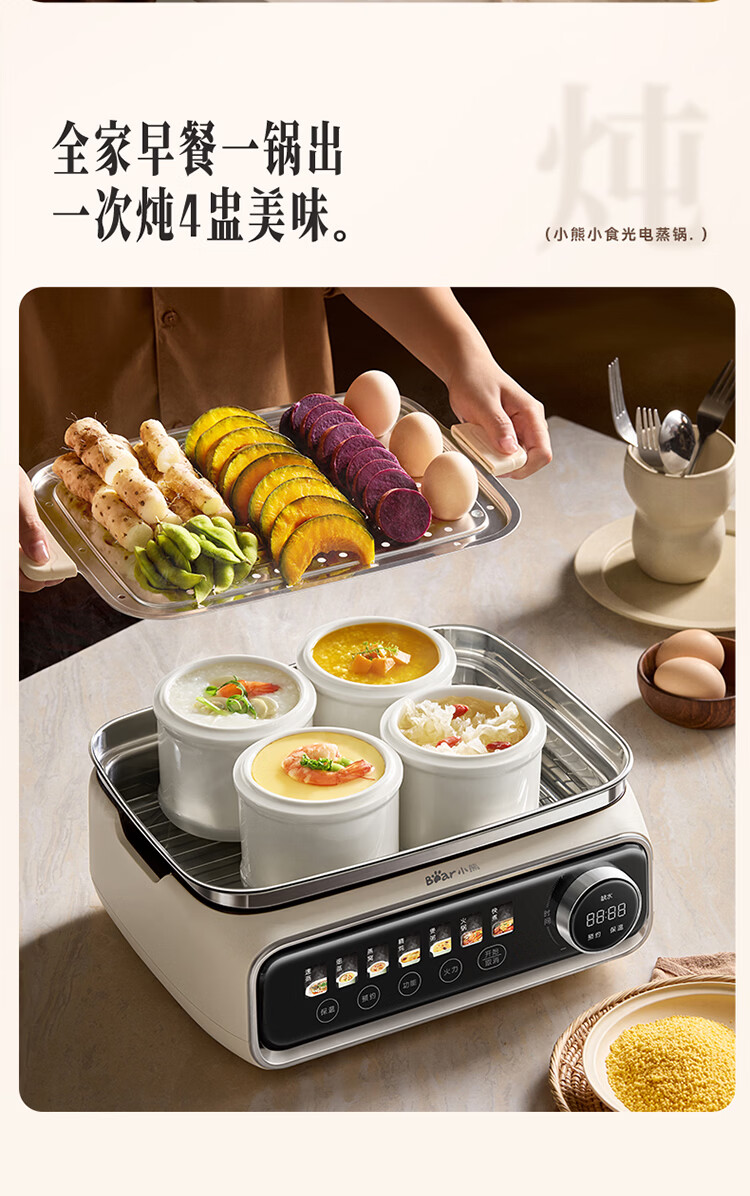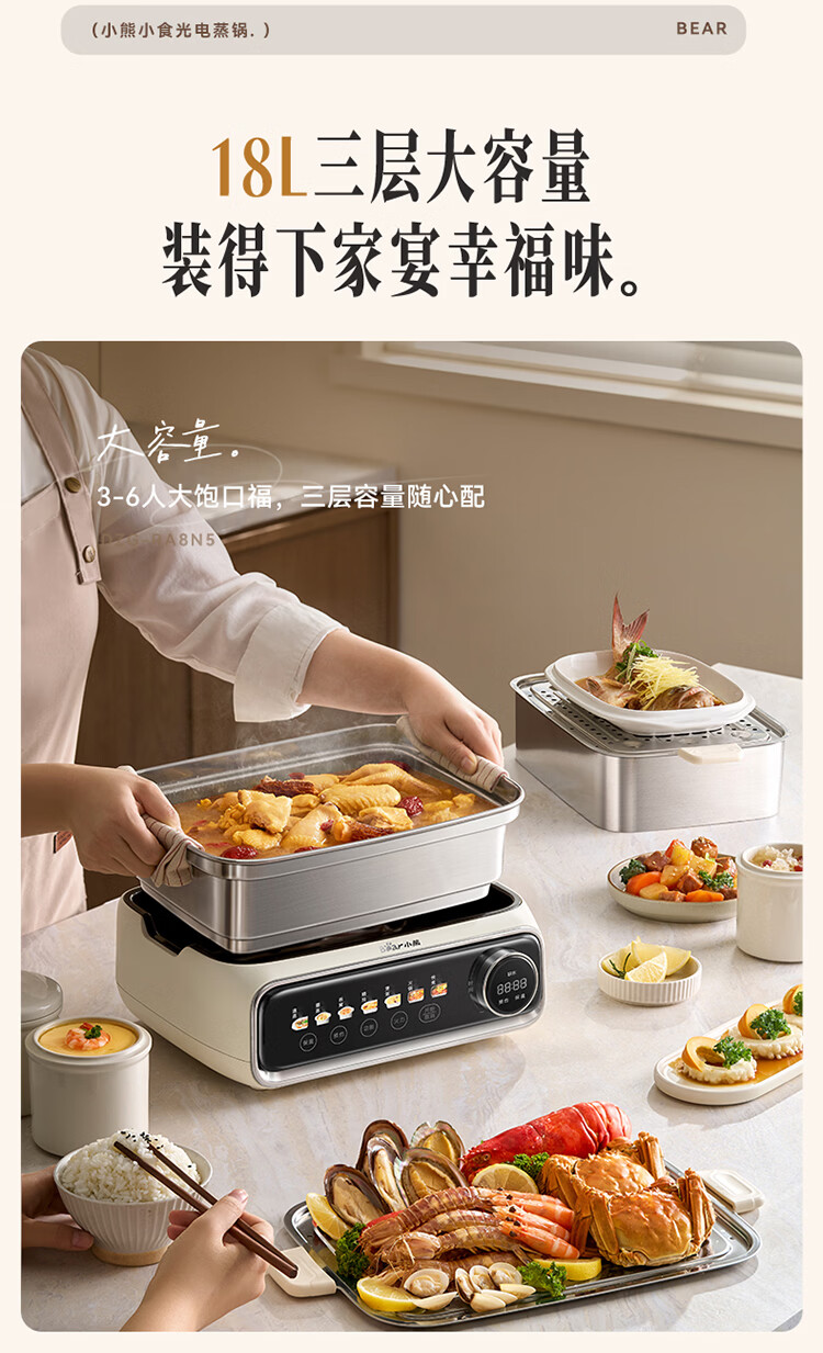 小熊(Bear)小食光电蒸锅 炖蒸煮一体自动断电不锈钢2层蒸锅家用3-4人 分体式18L大容量多功能锅 DZG-RA8N5