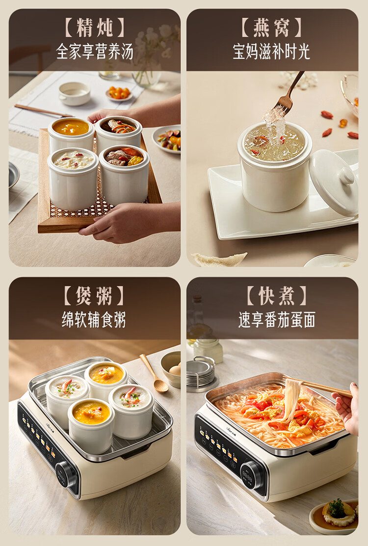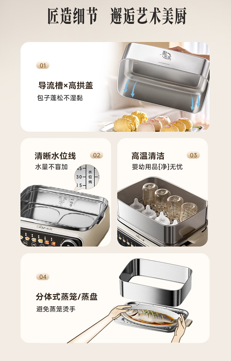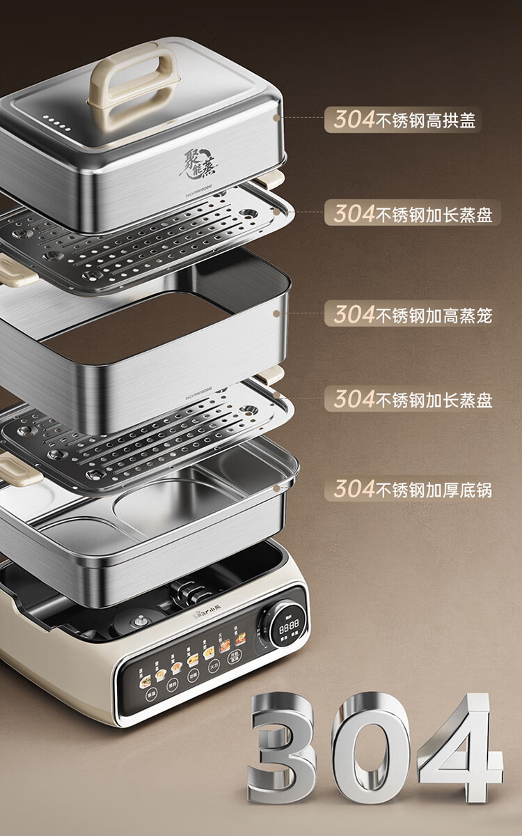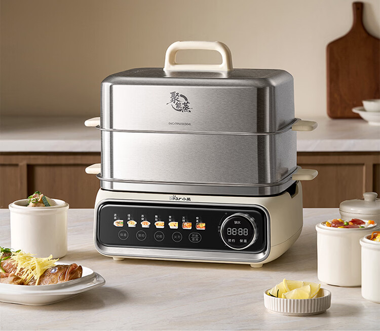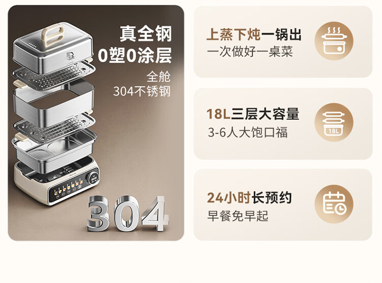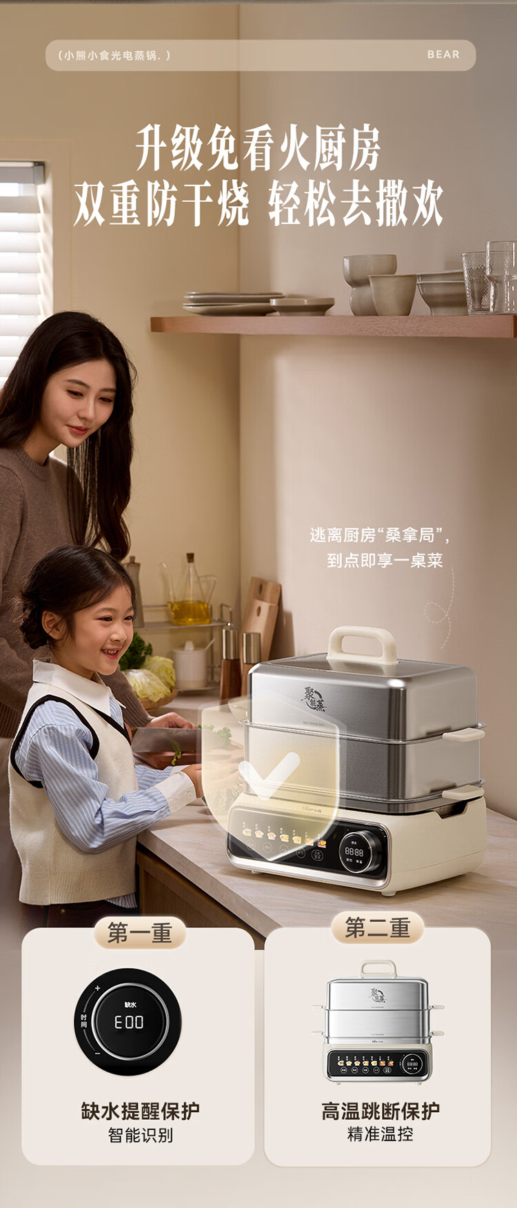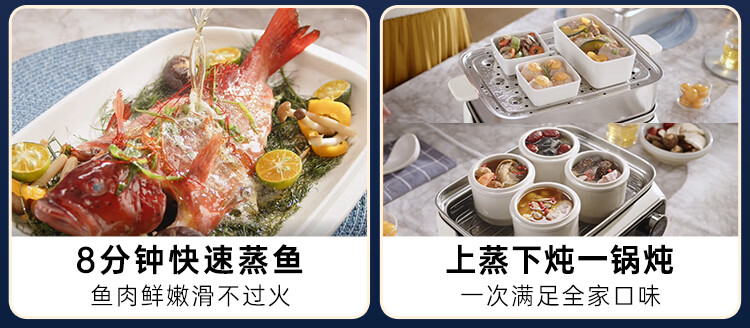 小熊(Bear)小食光电蒸锅 炖蒸煮一体自动断电不锈钢2层蒸锅家用3-4人 分体式18L大容量多功能锅 DZG-RA8N5