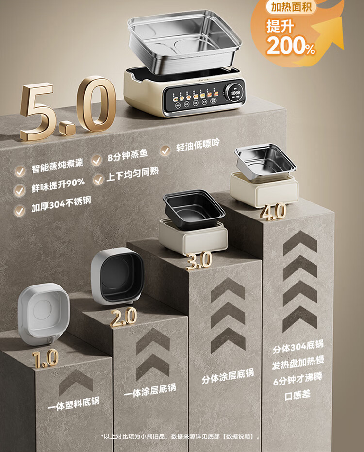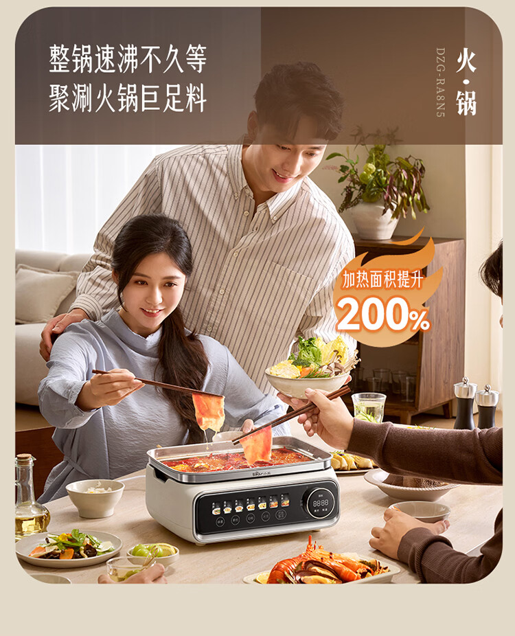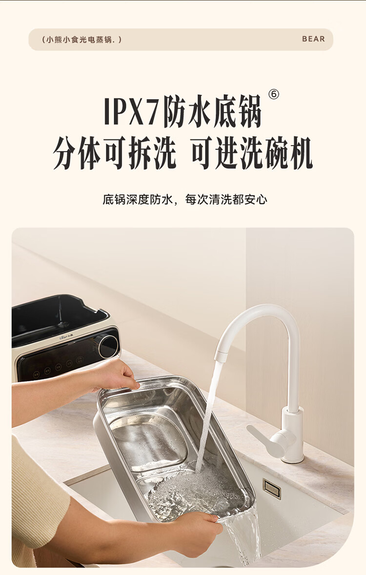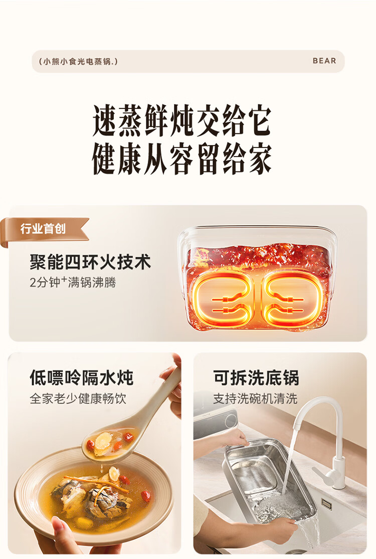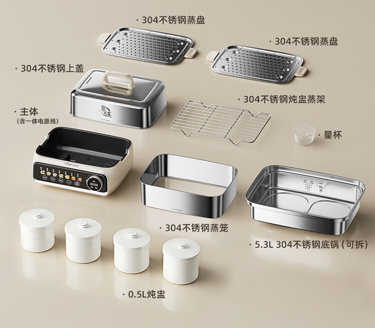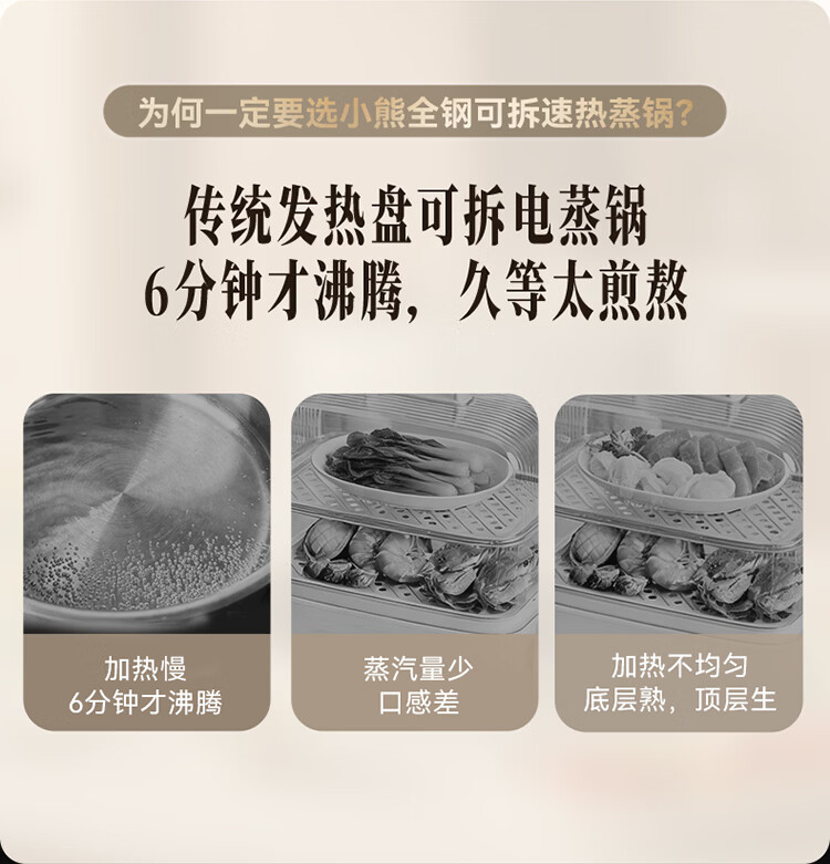 小熊(Bear)小食光电蒸锅 炖蒸煮一体自动断电不锈钢2层蒸锅家用3-4人 分体式18L大容量多功能锅 DZG-RA8N5