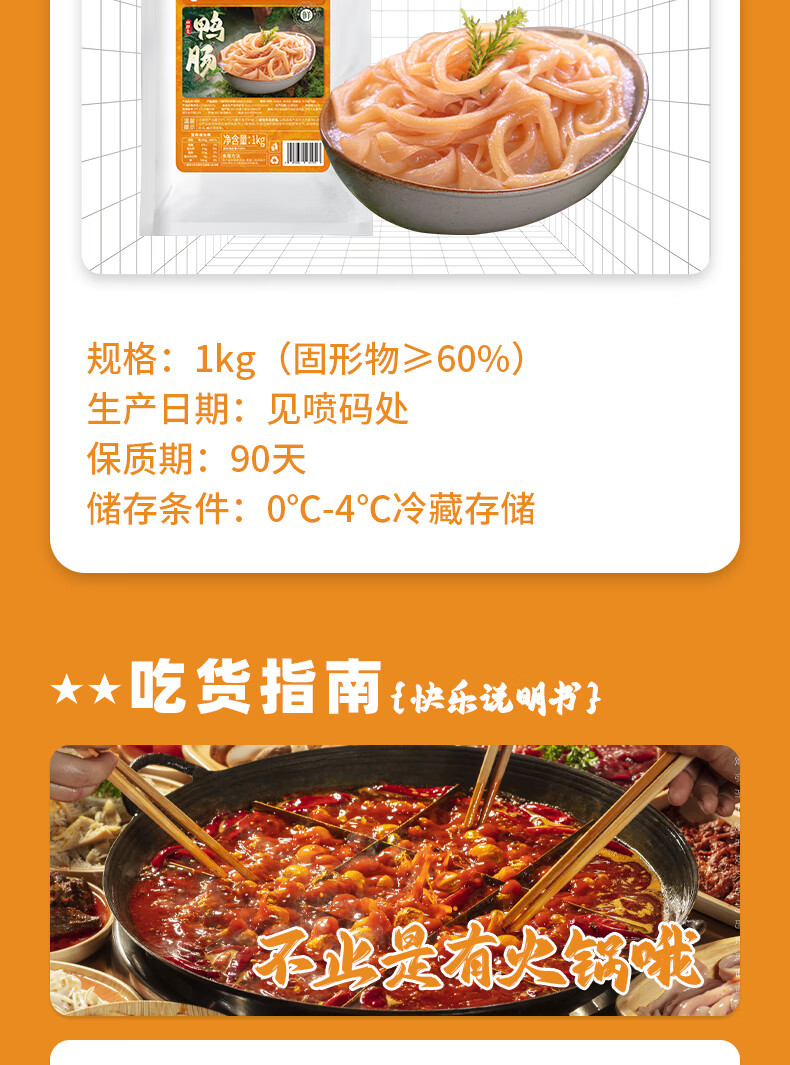 和蓉汇鸭肠1kg 冷藏大规格川渝火锅食材水发鸭肠麻辣烫生鲜 固形物≥60%
