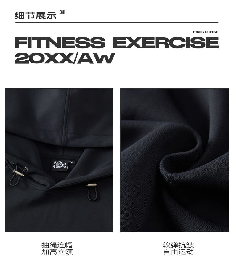 MUSCLE DOG肌肉狗 运动卫衣男秋季新款美式连帽保暖休闲训练健身上衣 黑色 3XL