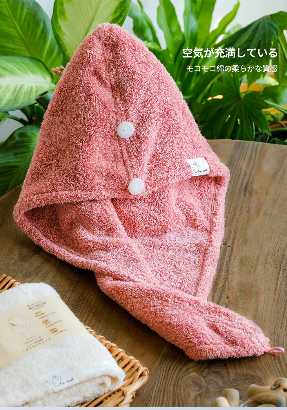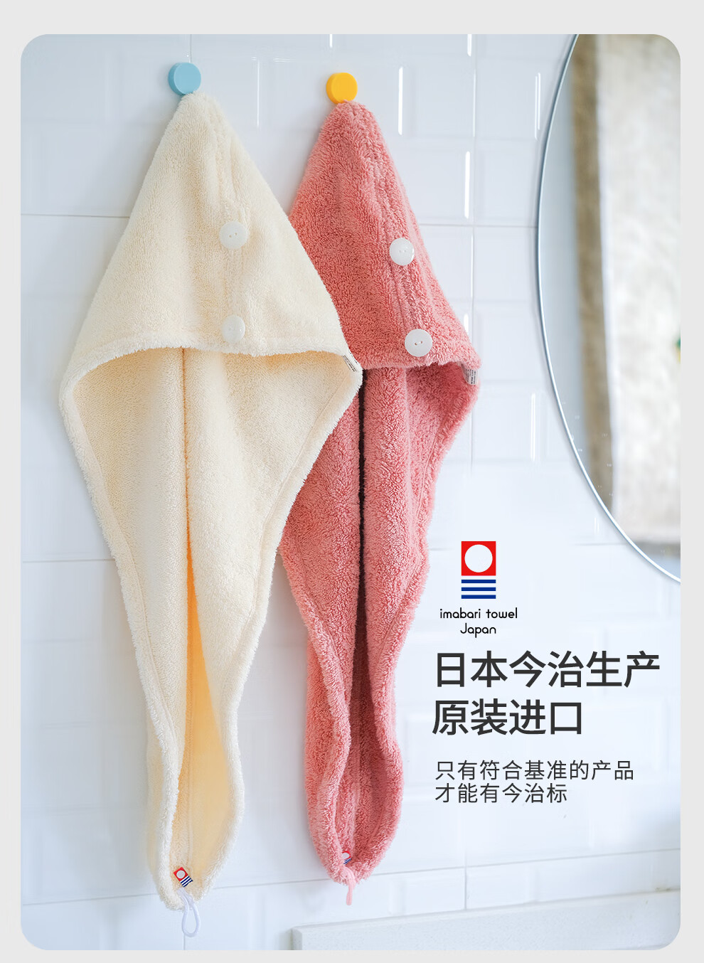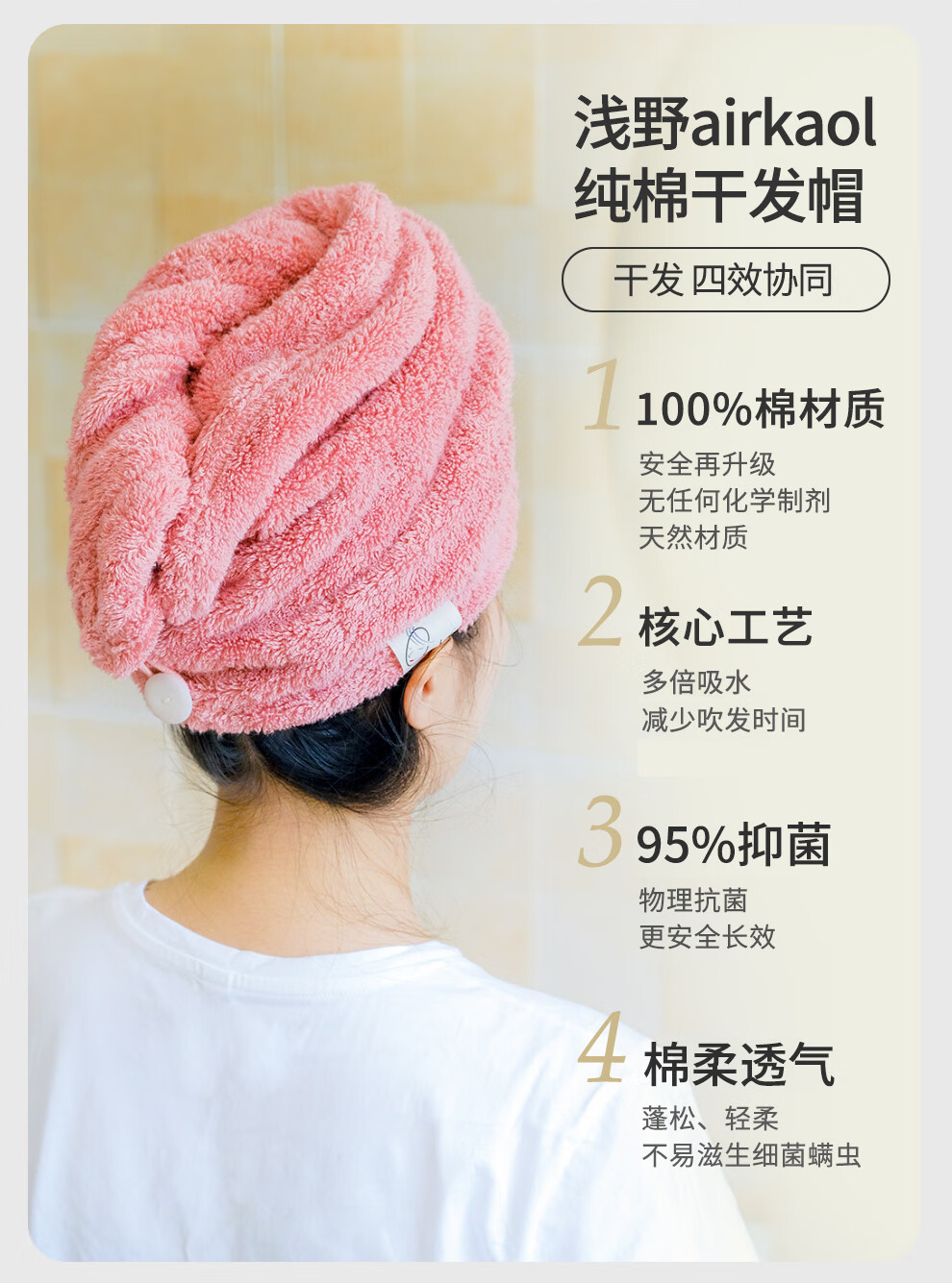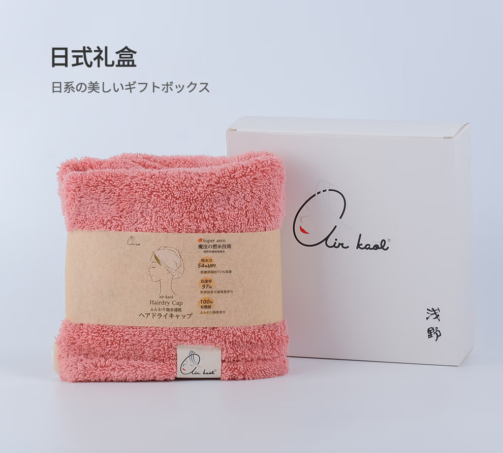 浅野(air kaol)日本进口干发帽女男干发巾蓬松柔软不易掉毛吸水干发带双层加厚 加厚带扣 玫瑰粉 礼盒装
