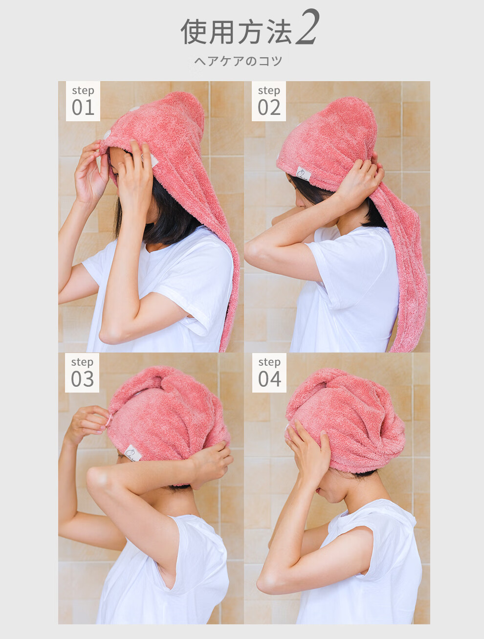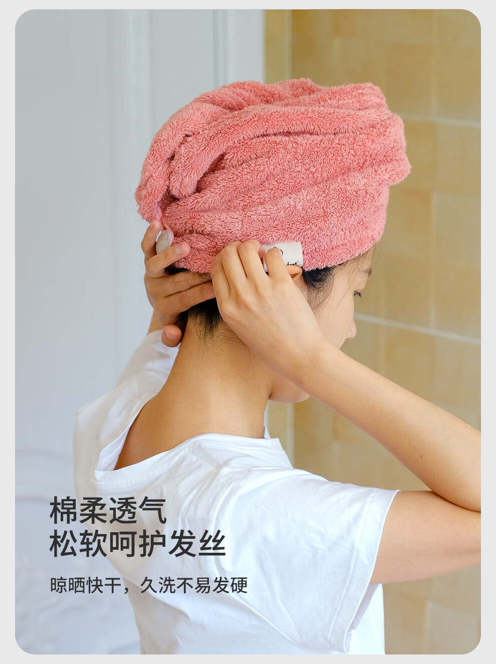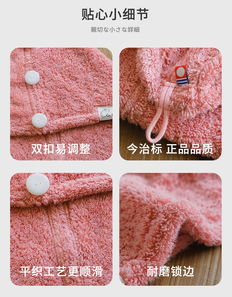 浅野(air kaol)日本进口干发帽女男干发巾蓬松柔软不易掉毛吸水干发带双层加厚 加厚带扣 玫瑰粉 礼盒装