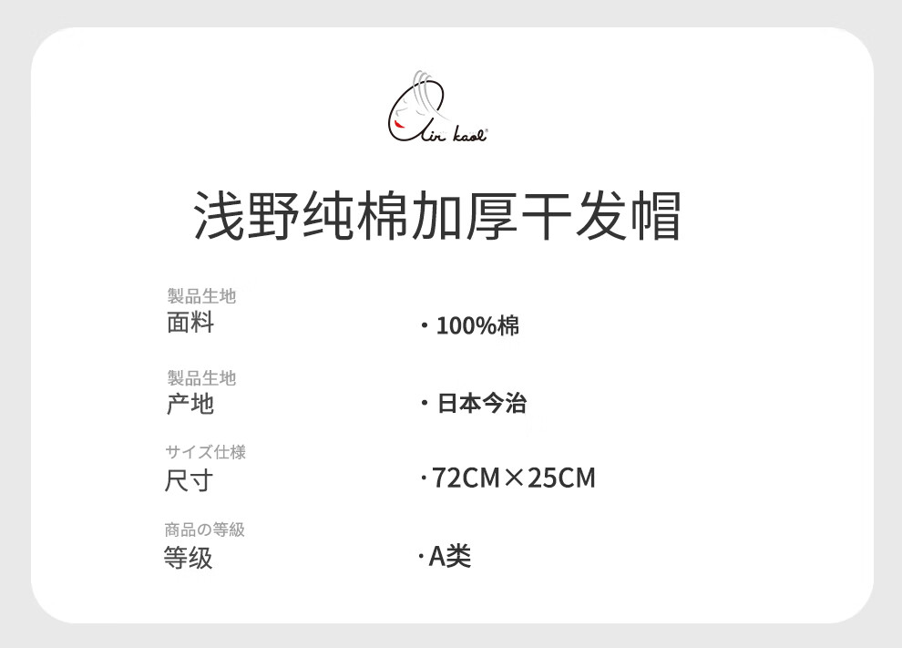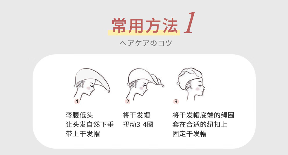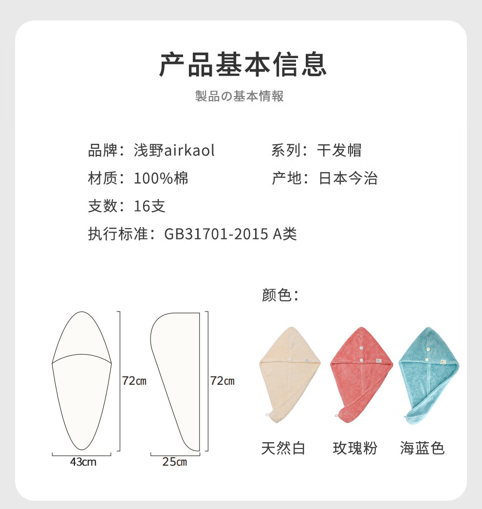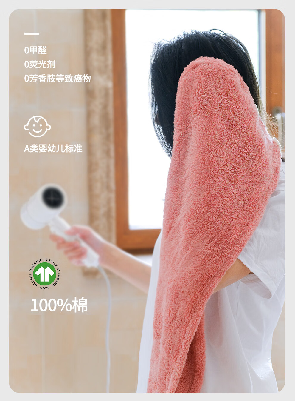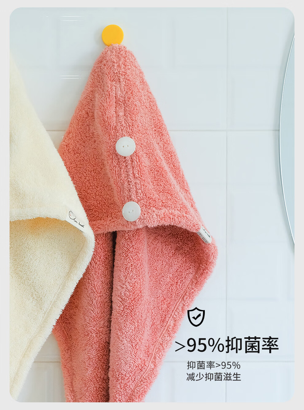 浅野(air kaol)日本进口干发帽女男干发巾蓬松柔软不易掉毛吸水干发带双层加厚 加厚带扣 玫瑰粉 礼盒装