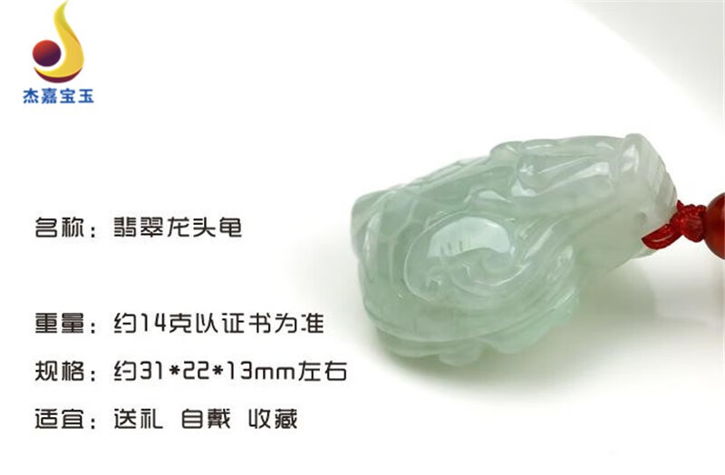 杰嘉宝玉原创翡翠A货龙龟玉吊坠男女款礼物玉龙头龟玉佩项链长寿乌带证书