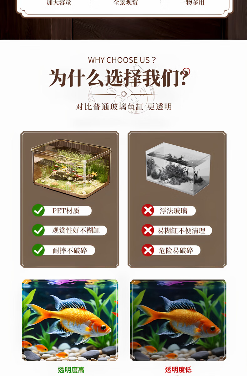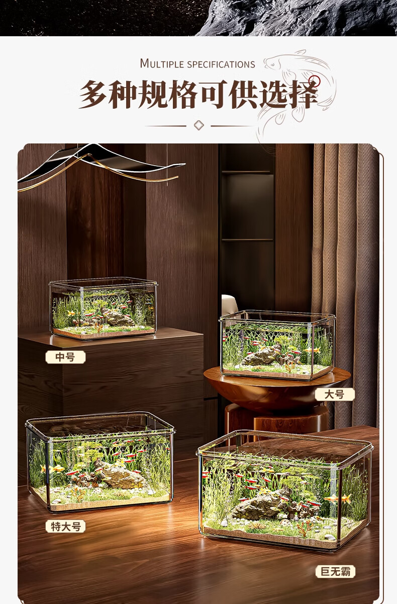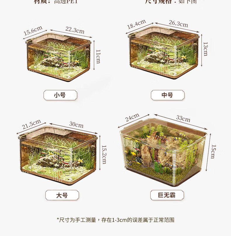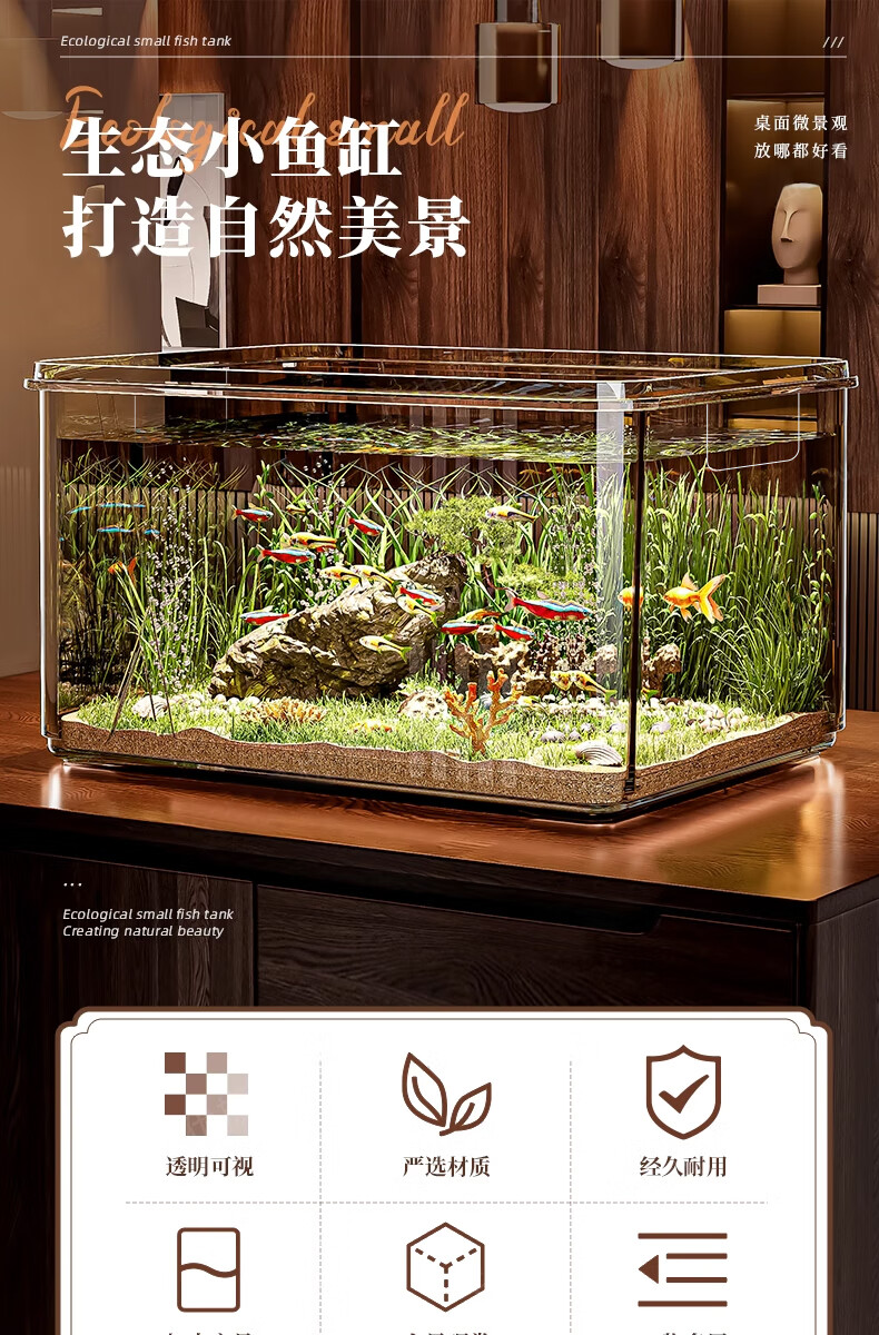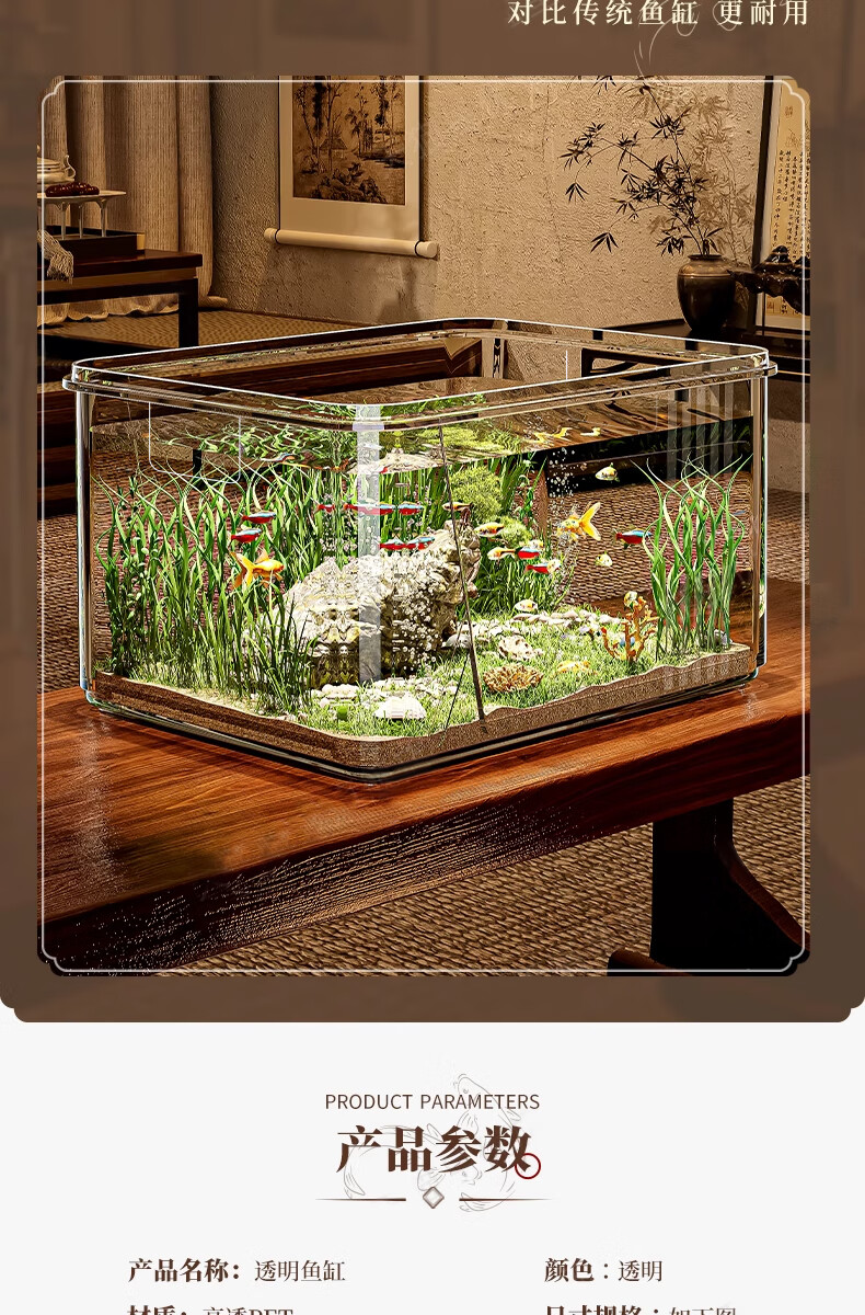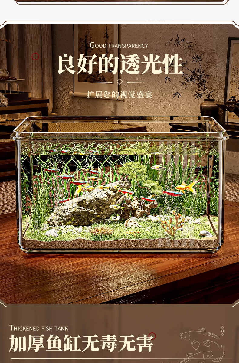 飞达三和家用小鱼缸方形客厅小金鱼乌龟饲养缸仿玻璃塑料小型桌面生态缸 中号-鱼缸乌龟缸【超清8K高透】