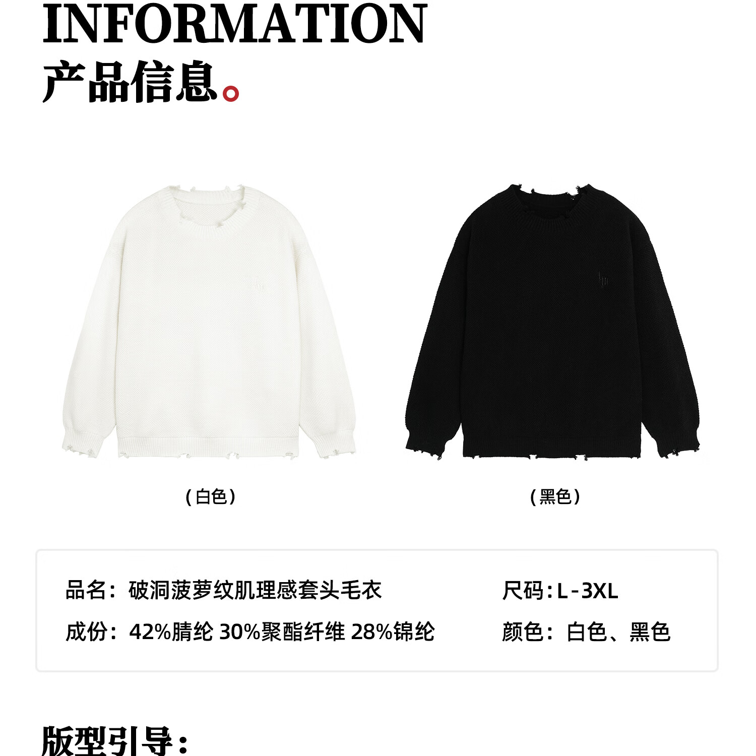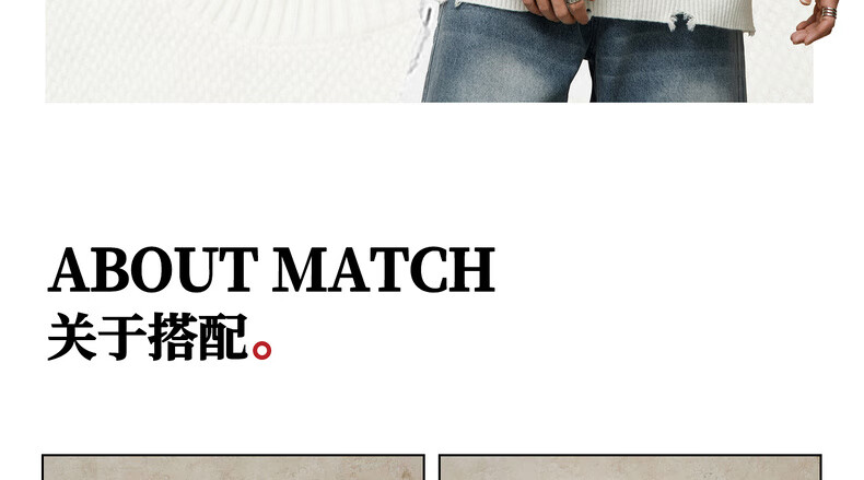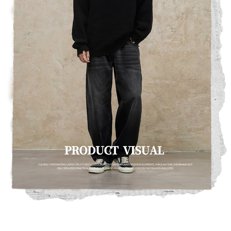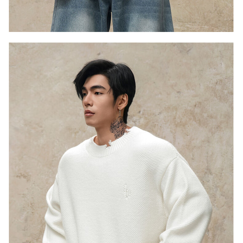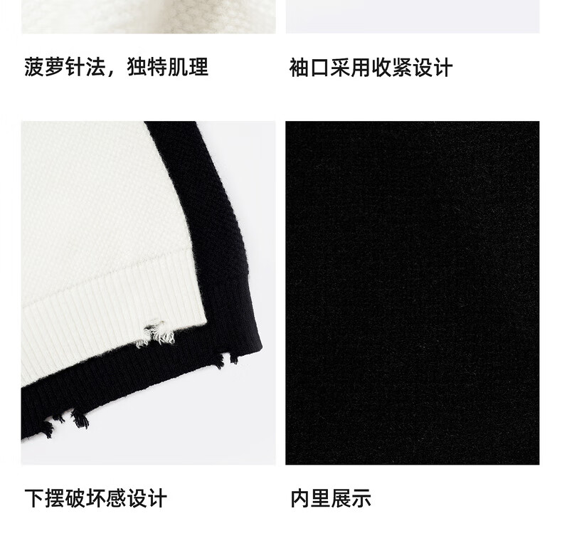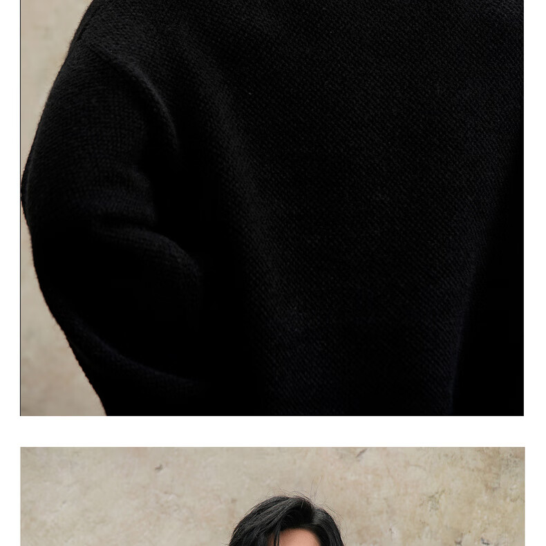 鹿家门秋冬重磅破洞套头毛衣慵懒高级感男士圆领加厚保暖打底衫 黑色 M 推荐90-140斤
