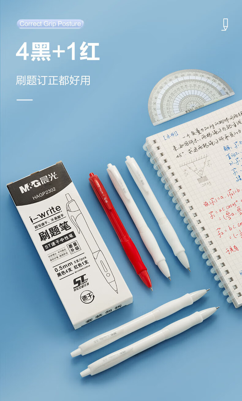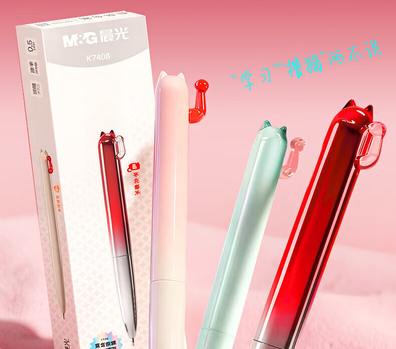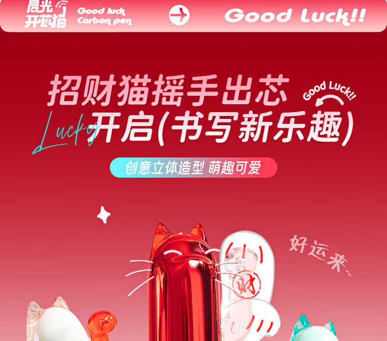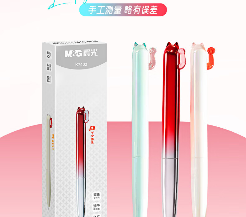 晨光(M&G) i-write系列按动中性笔0.5mm考试用刷题笔ST笔头顺滑速干学生签字水性走珠笔 【开芯喵3支】招财猫黑色双珠子弹头ST