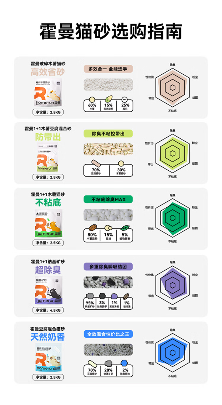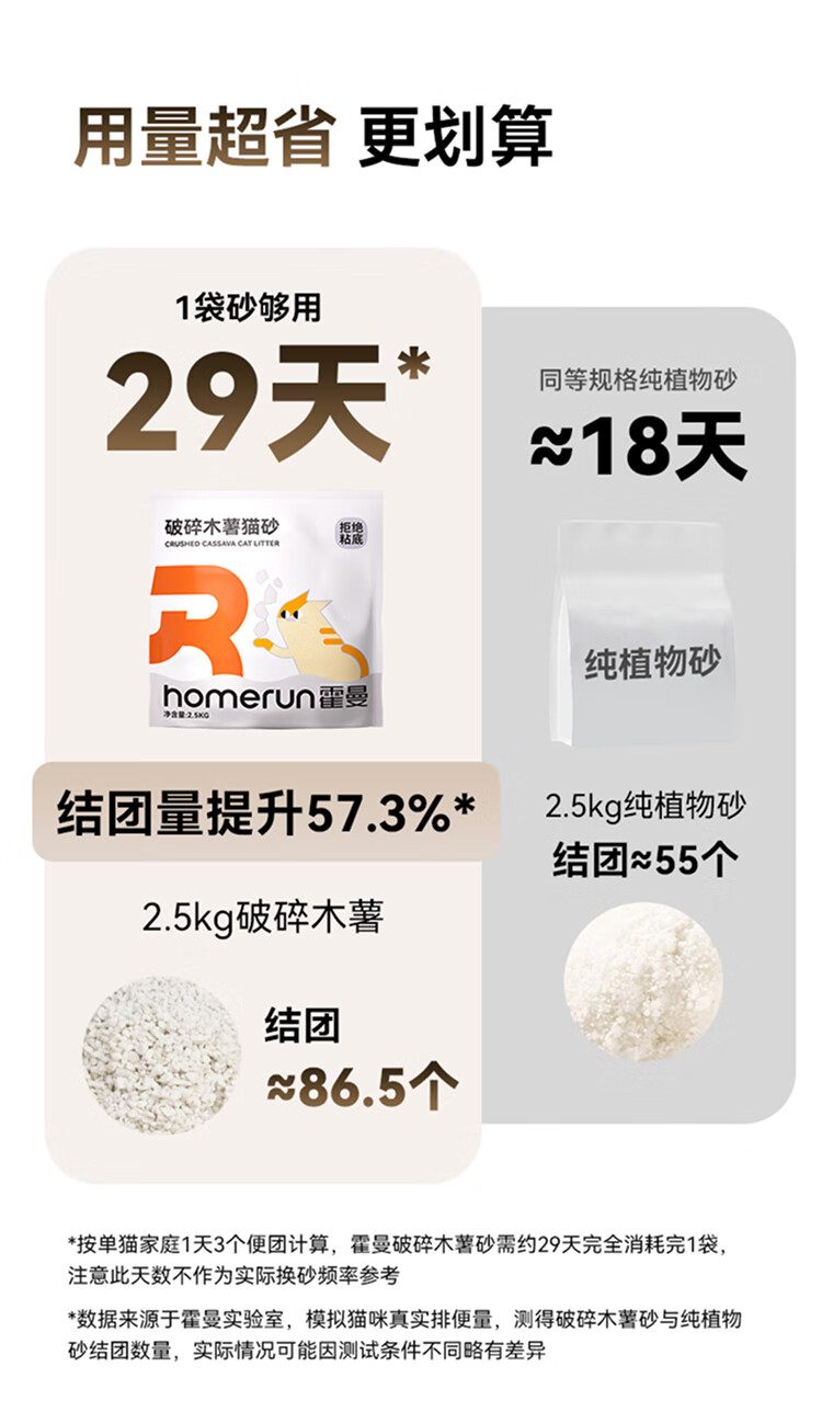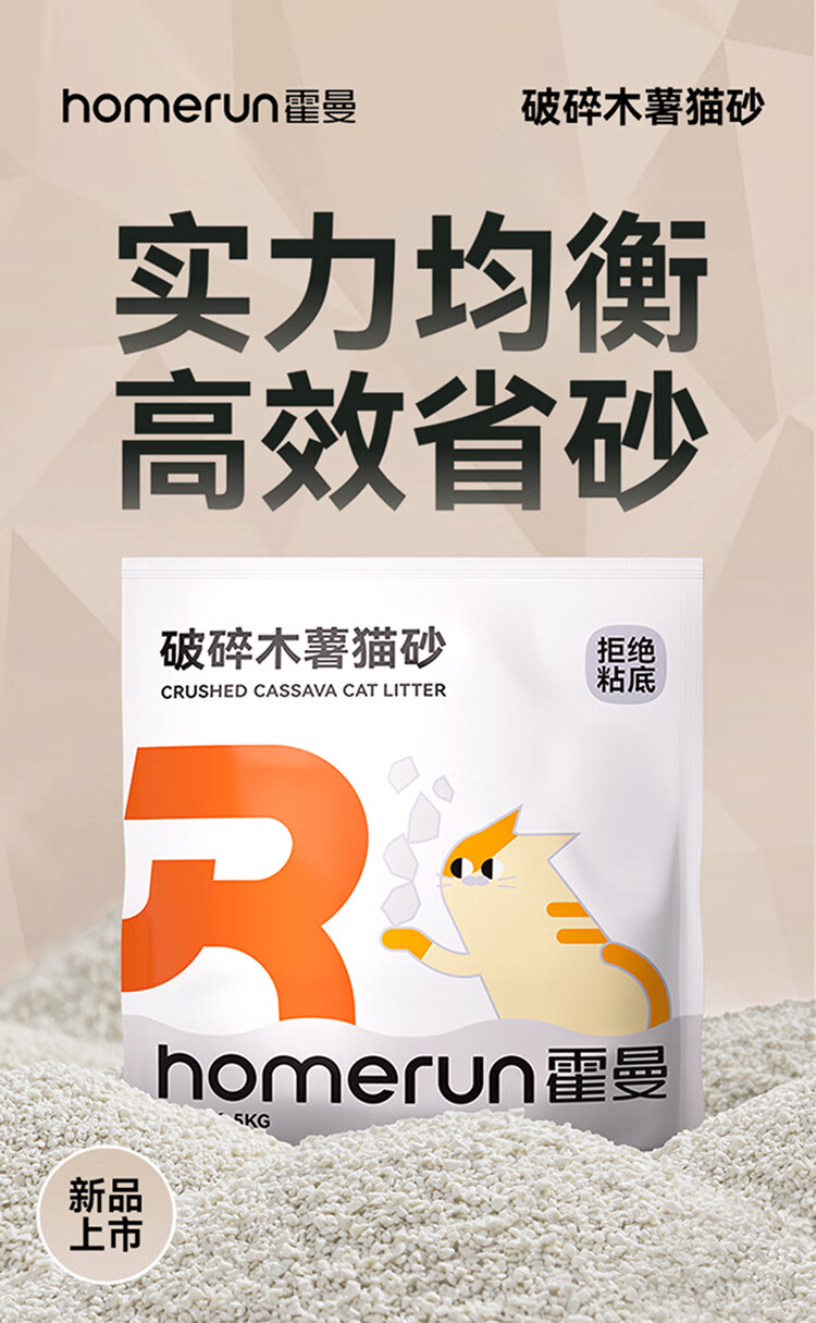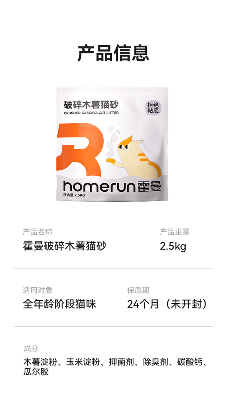 霍曼(Homerun)破碎木薯猫砂强吸水强结团不粘底除臭可冲厕所 破碎木薯猫砂4包-共10KG