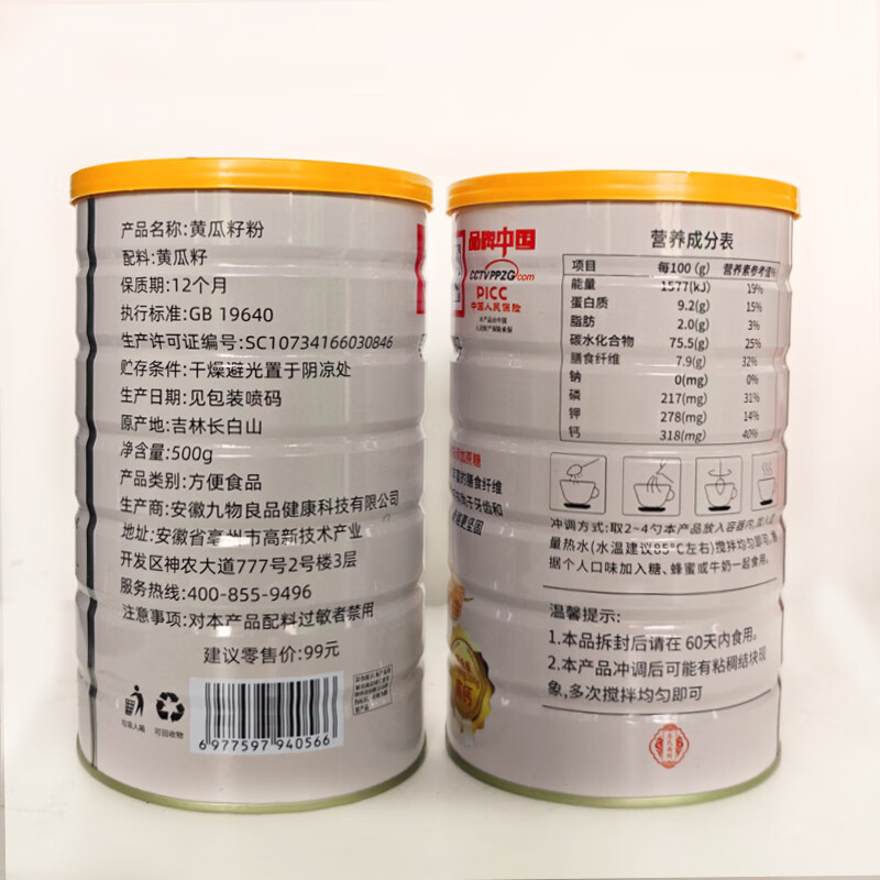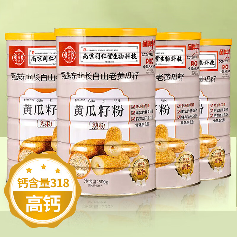 南京同仁堂【发四桶】纯老黄瓜籽粉长白山高钙熟粉(500g/桶) 4罐装【共2000克】加送2袋装