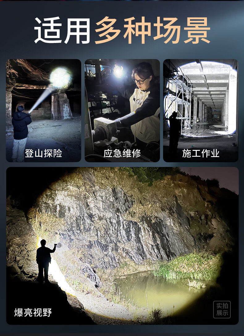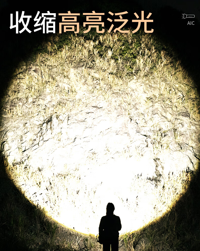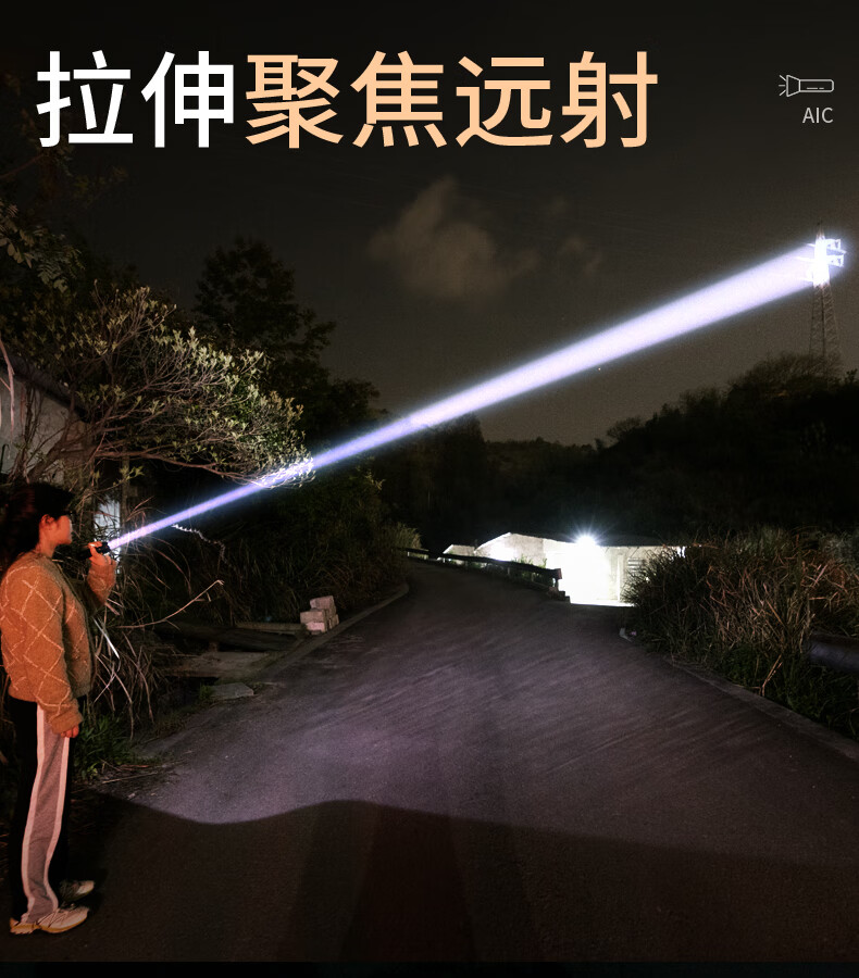 Aic手电筒强光充电户外超亮远射灯超长续航耐用家用轻量小型便携 【轻量便携】三档调节